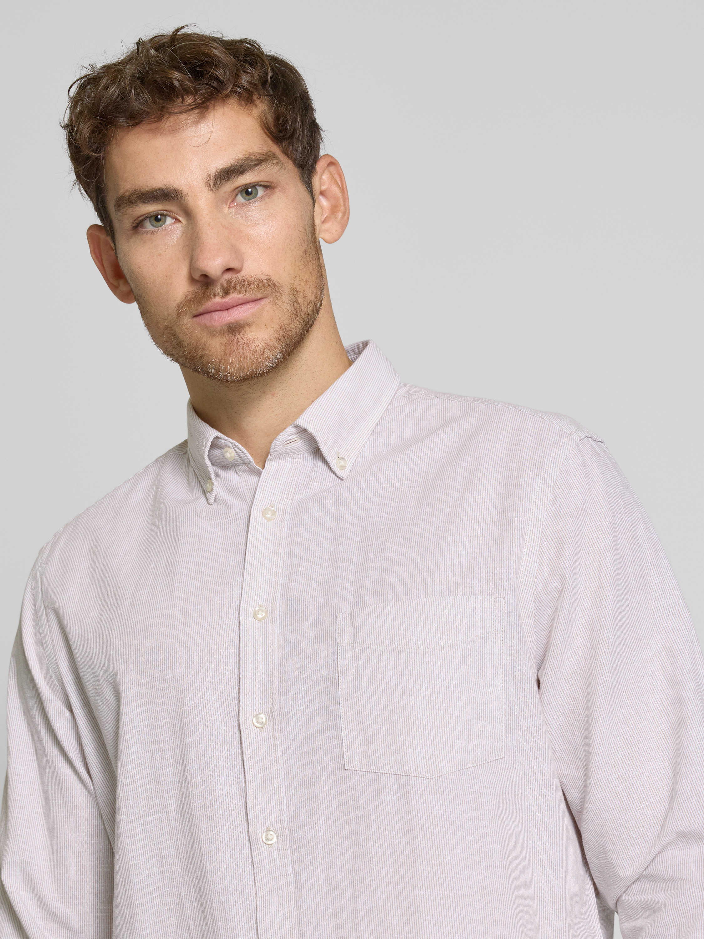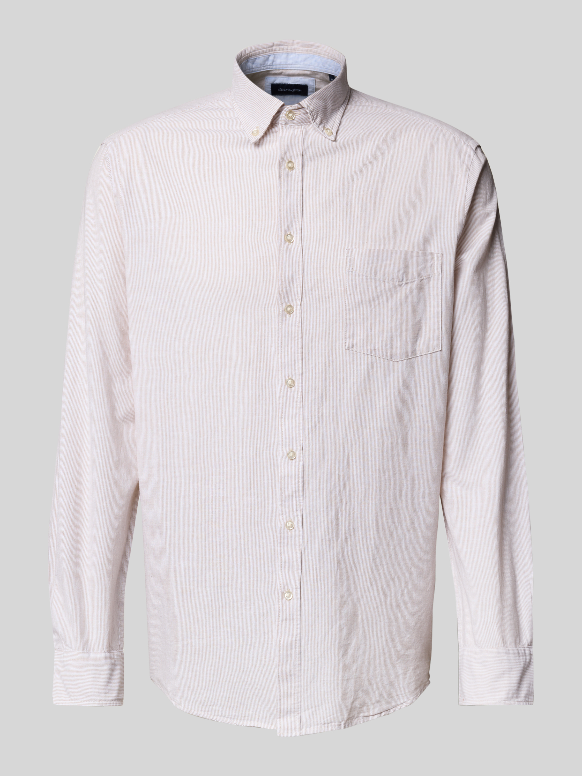 Christian Berg MenRegular Fit Freizeithemd aus Baumwoll-Mix mit Leinen-Anteil in sand