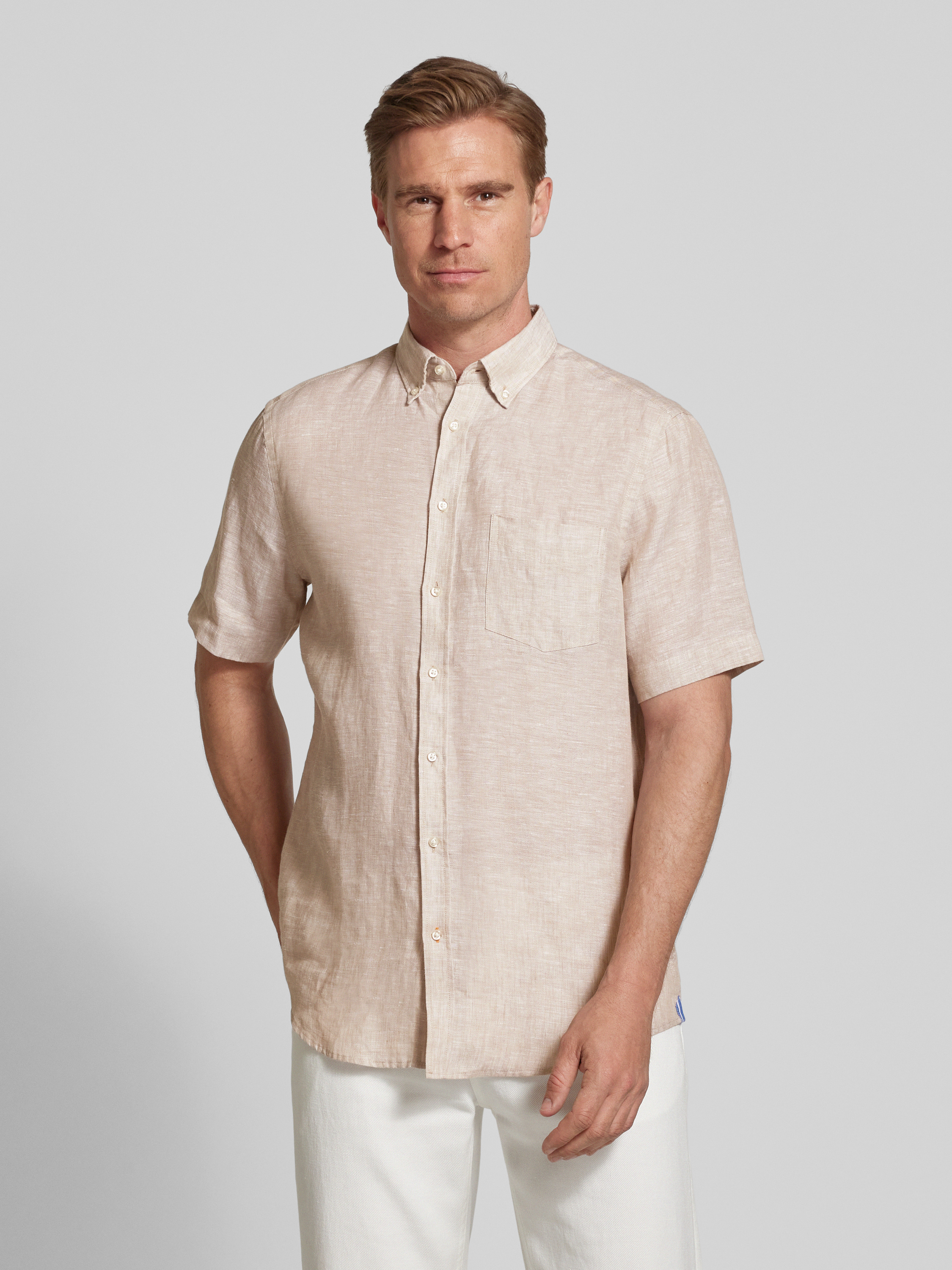 Christian Berg MenRegular Fit Freizeithemd aus reinem Leinen in sand