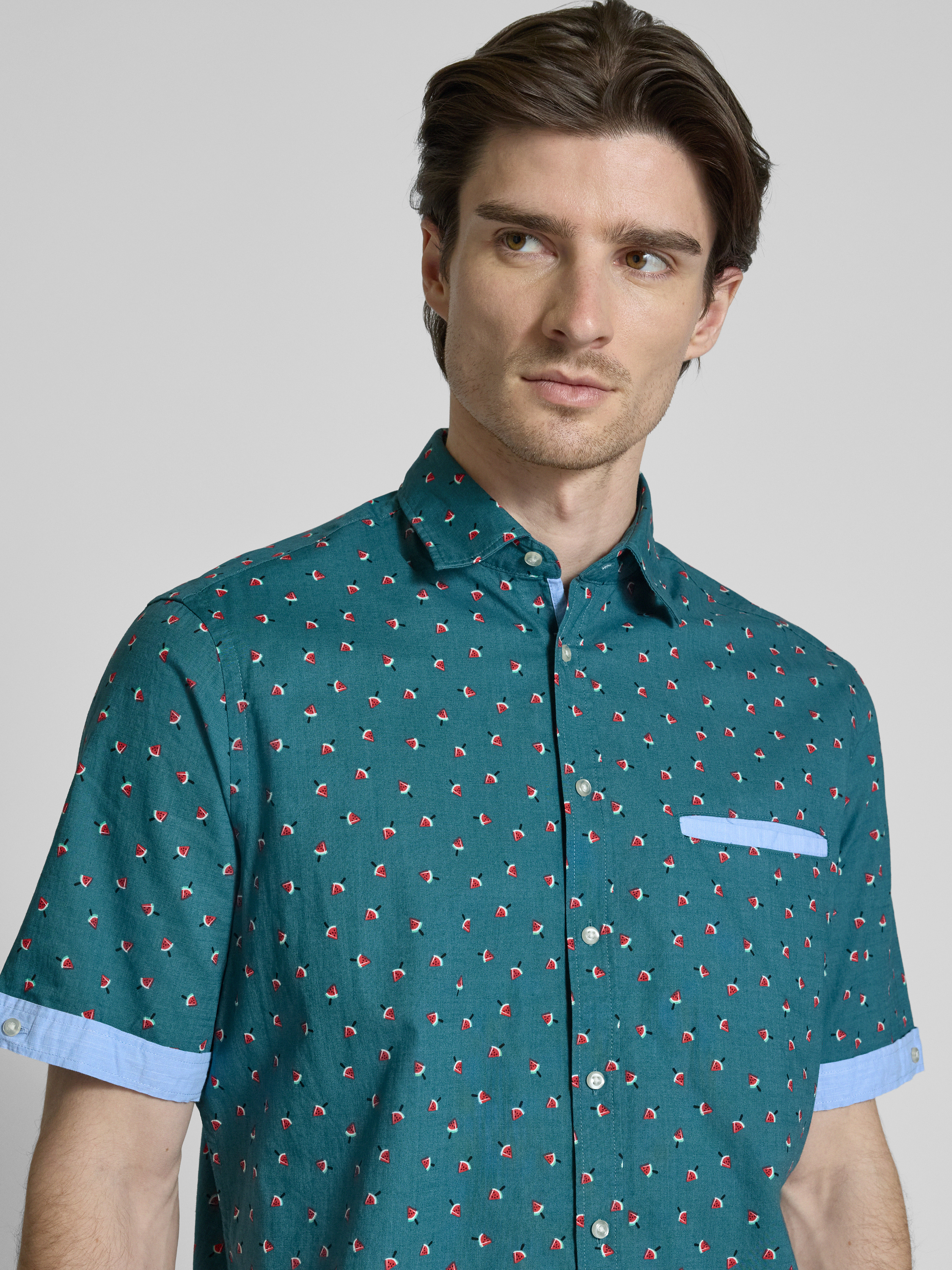 Christian Berg MenRegular Fit Freizeithemd mit Kentkragen in metallic gruen