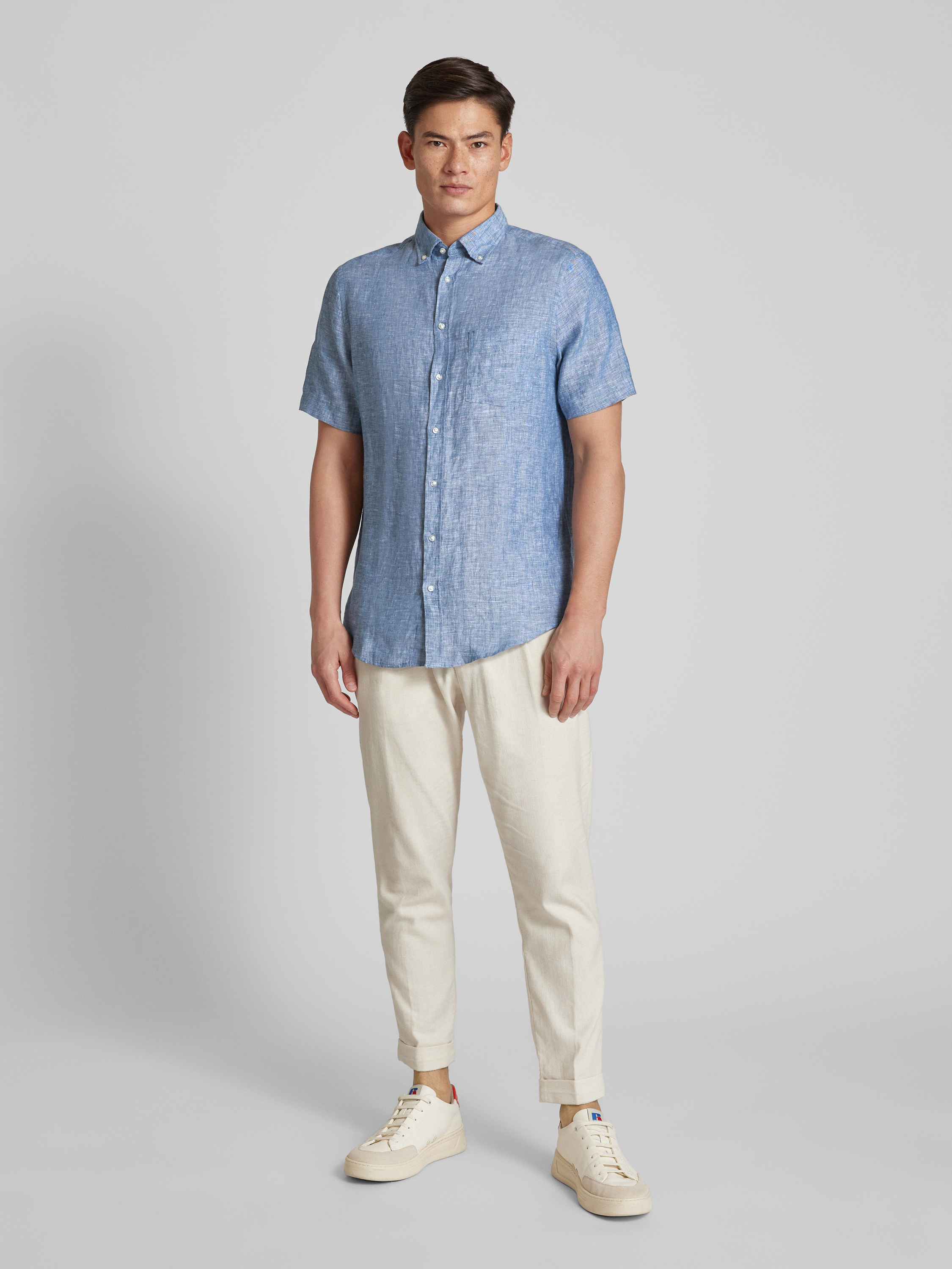 Christian Berg MenRegular Fit Leinenhemd mit Button-Down-Kragen in petrol