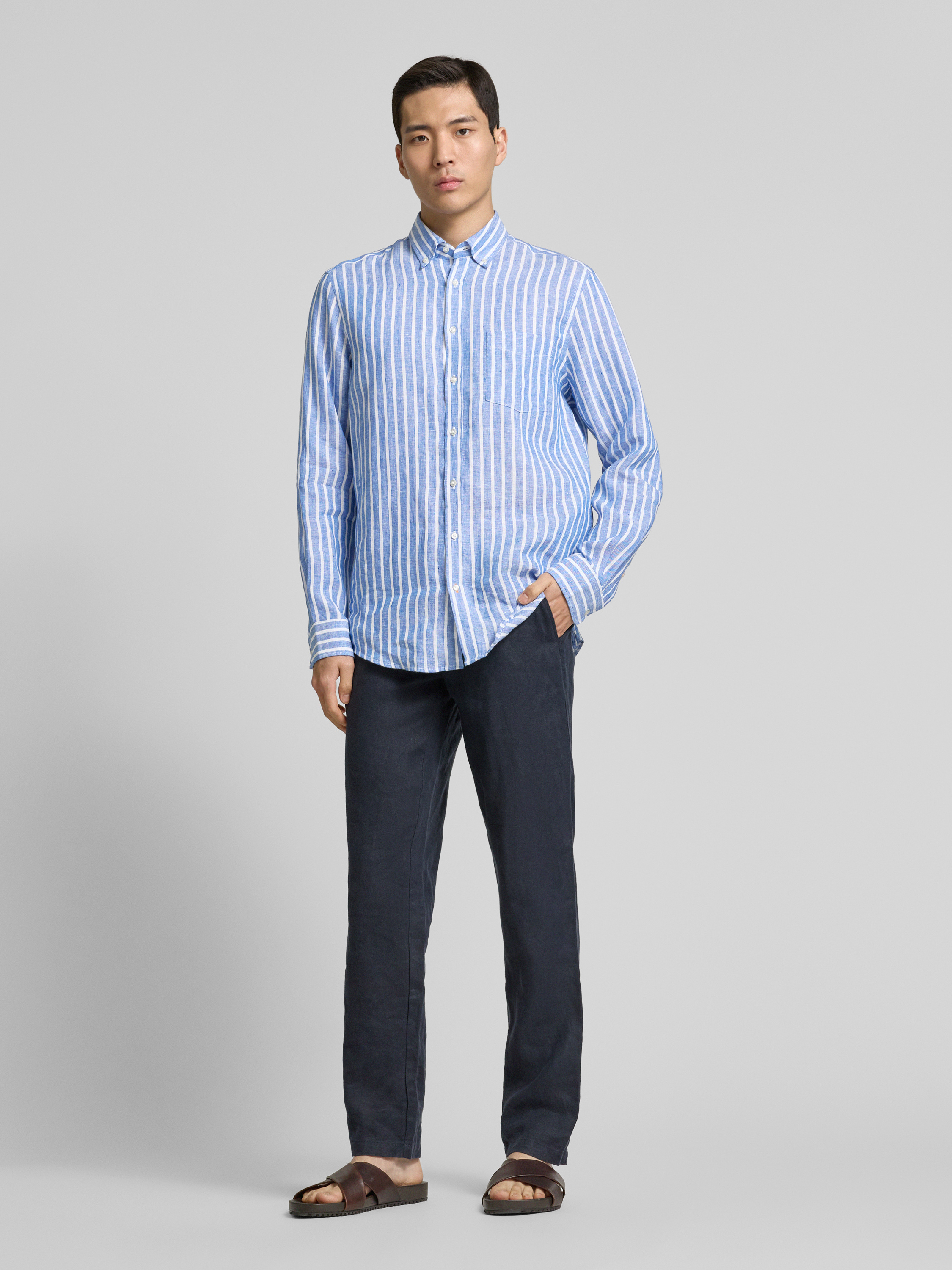 Christian Berg MenRegular Fit Leinenhemd mit Button-Down-Kragen in royal