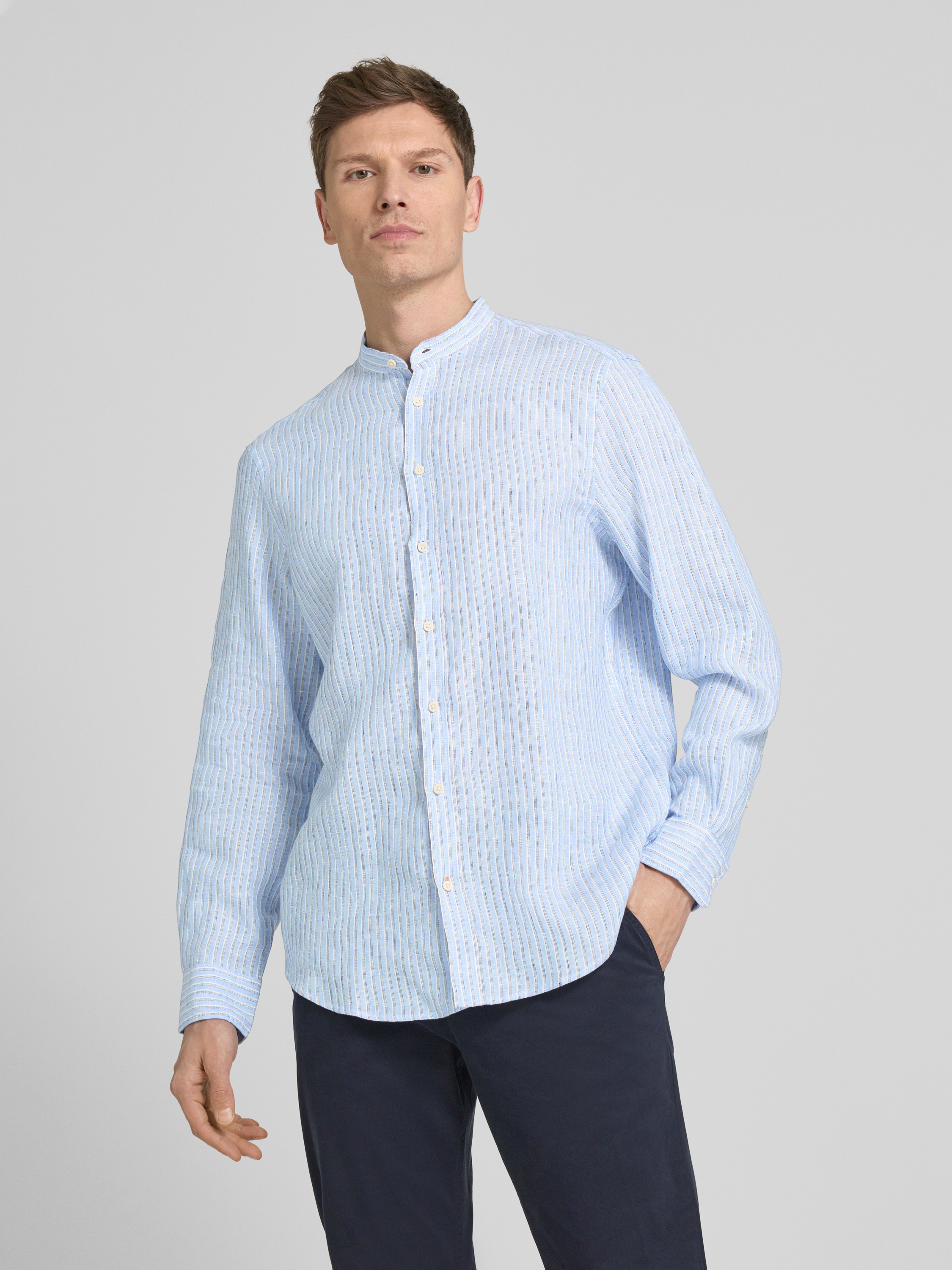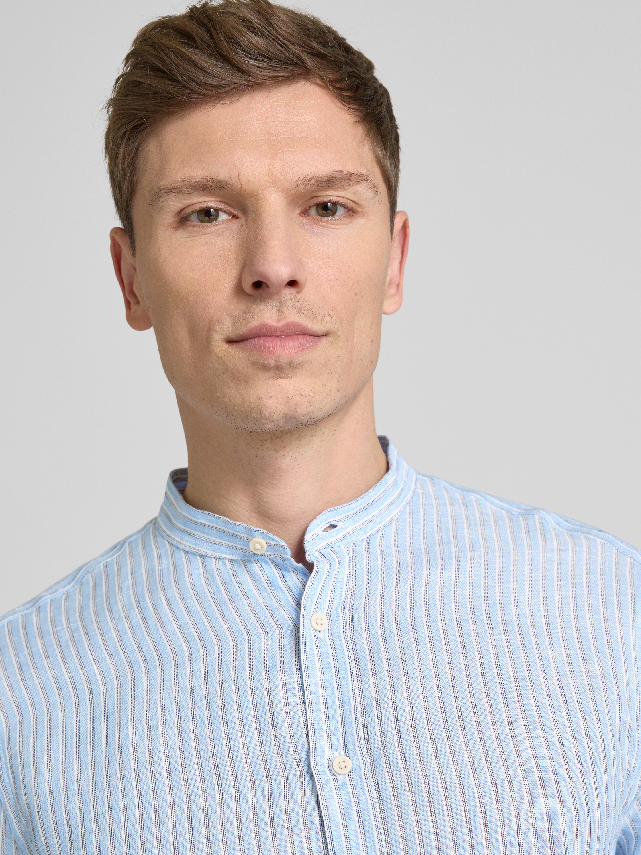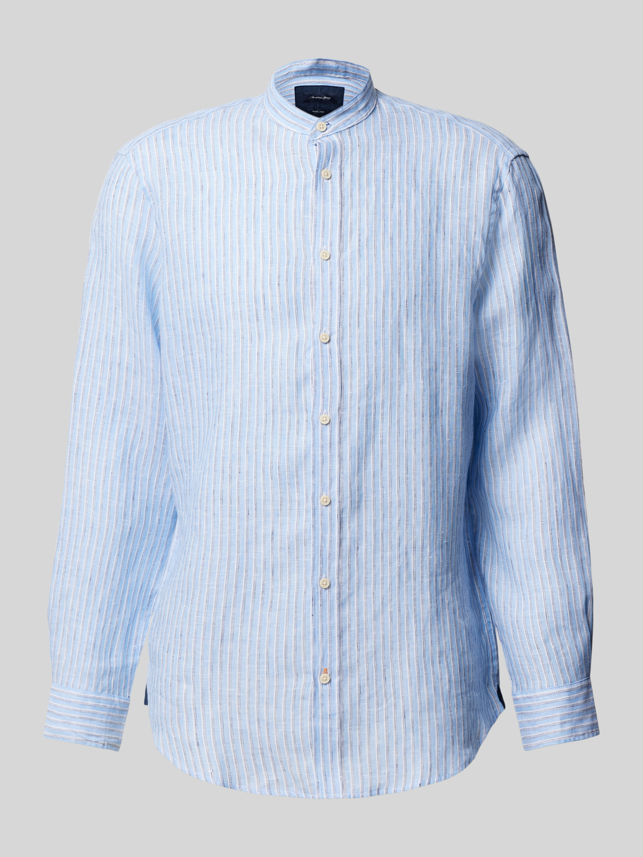 Christian Berg MenRegular Fit Leinenhemd mit Stehkragen in bleu