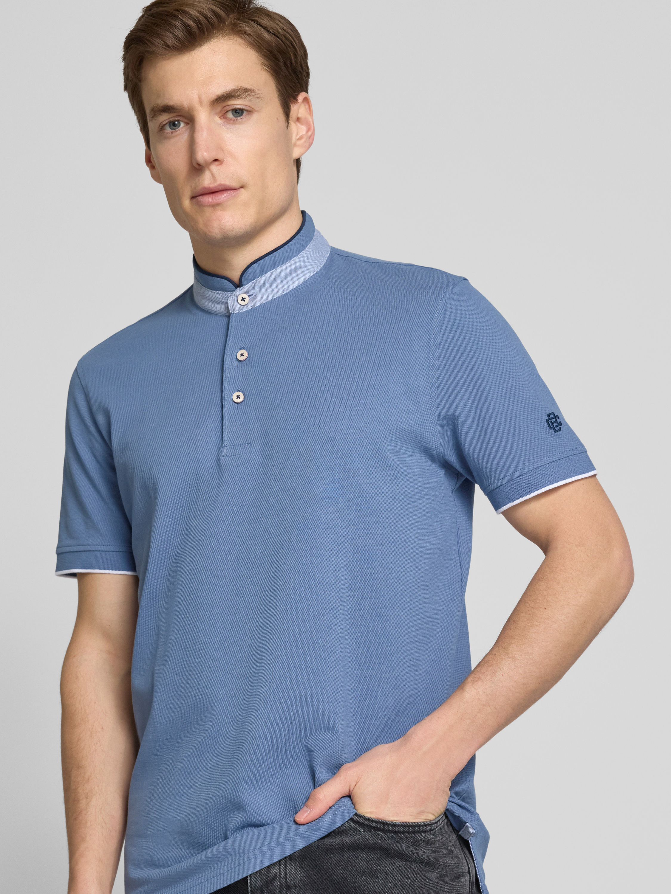 Christian Berg MenRegular Fit Poloshirt mit Stehkragen in jeansblau