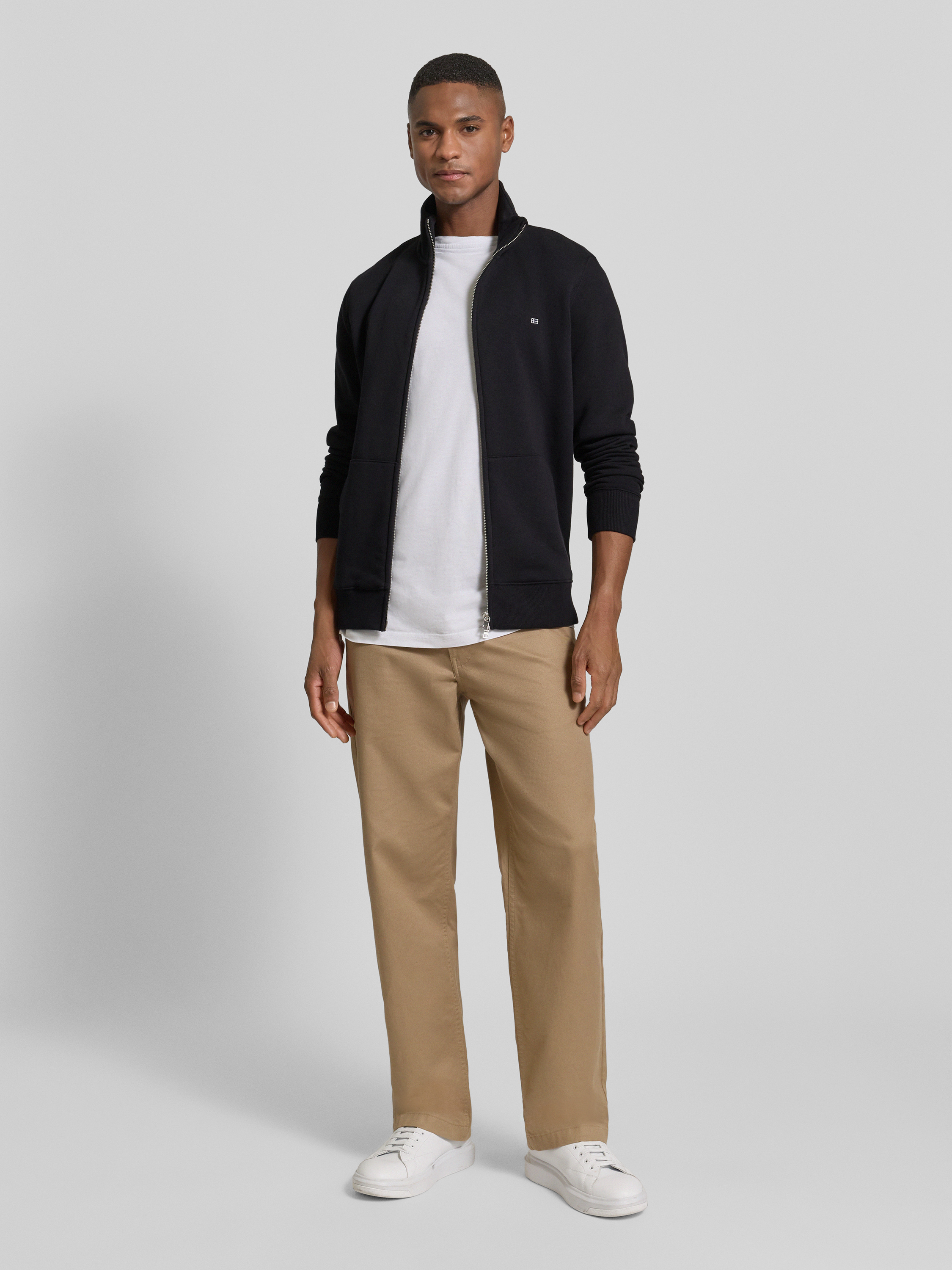 Christian Berg MenRegular Fit Sweatjacke mit Stehkragen in black