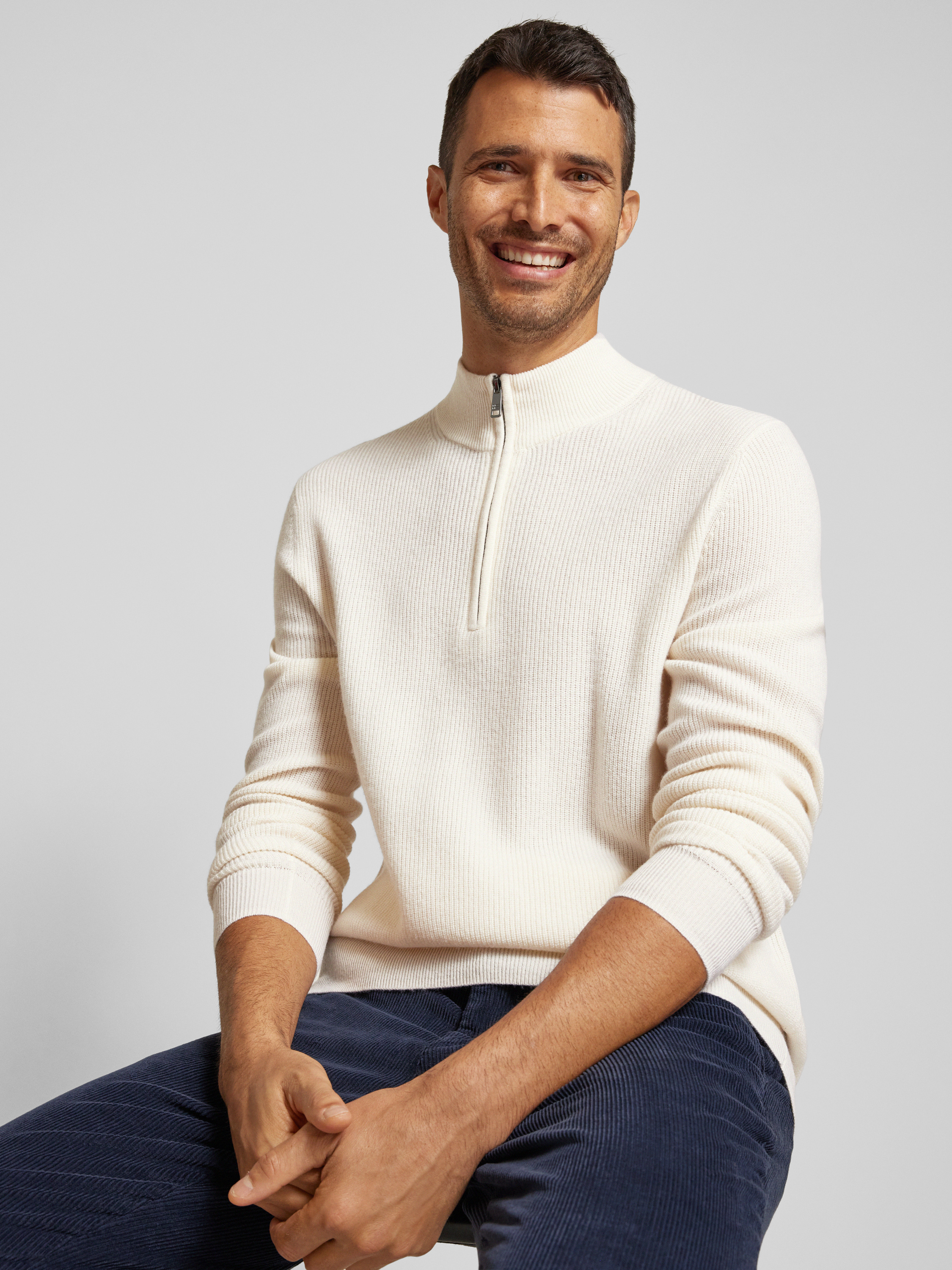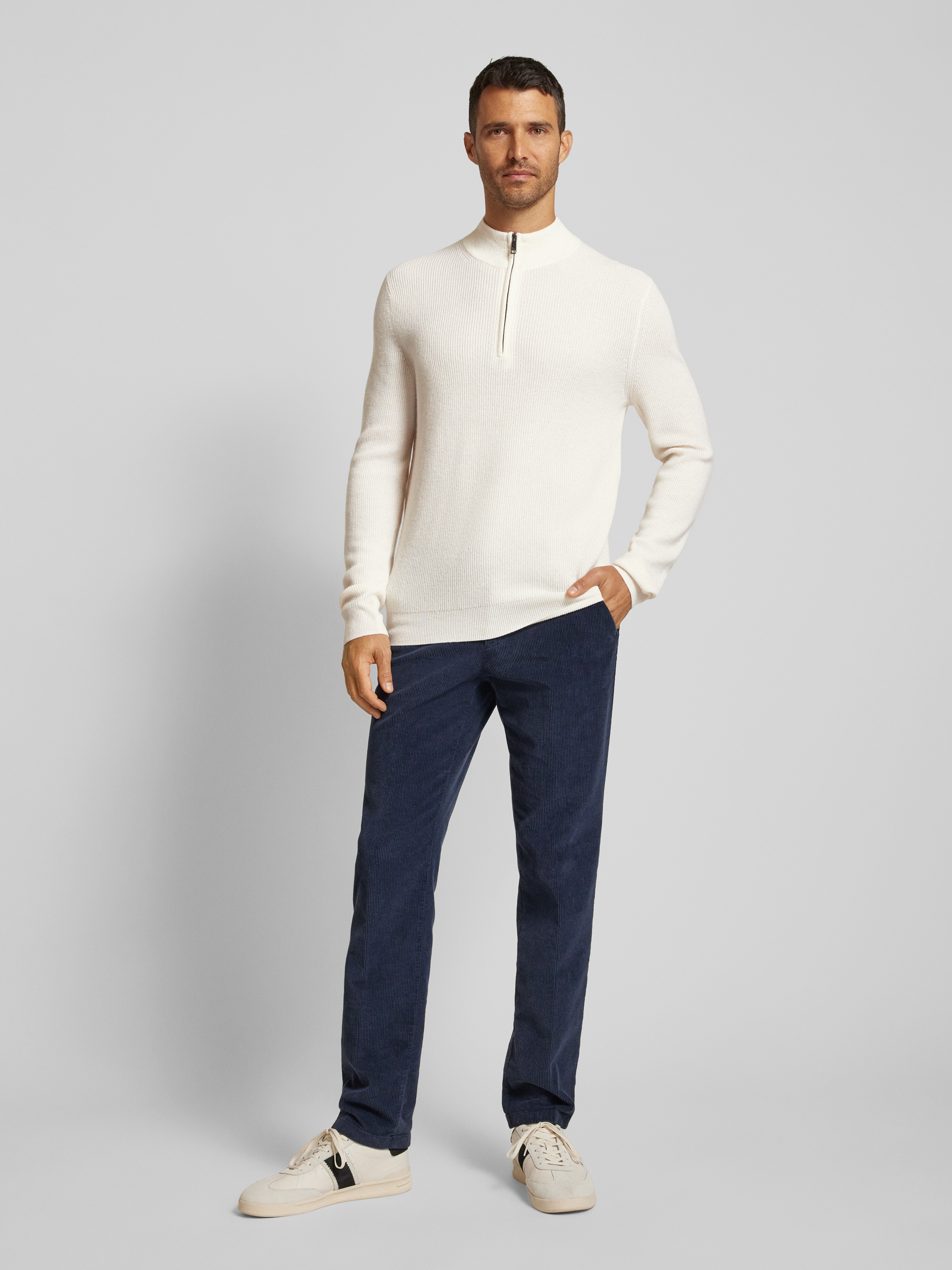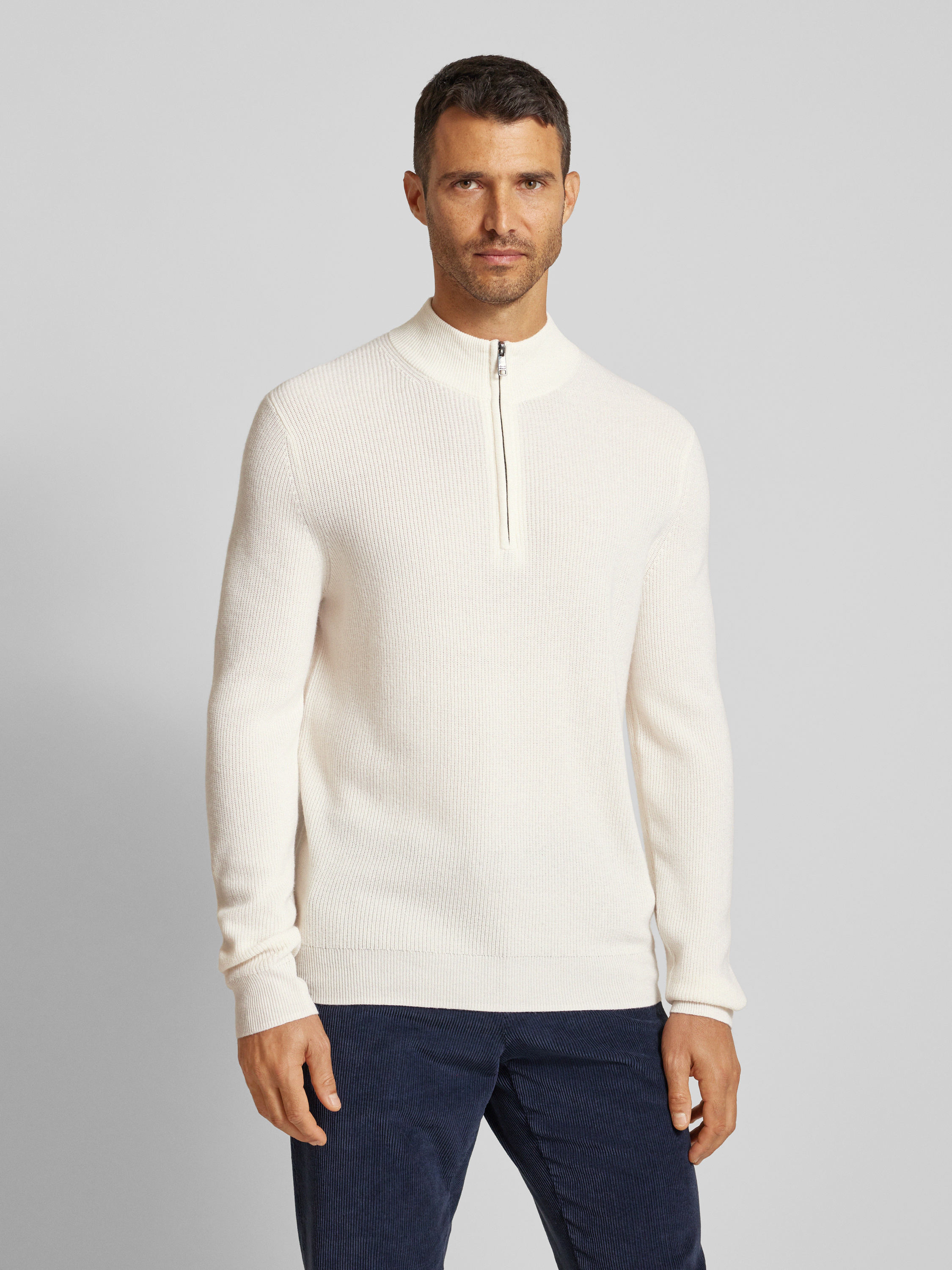 Christian Berg MenRegular Fit Troyer aus Woll-Kaschmir-Mix in offwhite melange