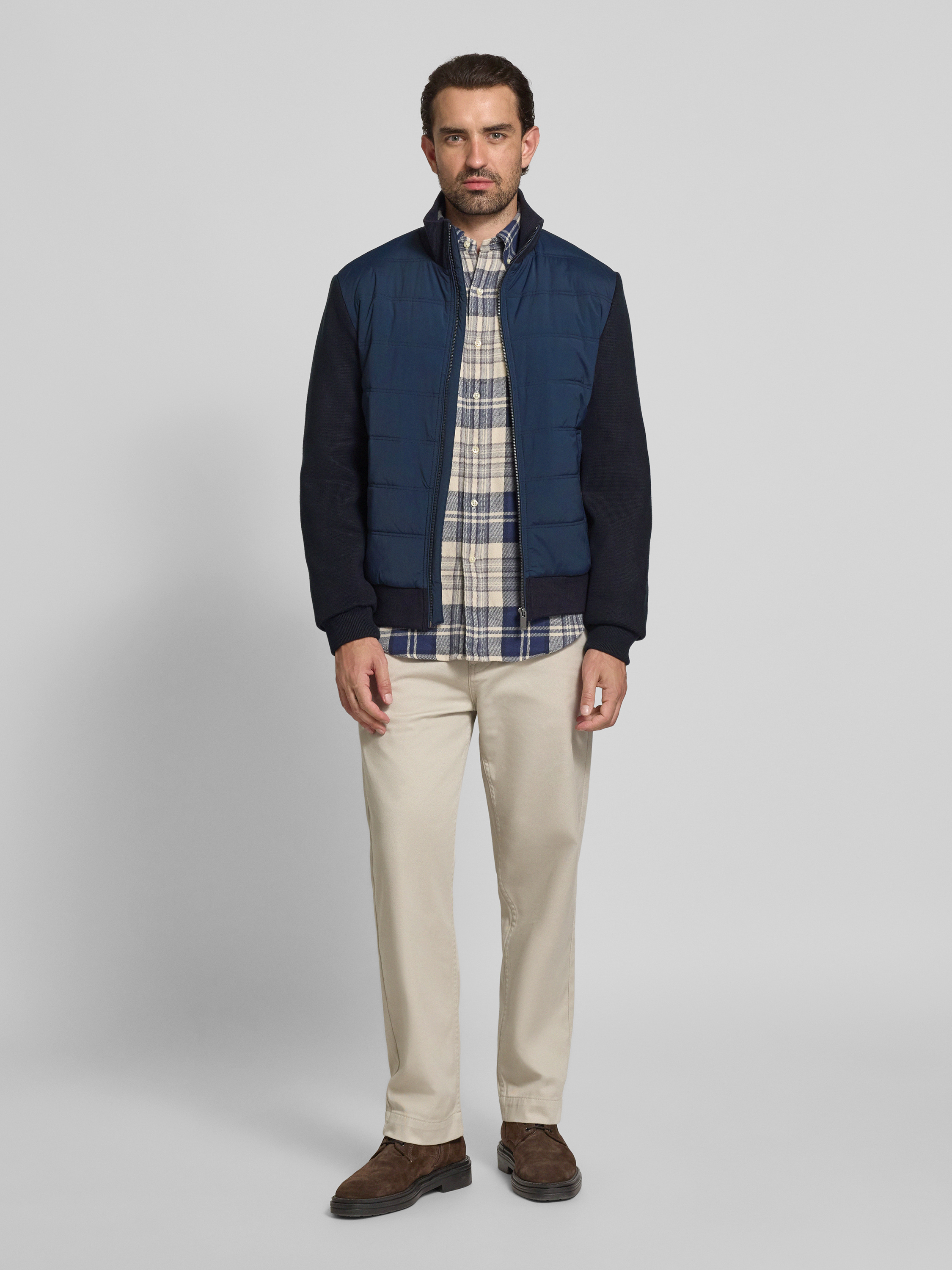 Die Herrenjacke von Christian Berg Men kombiniert eine klassische Steppstruktur mit praktischem Stehkragen und sorgt so für angenehmen Schutz an kühlen Tagen. Durch den Regular Fit sitzt sie bequem, während der Material-Mix mit Stretch-Anteil Bewegungsfreiheit im Alltag ermöglicht. Zwei seitliche Eingrifftaschen bieten Platz für Kleinigkeiten.