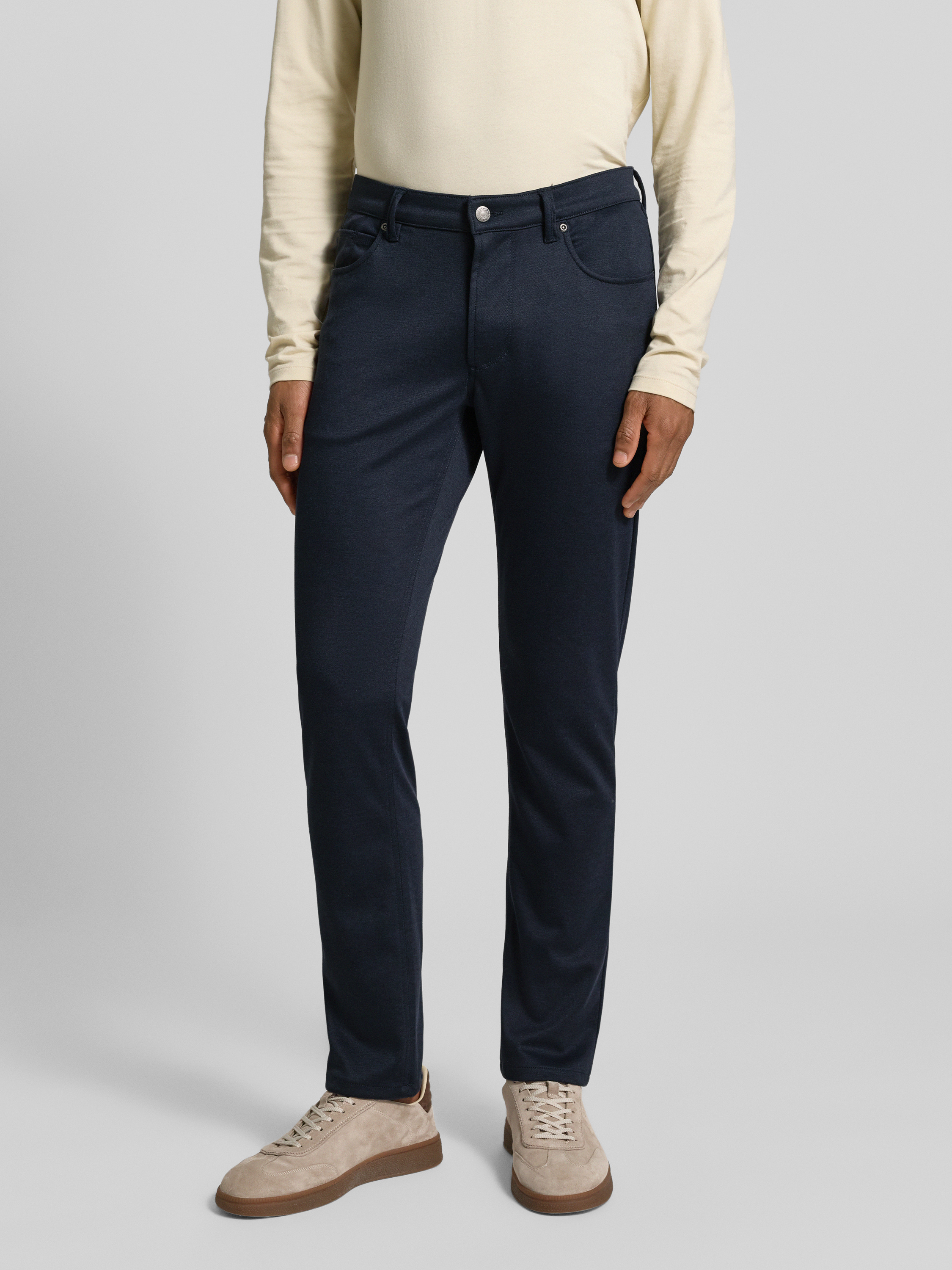 Die Herren Stoffhose von Christian Berg Men fällt durch ihren geraden Schnitt auf, wodurch sie sich vielseitig einsetzen lässt und angenehm sitzt. Französische Eingrifftaschen und dezente Gesäßtaschen bieten Platz für Kleinigkeiten, ohne das klare Design zu unterbrechen. So entsteht ein unkomplizierter Look, der sich mühelos kombinieren lässt.