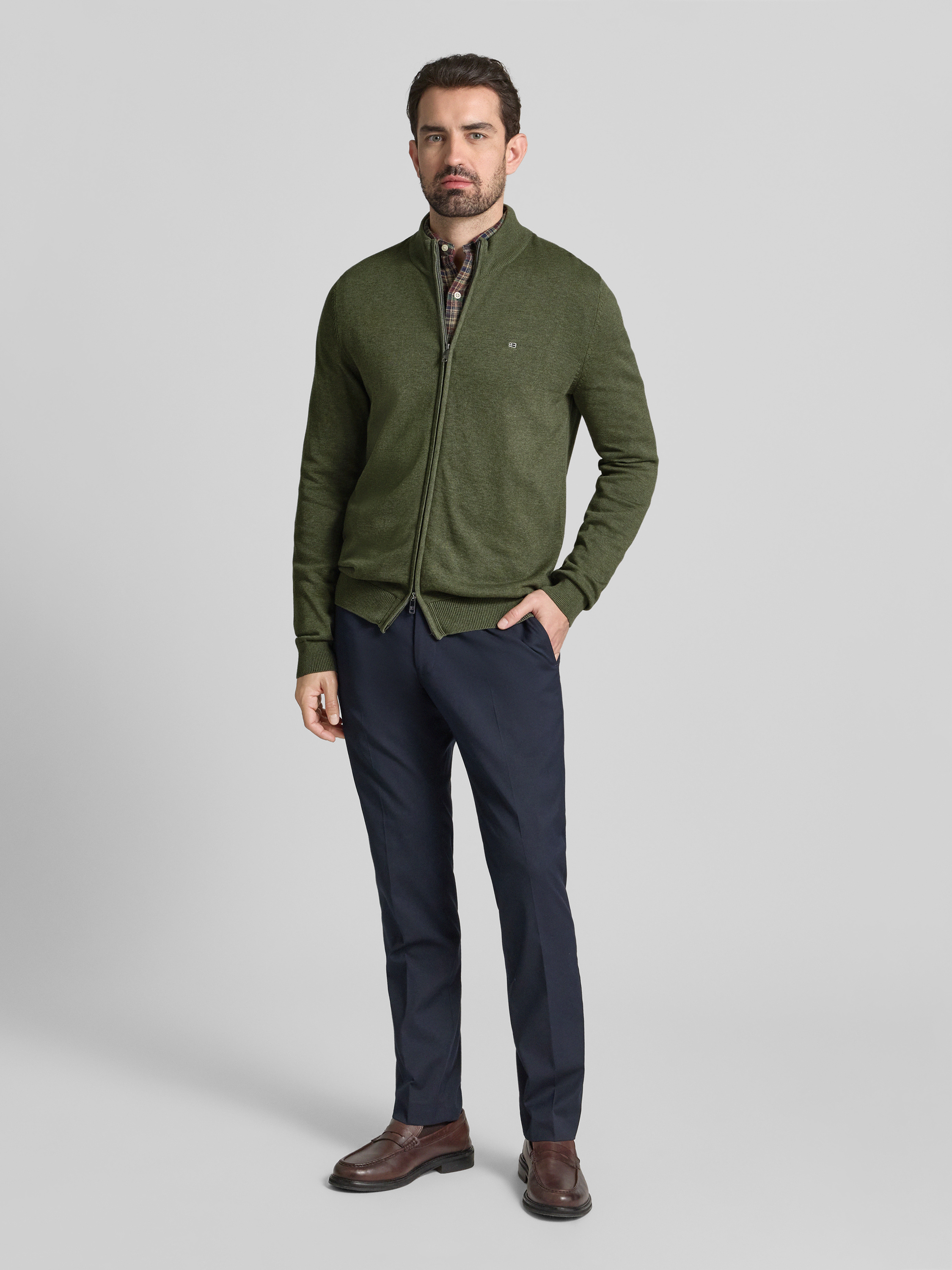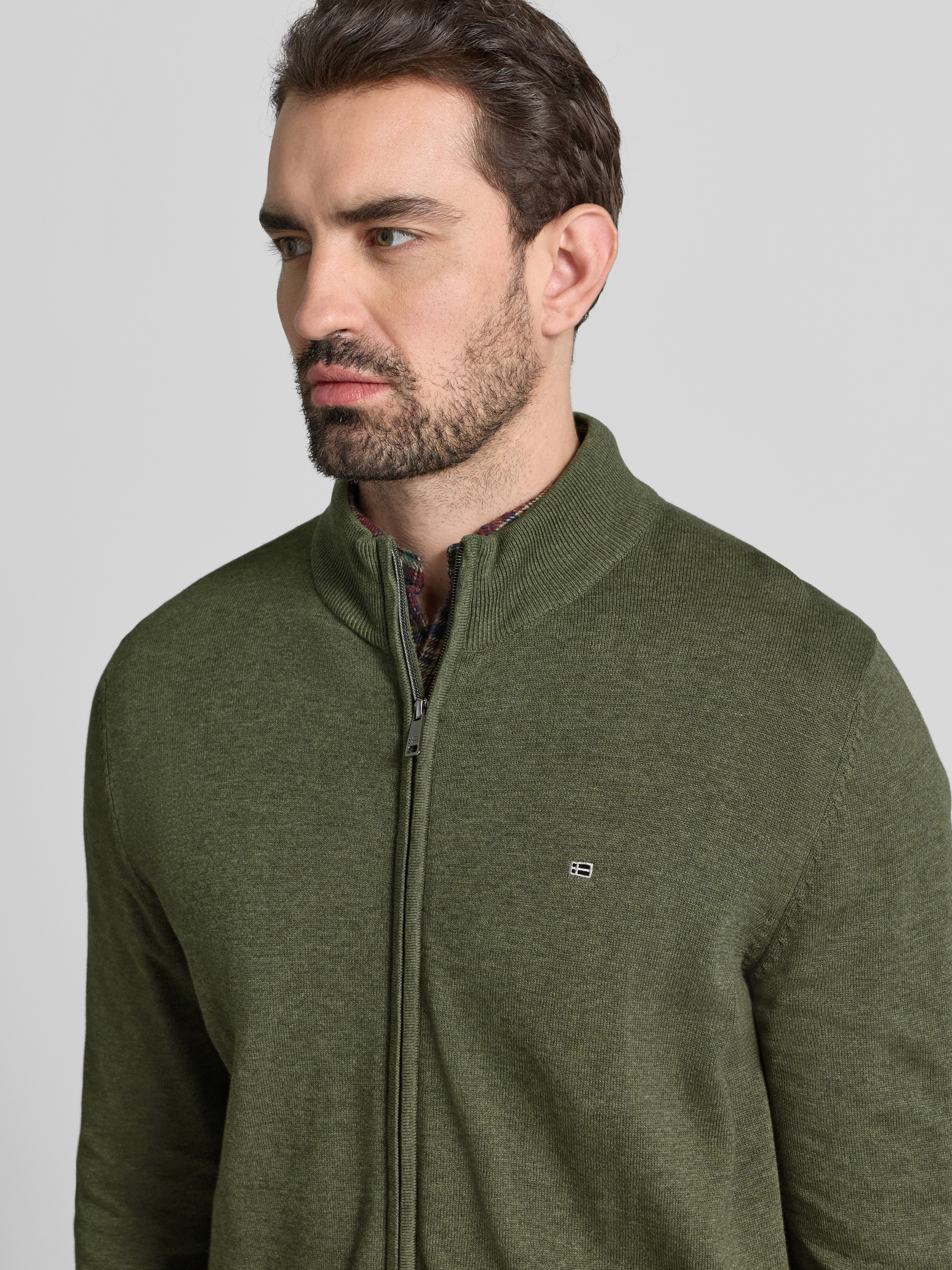 Christian Berg MenStrickjacke mit Reißverschluss in oliv melange