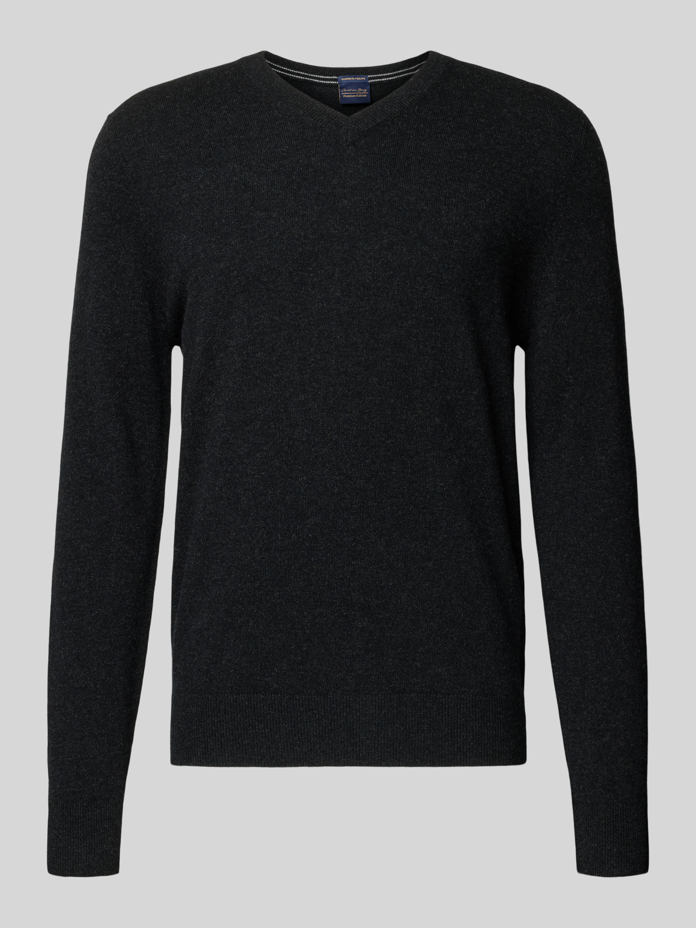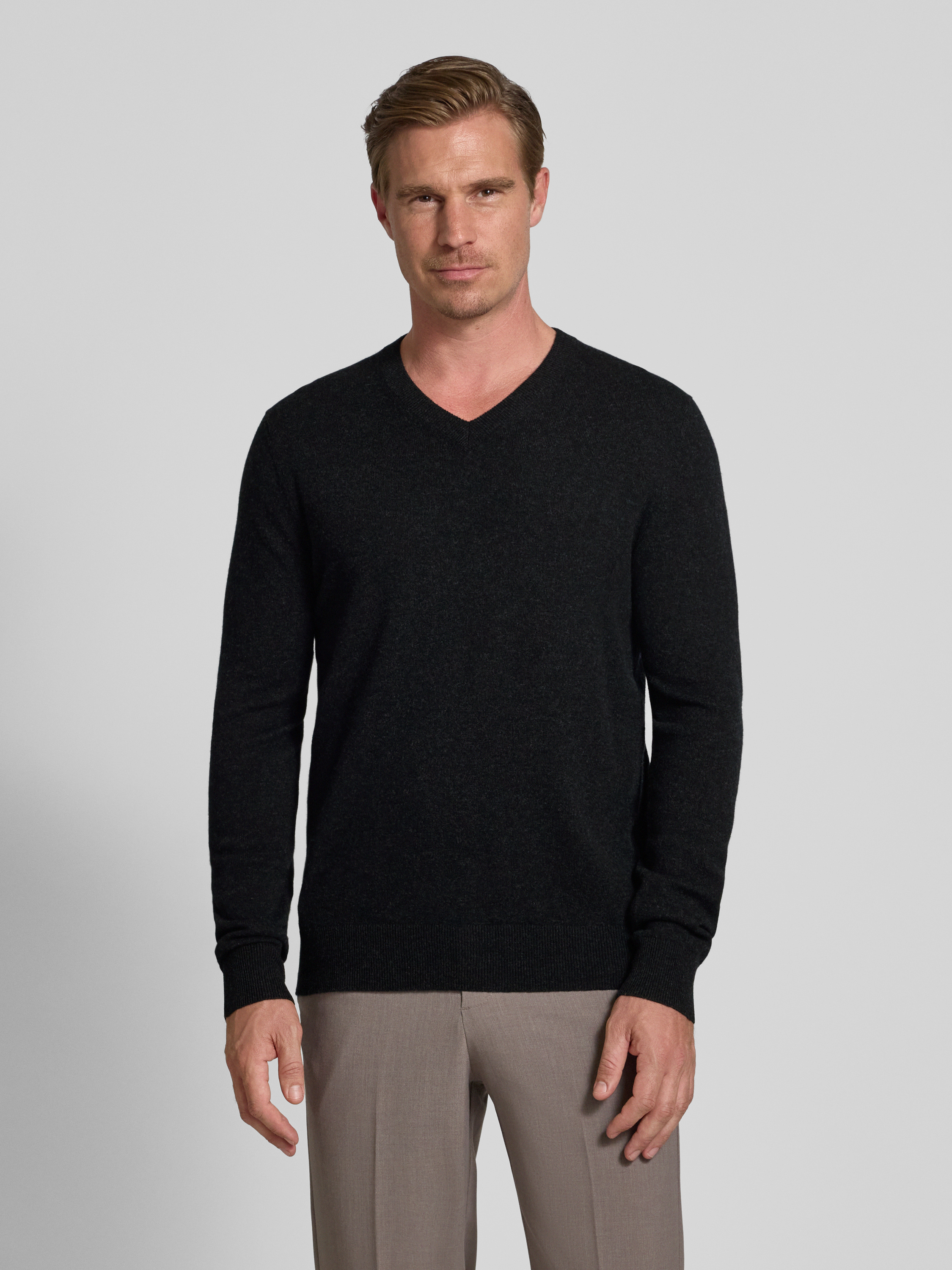Christian Berg MenStrickpullover aus Wolle-Kaschmir-Mix mit V-Ausschnitt in anthrazit melange