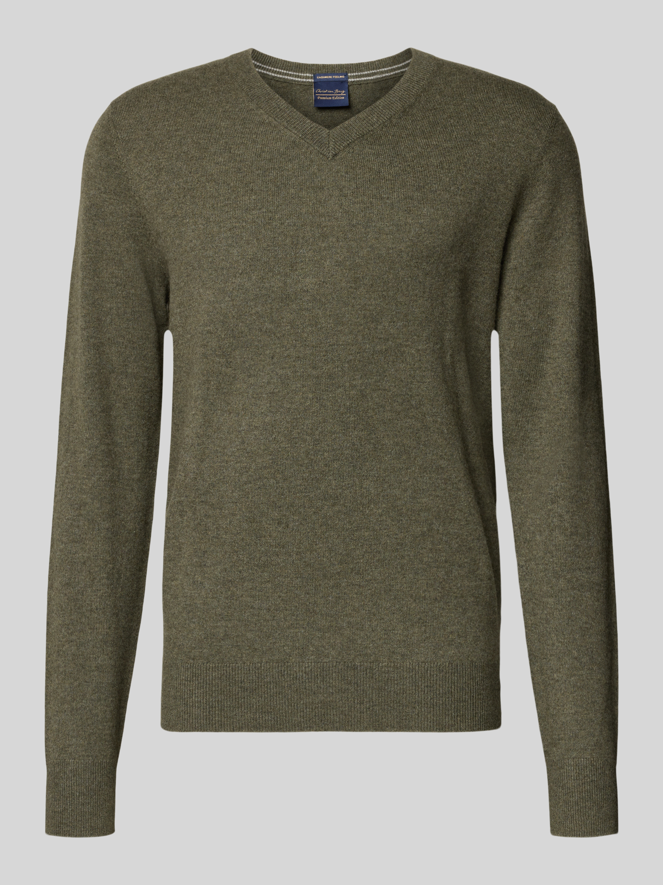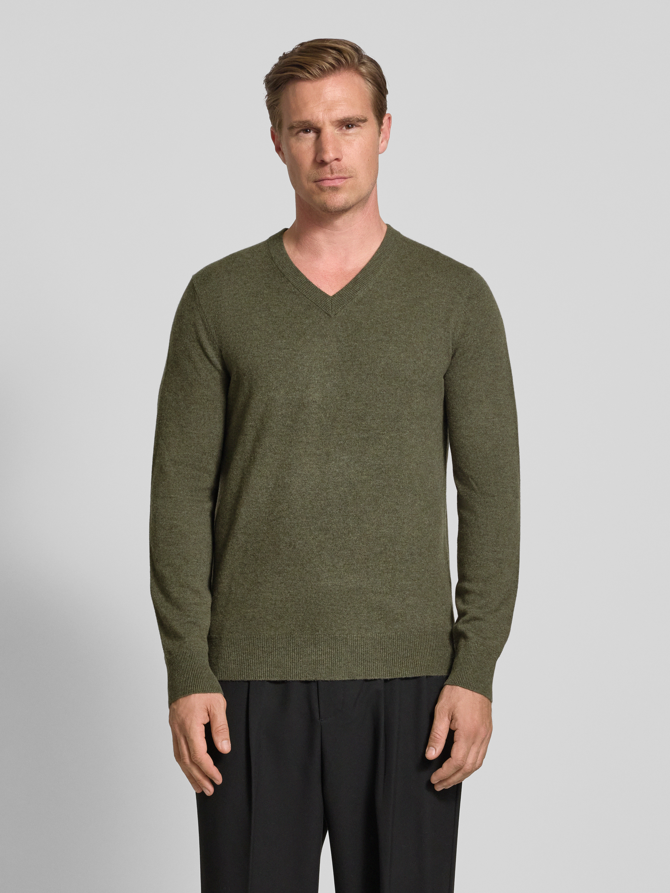 Christian Berg MenStrickpullover aus Wolle-Kaschmir-Mix mit V-Ausschnitt in oliv melange