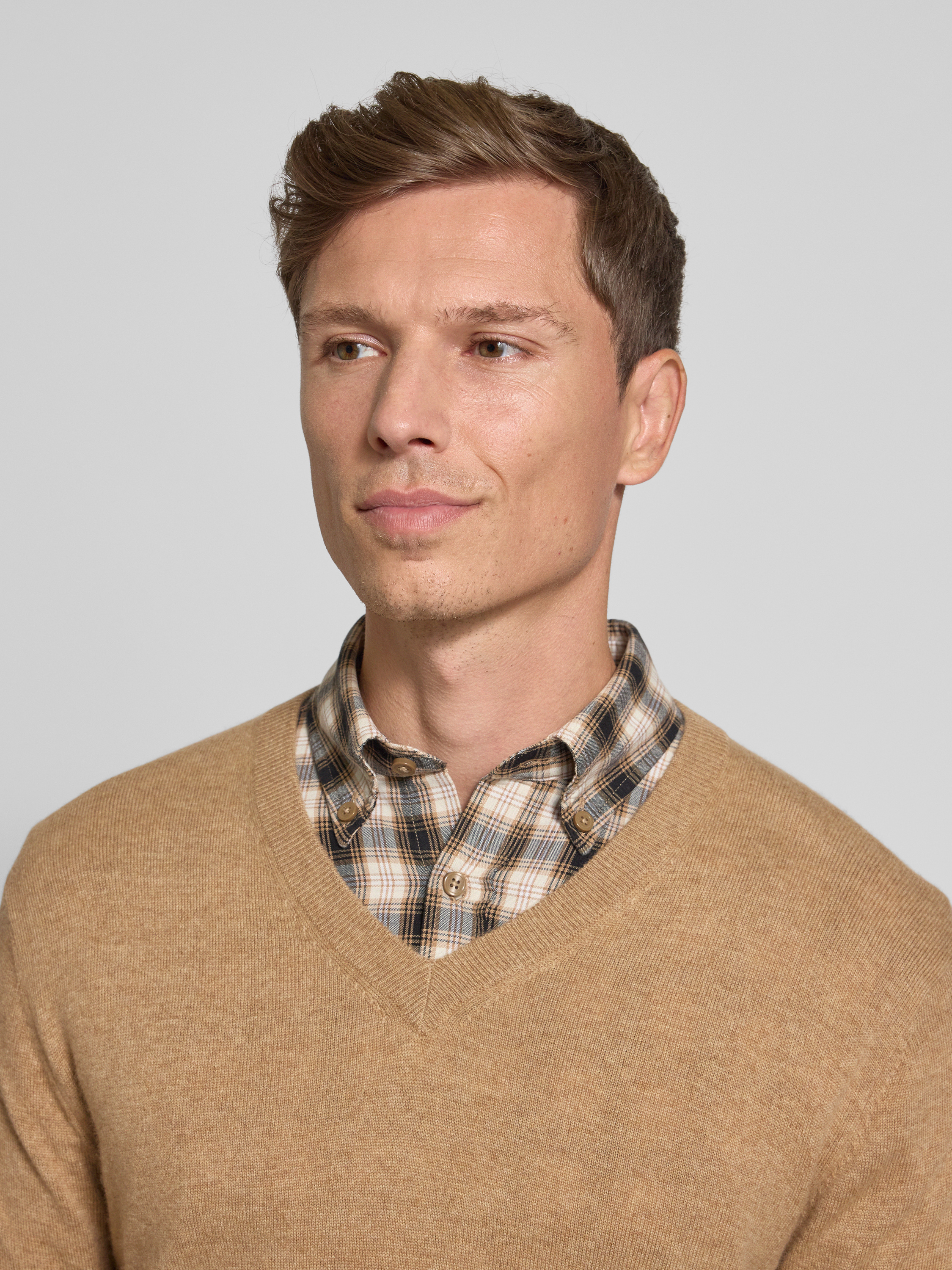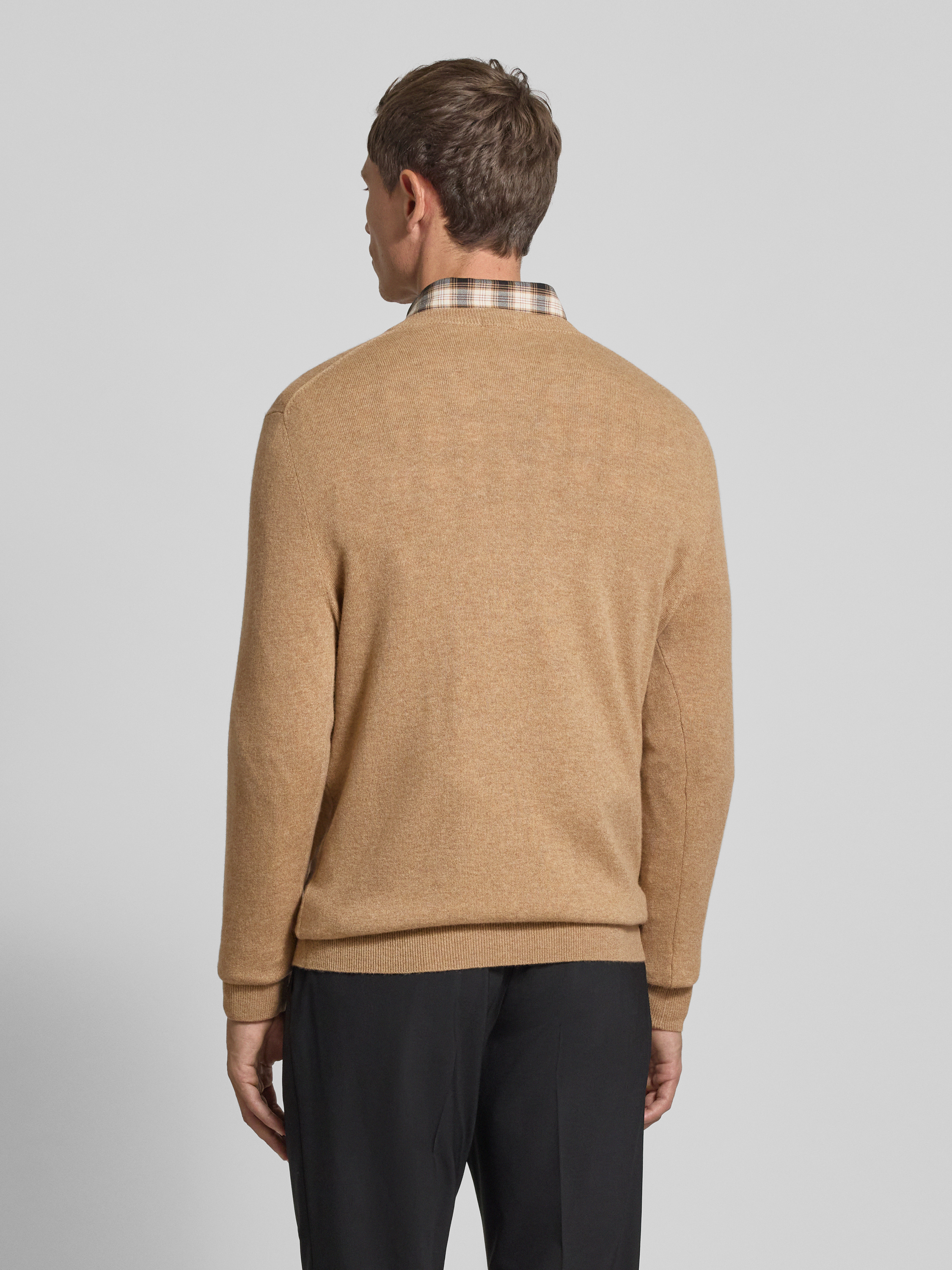 Christian Berg MenStrickpullover aus Wolle-Kaschmir-Mix mit V-Ausschnitt in sand melange