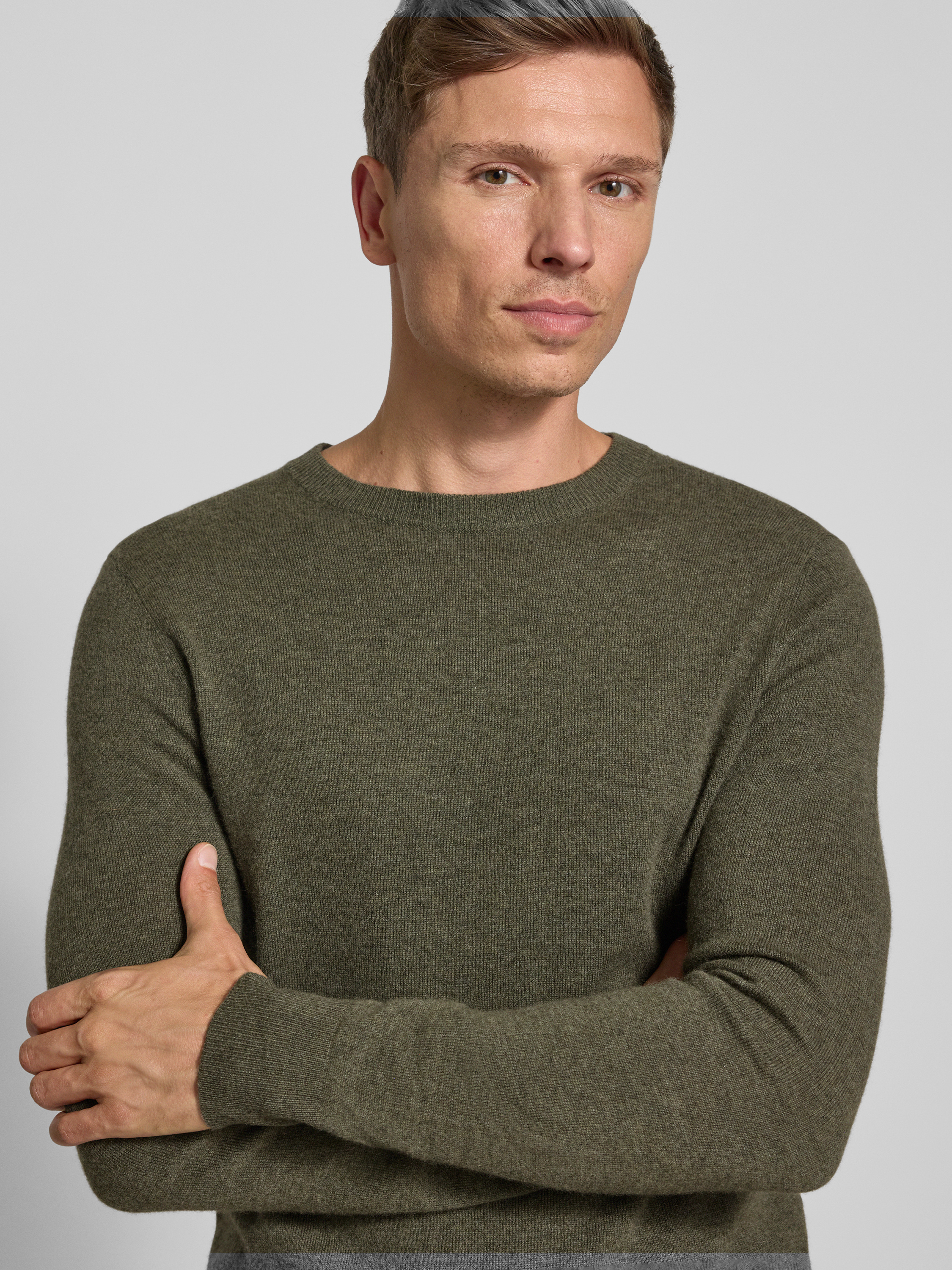 Christian Berg MenStrickpullover aus Wolle-Kaschmir-Mix in oliv melange