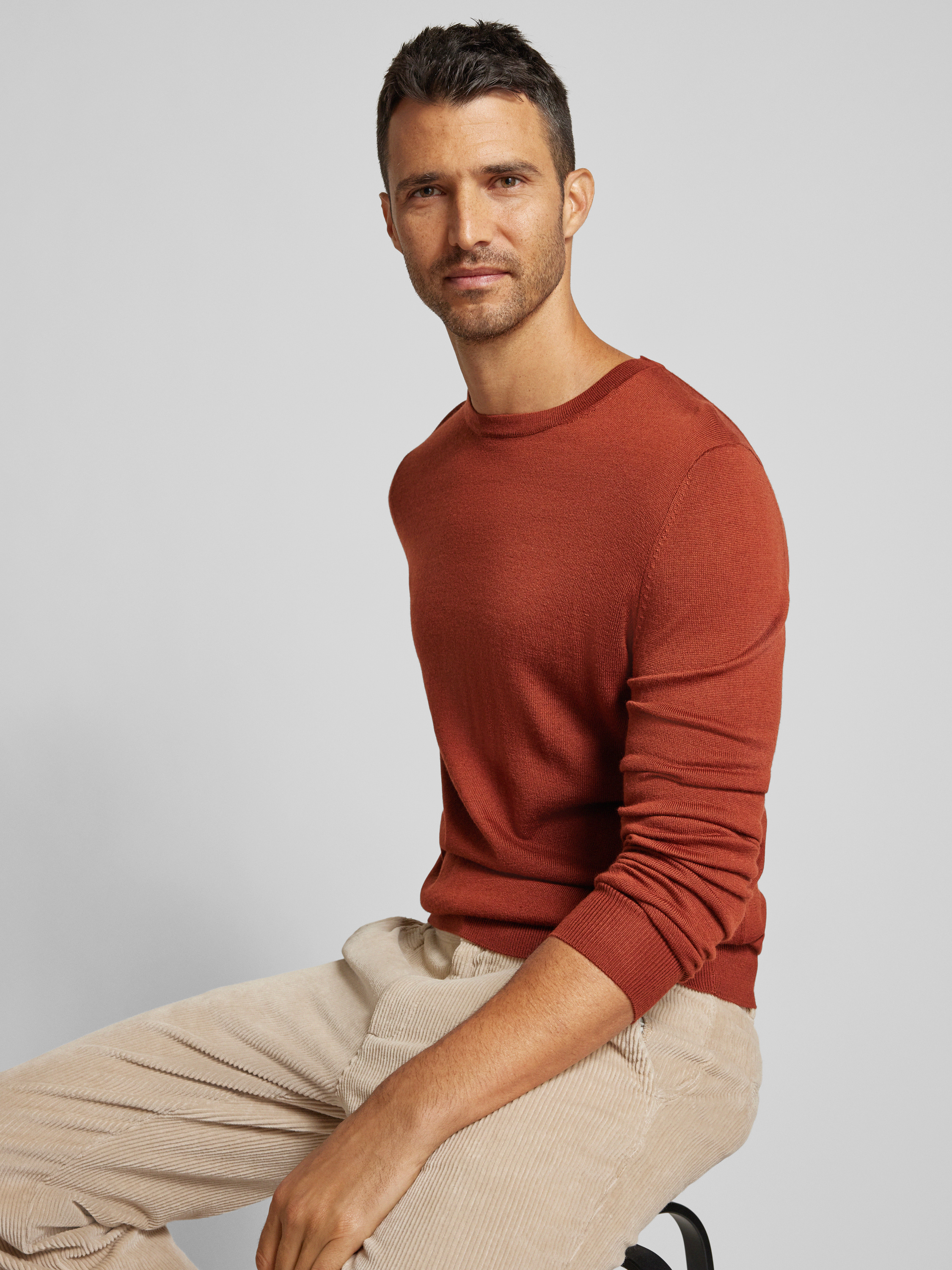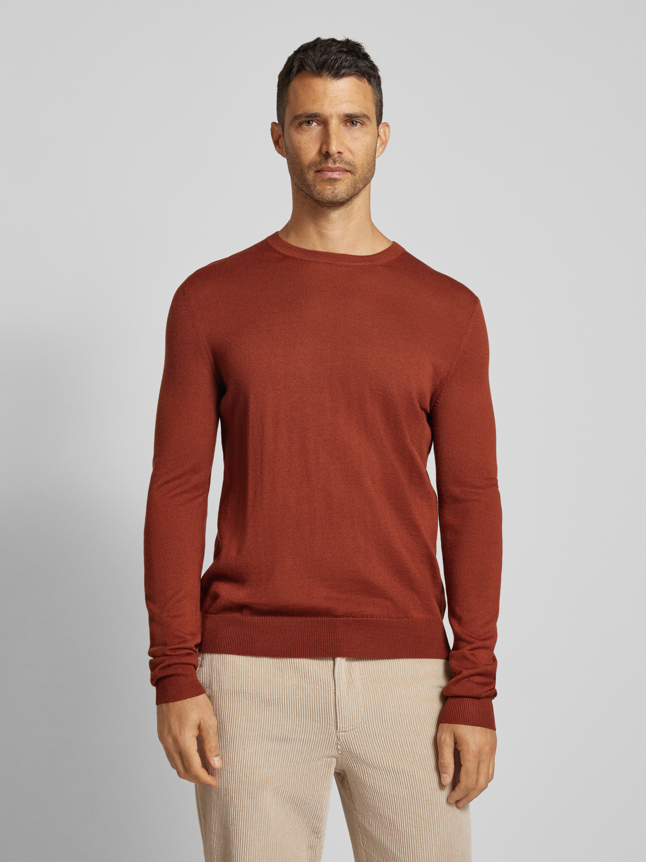 Christian Berg MenStrickpullover mit Rundhalsausschnitt in terra
