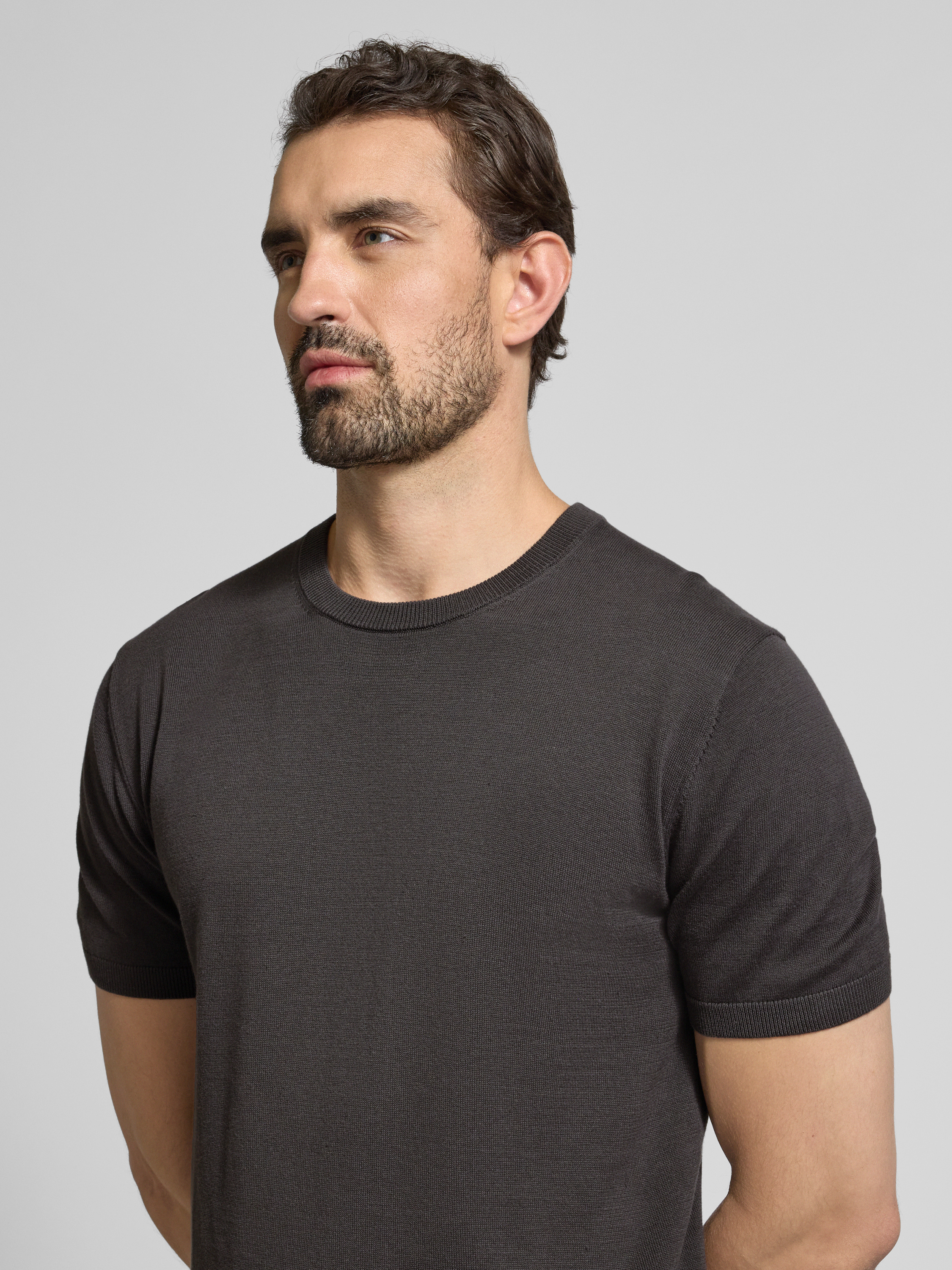 Christian Berg MenT-Shirt mit geripptem Rundhalsausschnitt in anthrazit