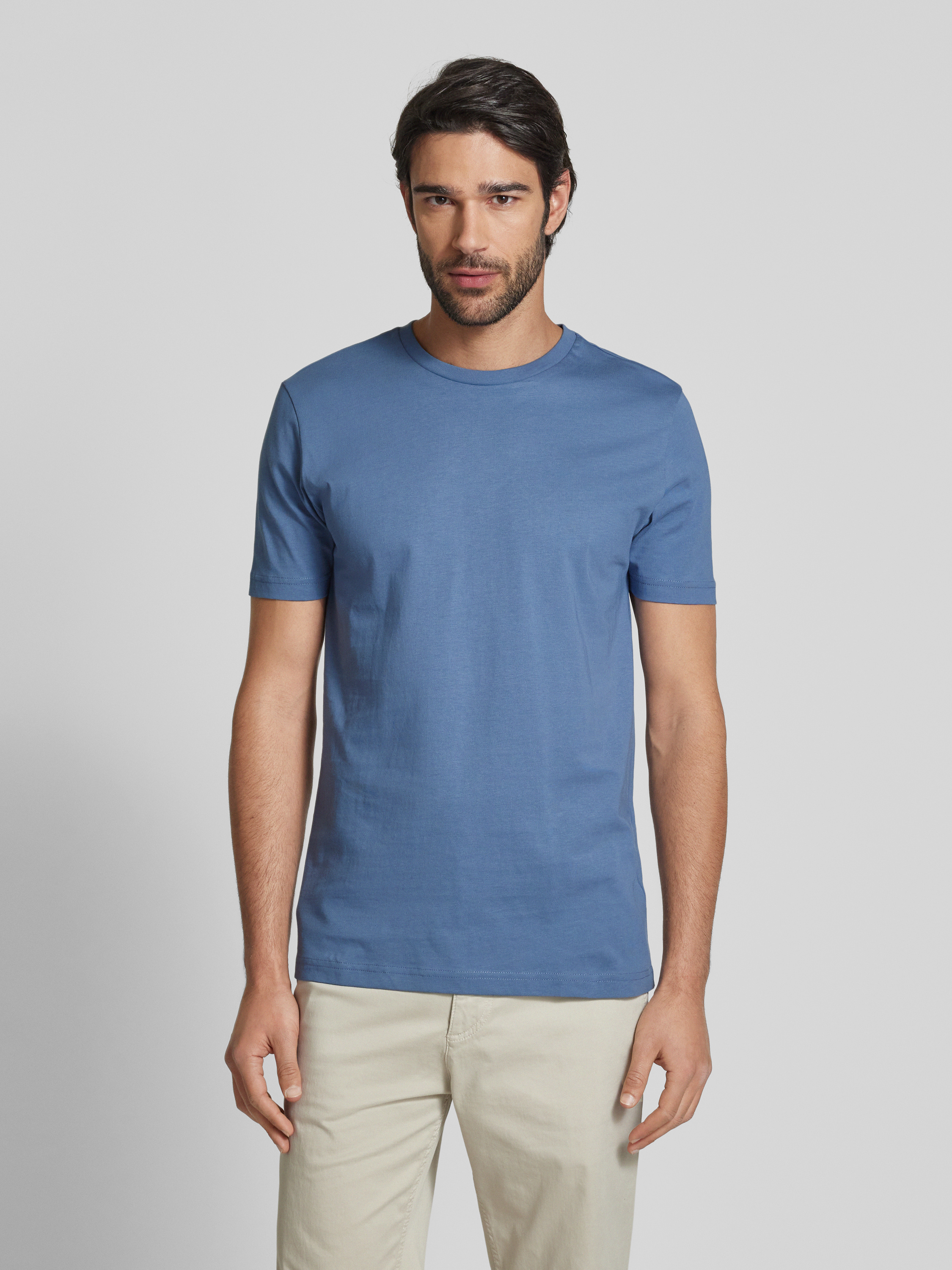 Christian Berg MenT-Shirt mit geripptem Rundhalsausschnitt in jeansblau