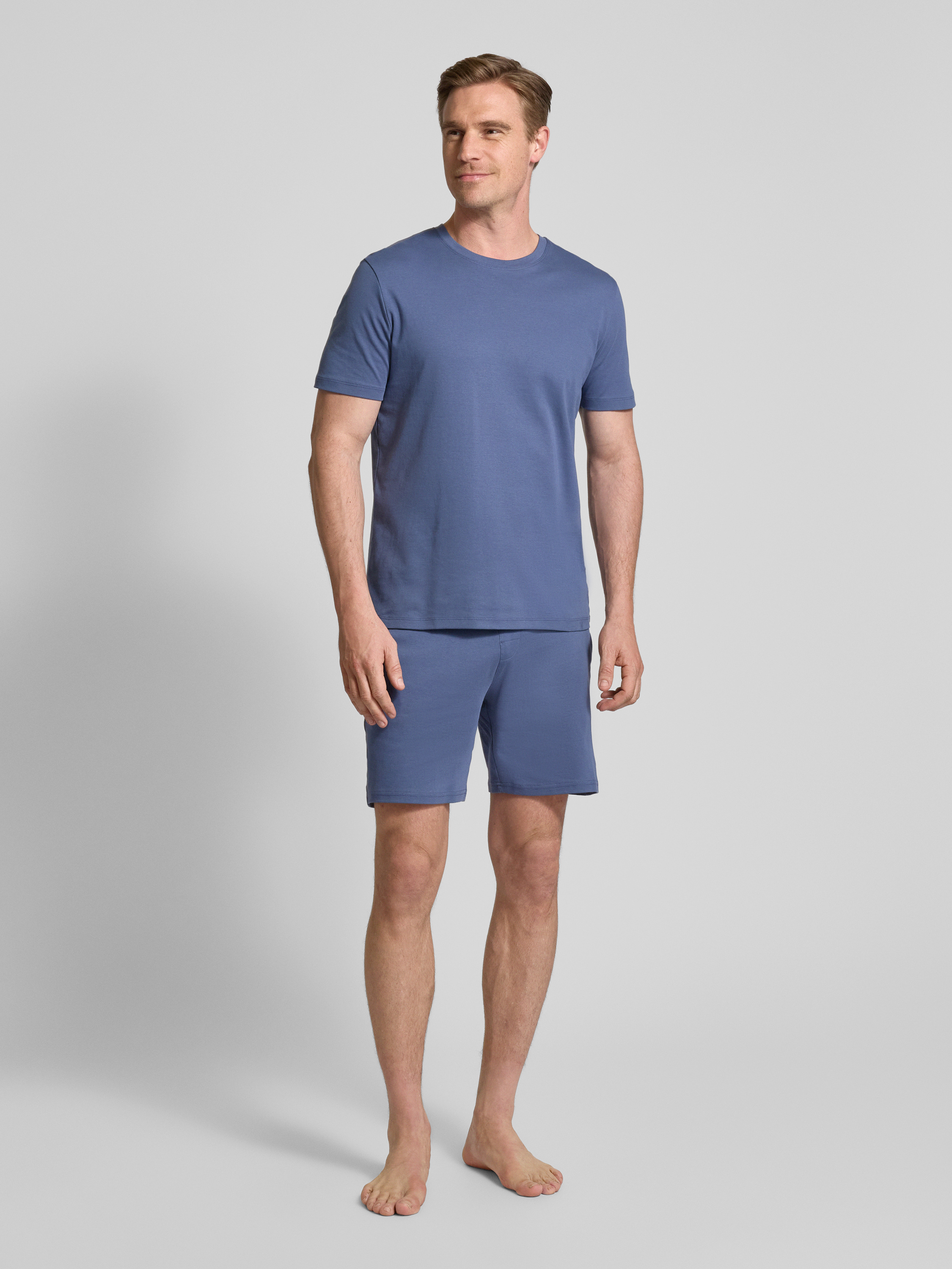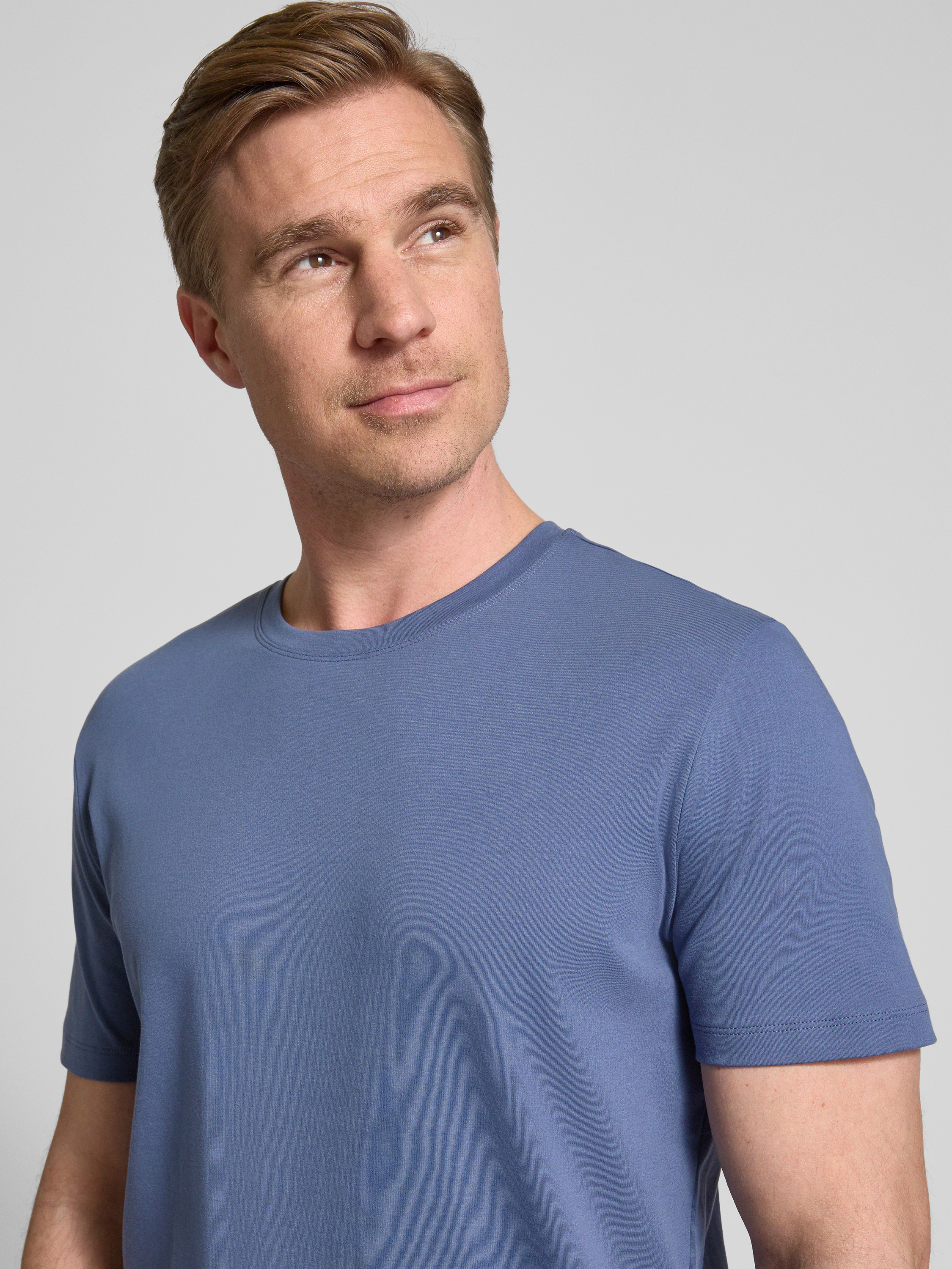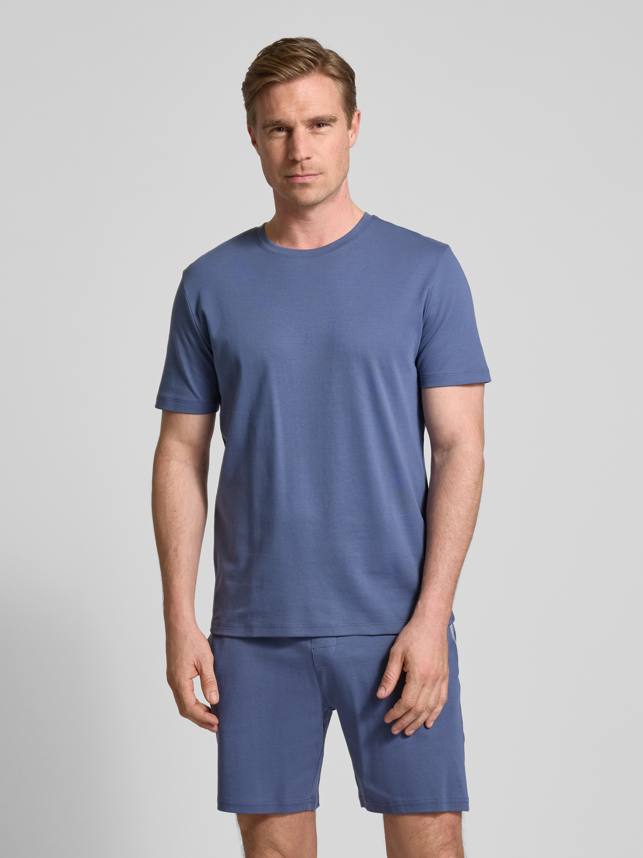 Christian Berg MenT-Shirt mit geripptem Rundhalsausschnitt in rauchblau