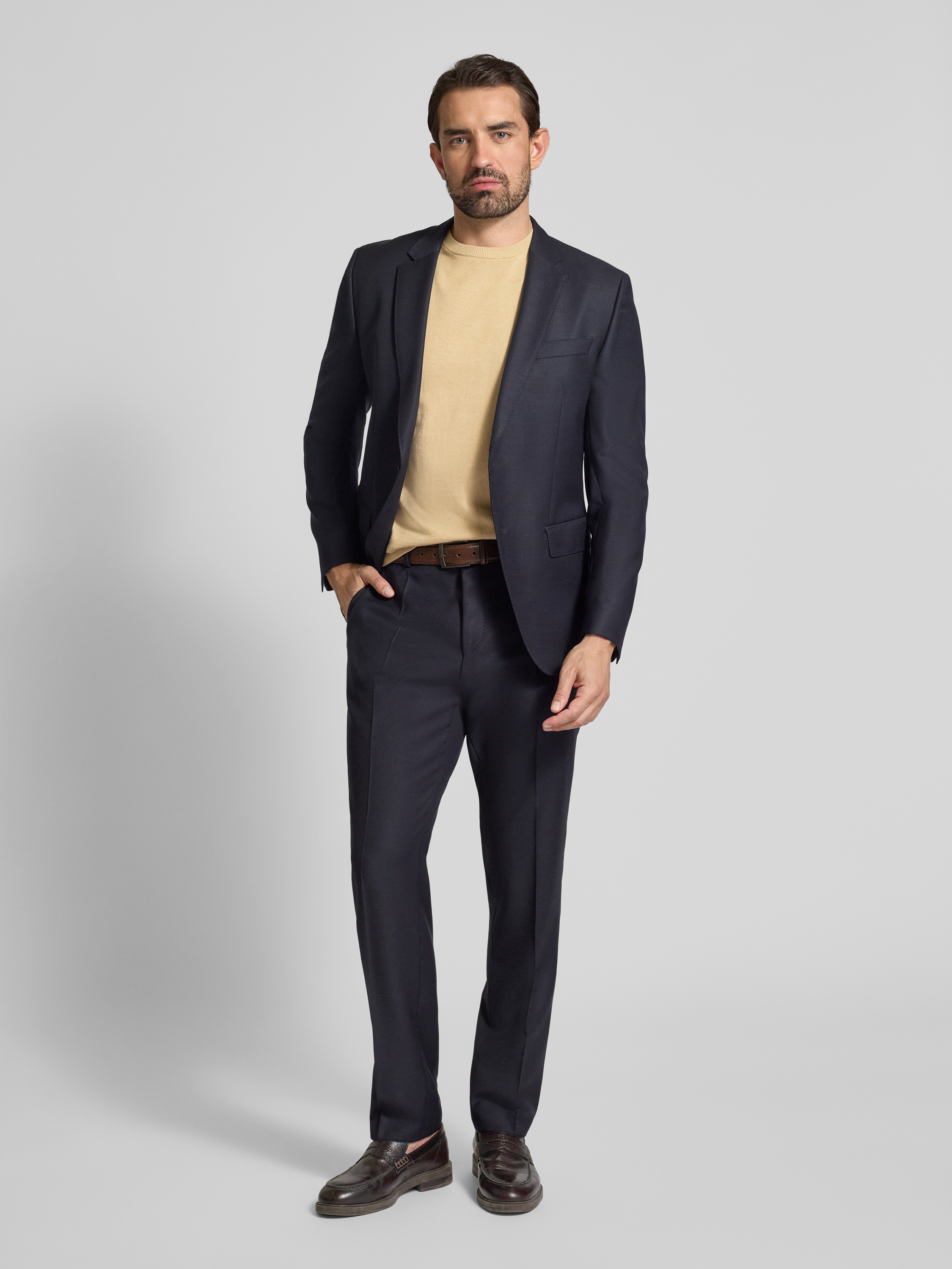 Christian Berg MenT-Shirt mit geripptem Rundhalsausschnitt in sand