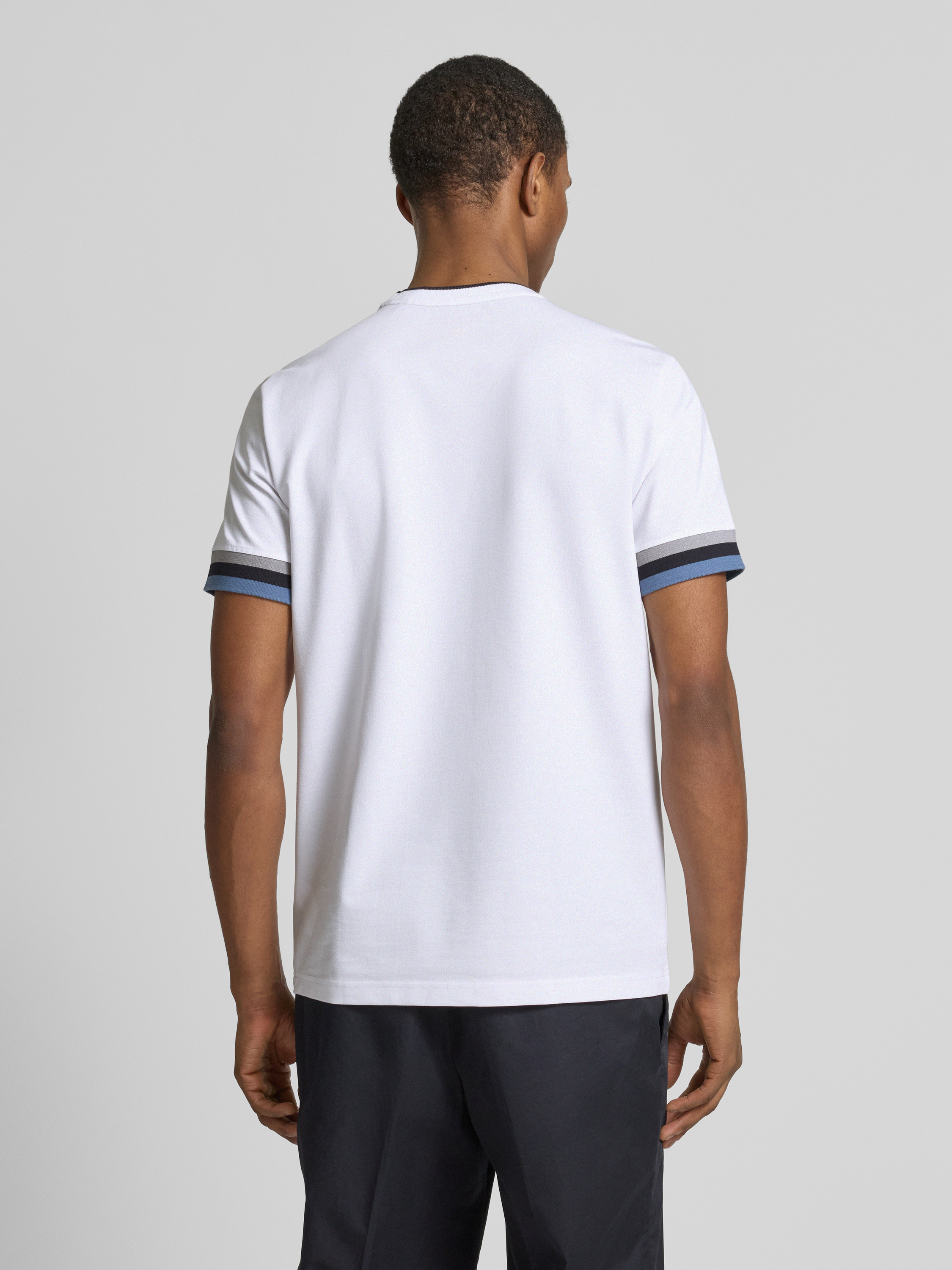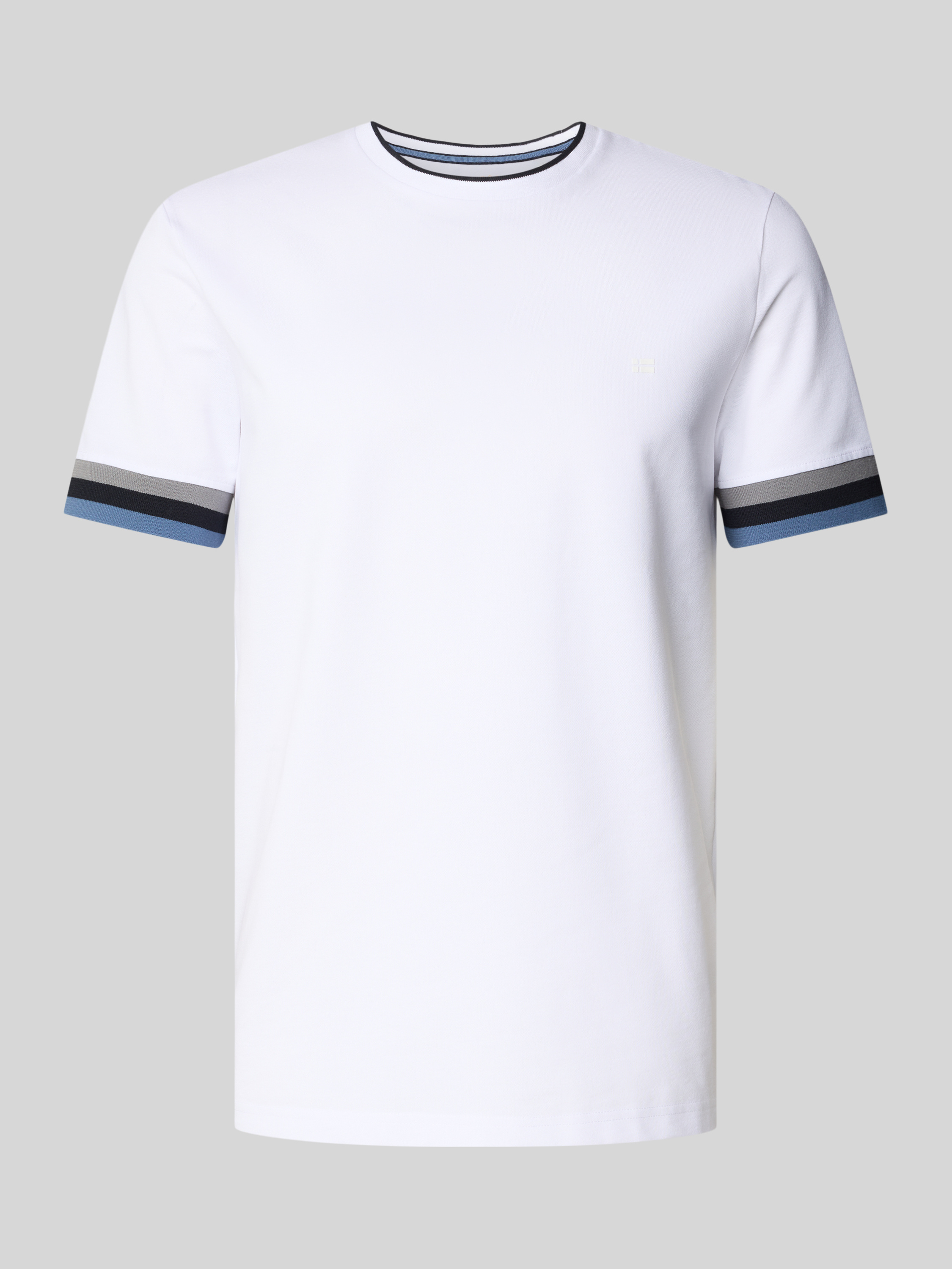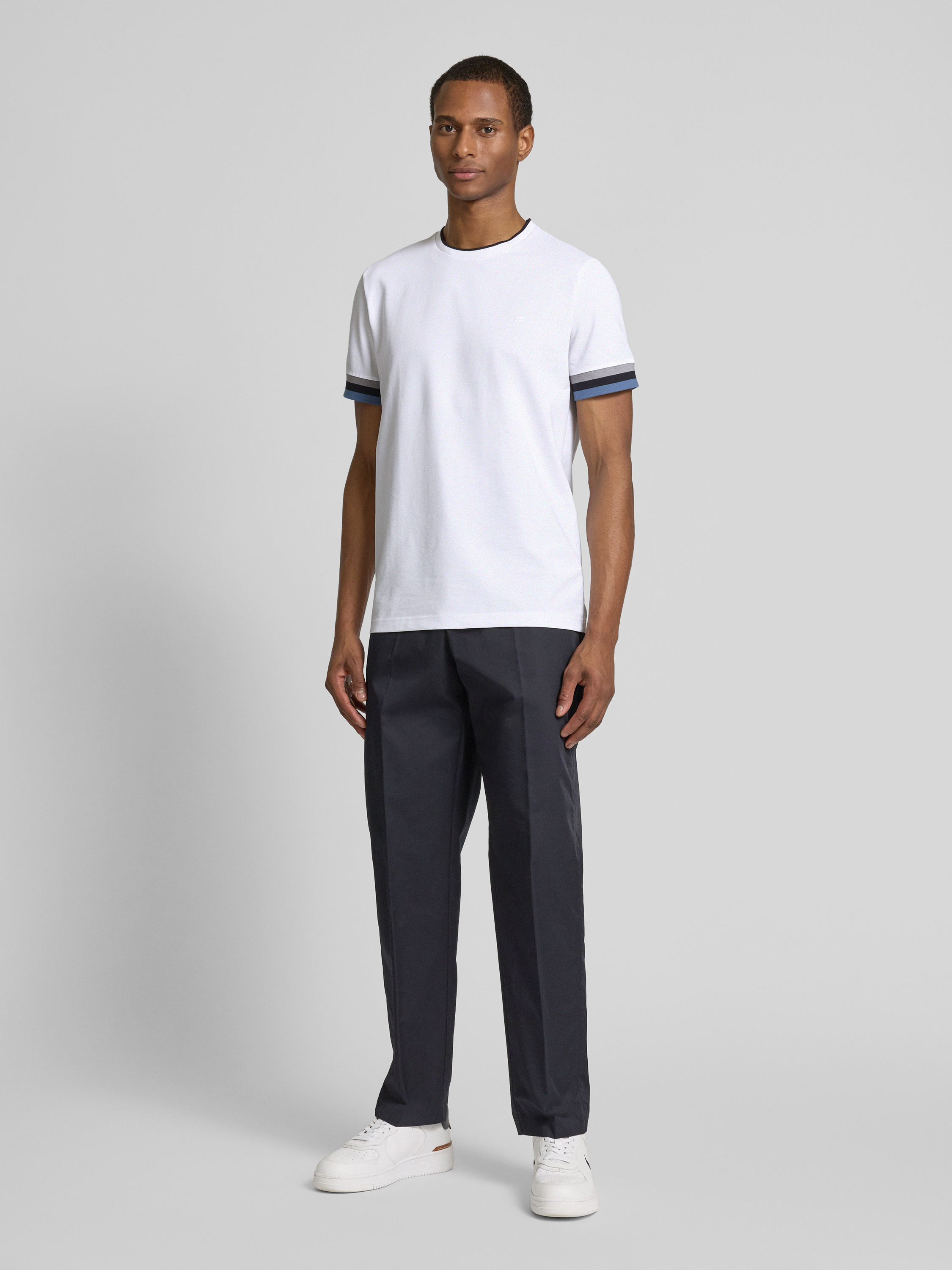 Das Christian Berg Men T-Shirt aus Baumwoll-Mix mit Stretch-Anteil bietet eine angenehme, gerade Passform. Der Rundhalsausschnitt verleiht dem Oberteil einen klassischen Look, während der dezente Label-Print einen modernen Akzent setzt. Ideal für vielseitige Alltagskombinationen geeignet.