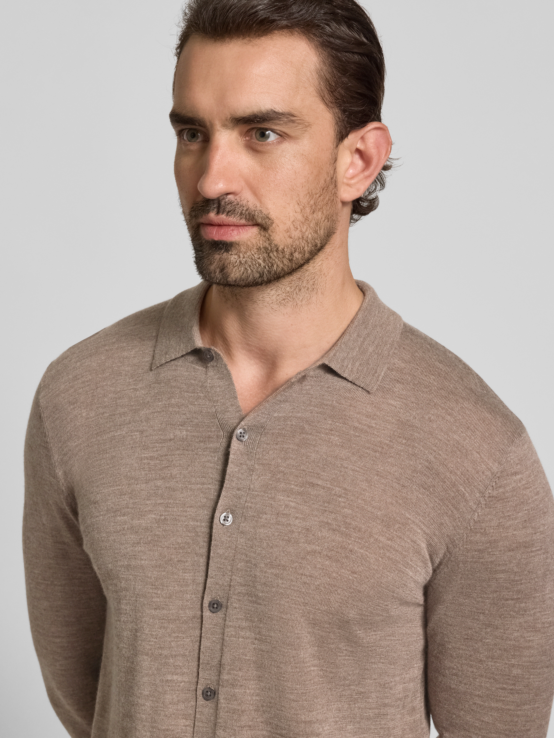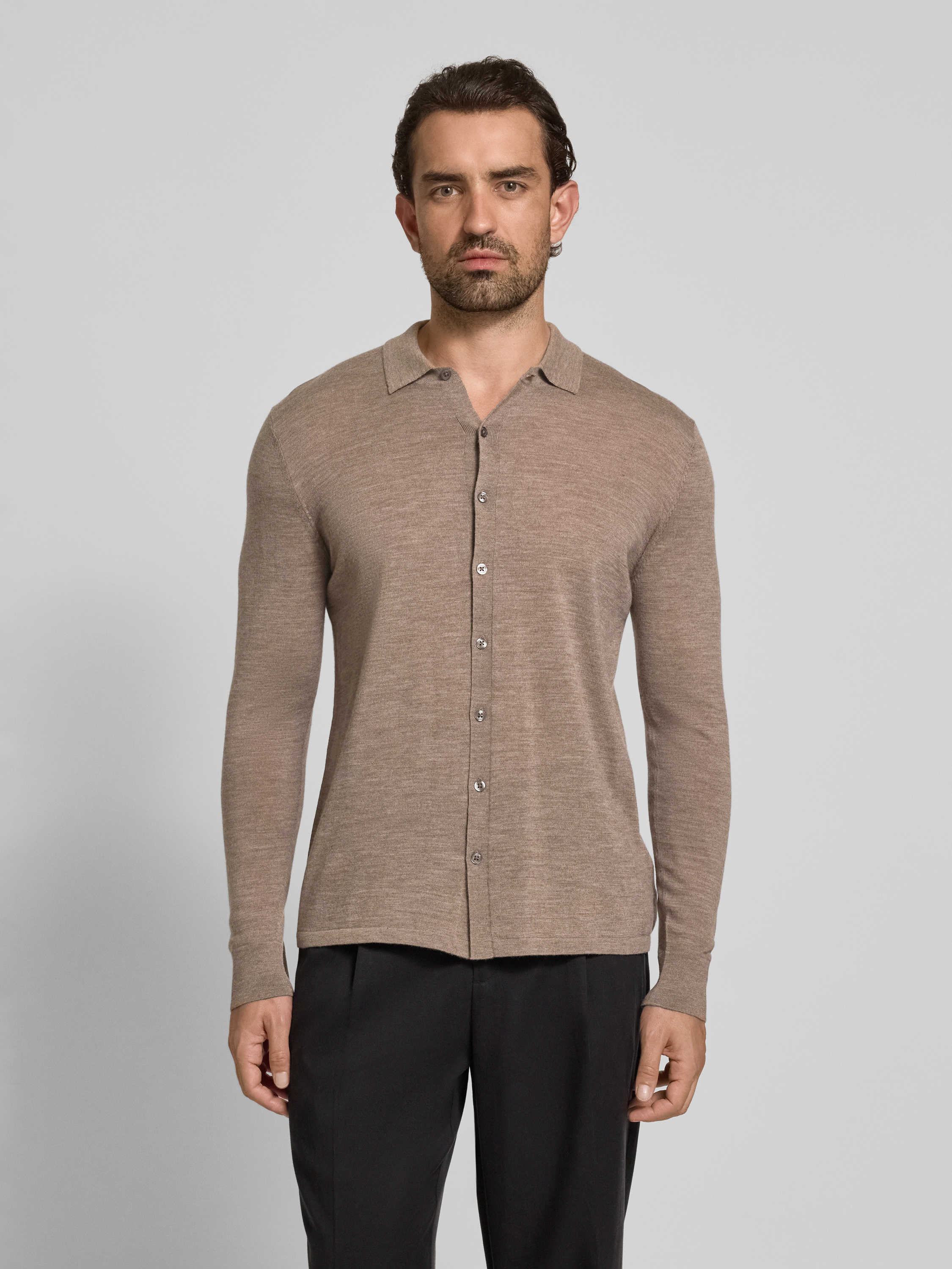 Christian Berg MenWolljacke mit Kentkragen in taupe melange
