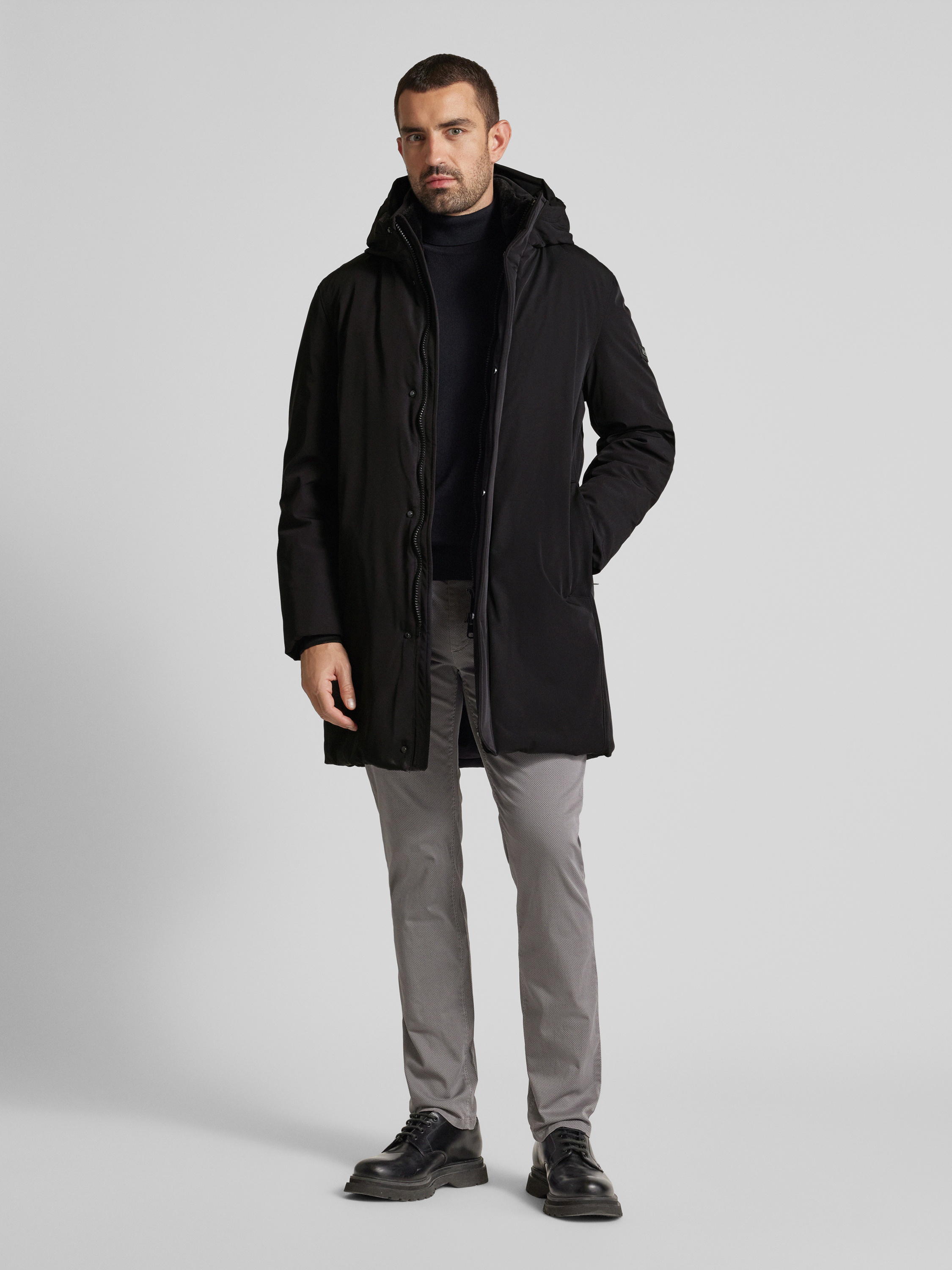 Der Herrenparka von Cinque, Modell Dawson, zeigt sich im Regular Fit und setzt auf einen modernen Material-Mix mit Stretch-Anteil. Dank wasserabweisender Oberfläche bleibt man bei wechselhaftem Wetter flexibel. Die Kapuze und praktische Taschen unterstützen einen entspannten Alltag mit zuverlässiger Funktionalität.