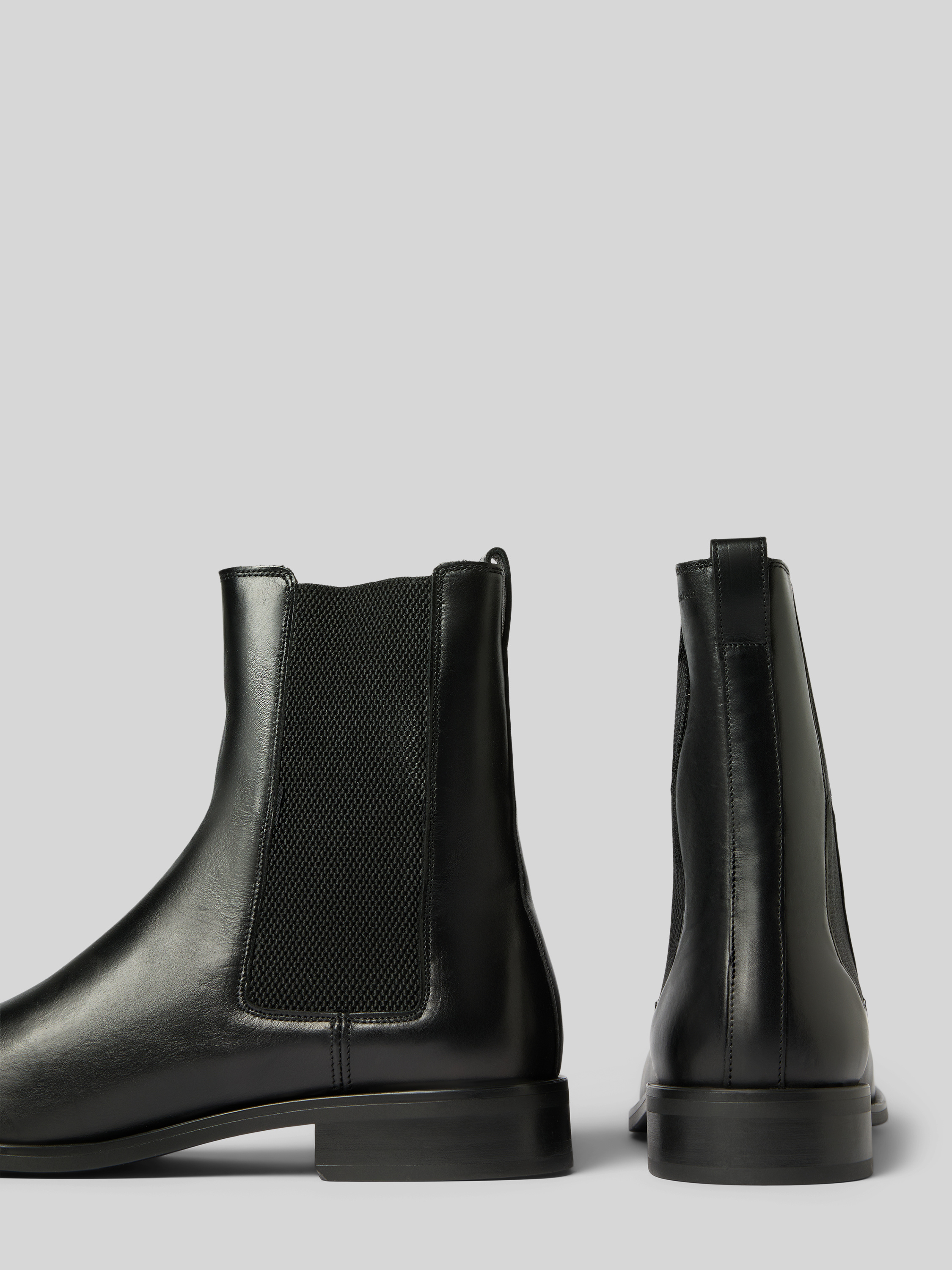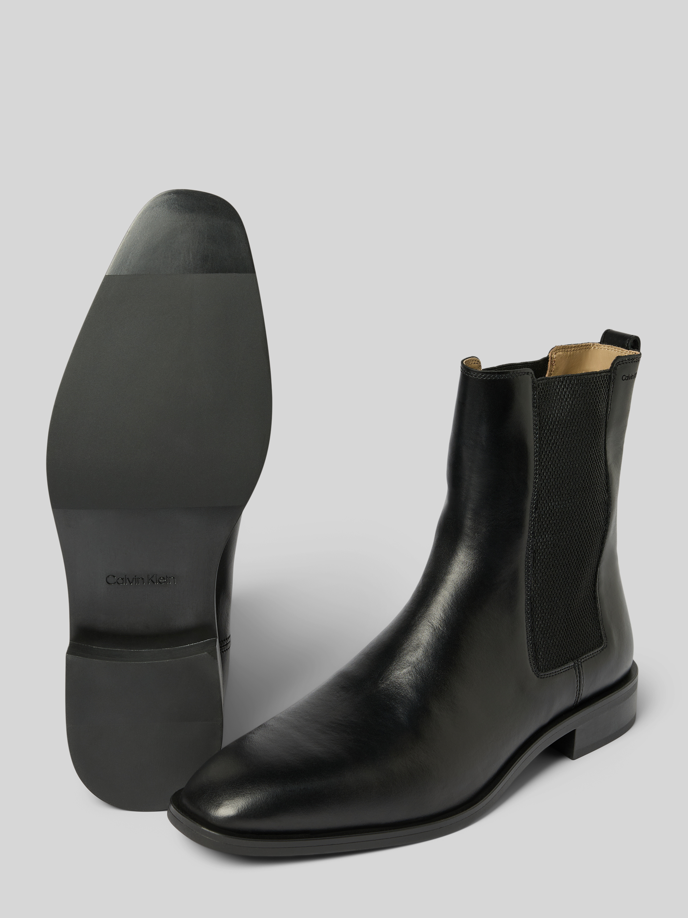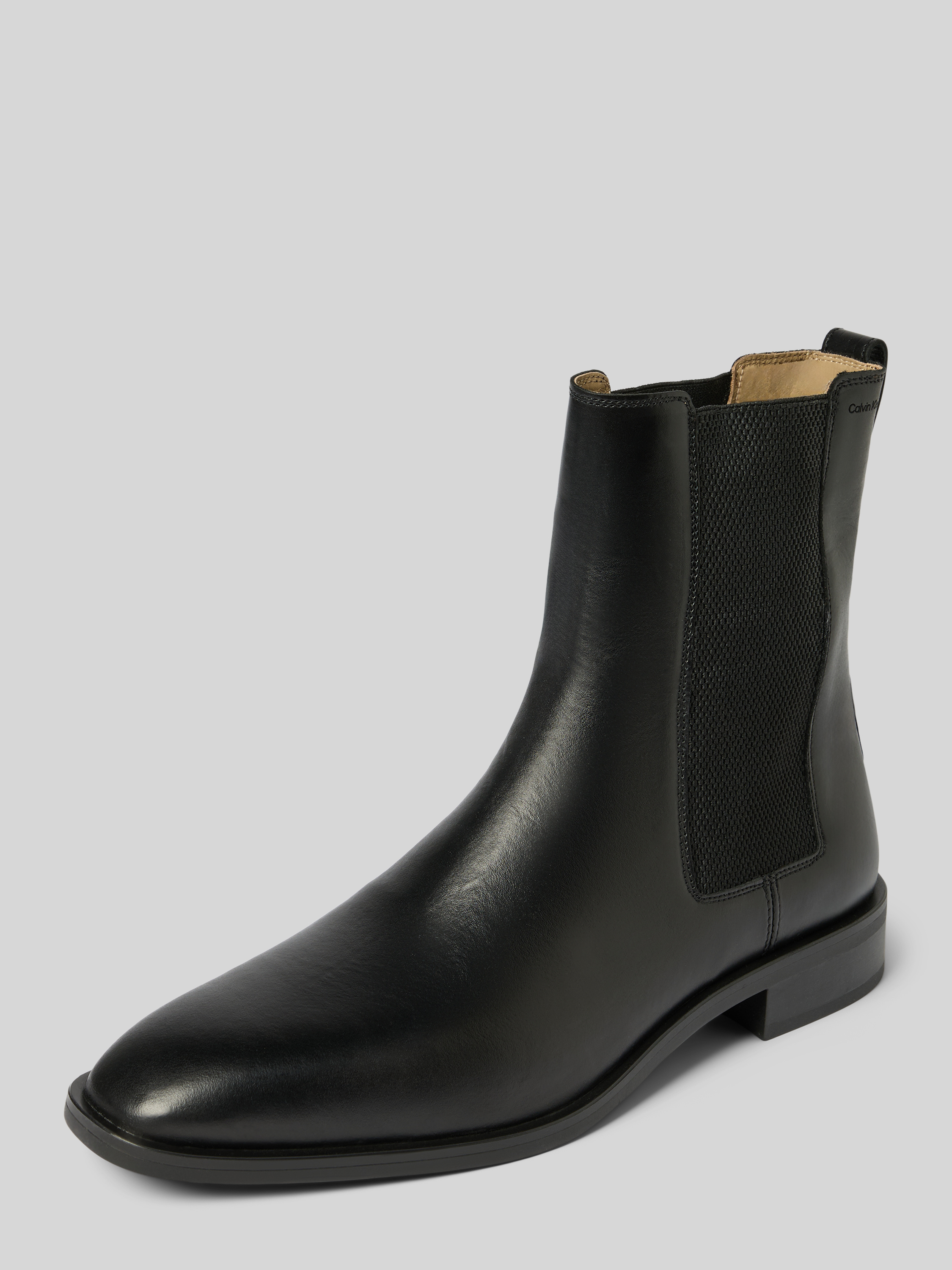 Der Herren Chelsea Boot von CK Calvin Klein zeigt sich mit abgerundeter Spitze und markantem Blockabsatz. Durch den elastischen Einsatz schmiegt sich der Schuh bequem an und ermöglicht ein unkompliziertes An- und Ausziehen. Klassische Linienführung sorgt für vielseitige Kombinationsmöglichkeiten im Alltag.
