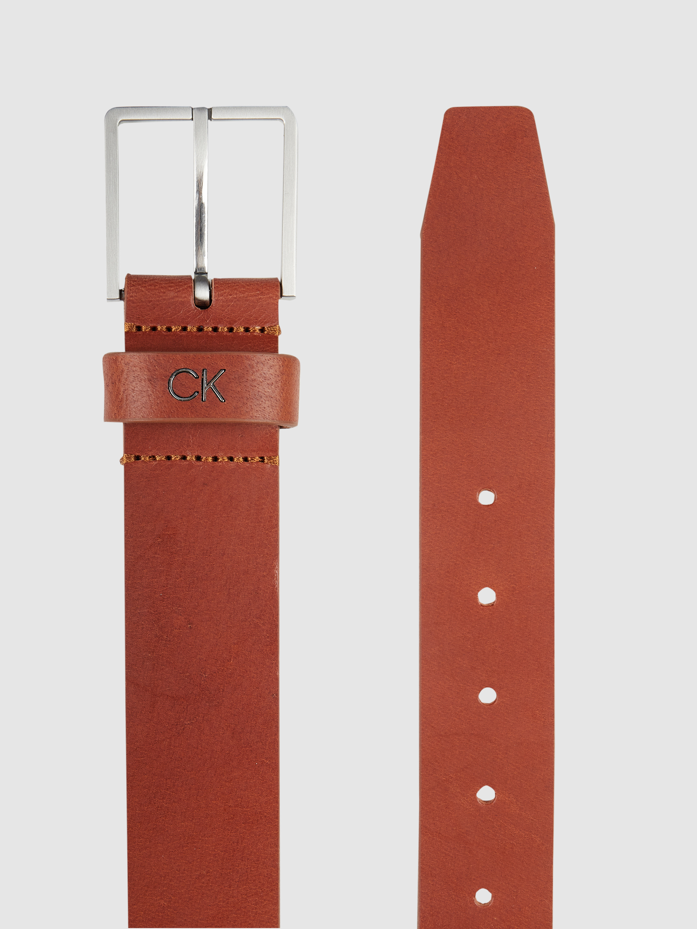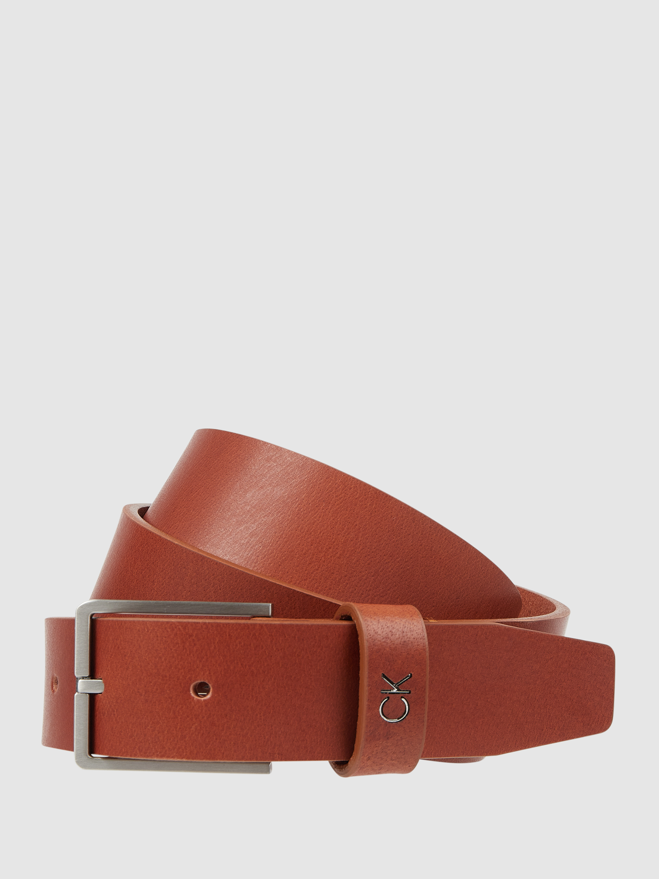 Der Gürtel von CK Calvin Klein ist aus echtem Büffelleder gefertigt. Er kommt mit Dornschließe, fixierter Gürtelschlaufe und Logo.