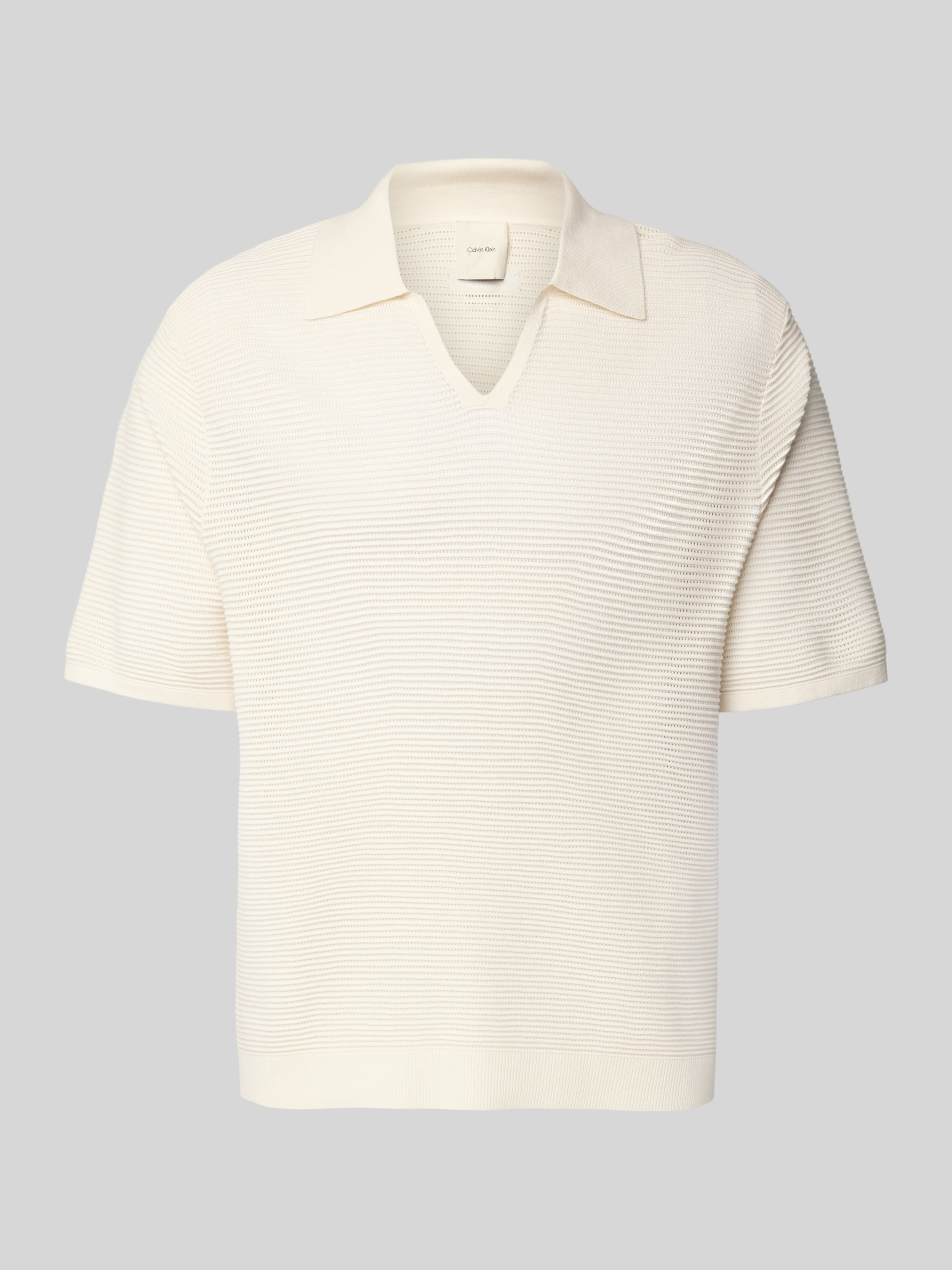CK Calvin KleinRegular Fit Poloshirt mit V-Ausschnitt in offwhite