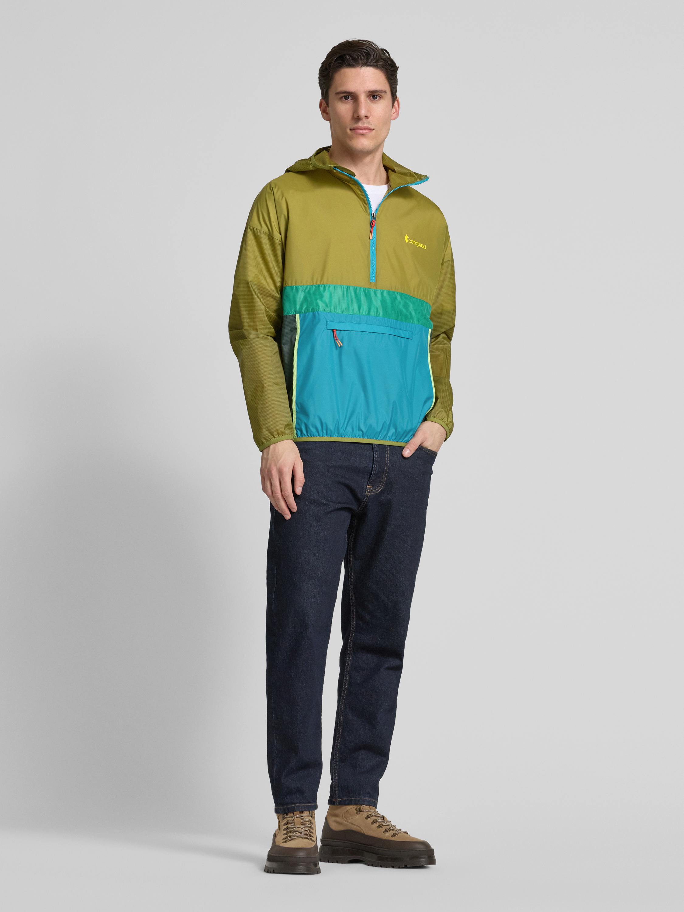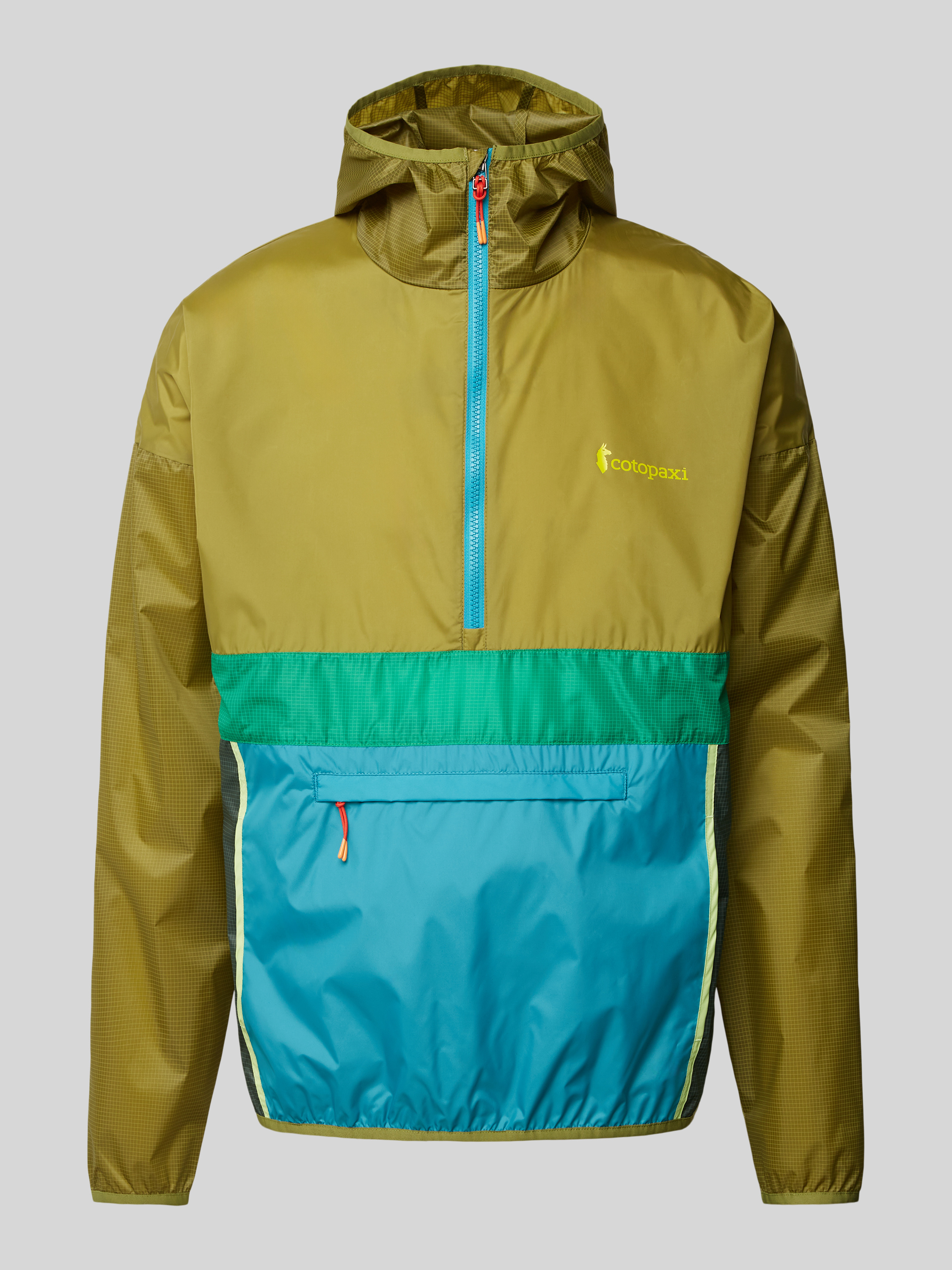 Der Windbreaker von Cotopaxi, Modell 'Teca', ist mit einem lockeren Schnitt ideal für wechselhaftes Wetter. Durch die Kapuze und die Reißverschlusstasche wird praktischer Schutz und Komfort geboten. Der Label-Print verleiht dem Kleidungsstück eine dezente, modische Note.