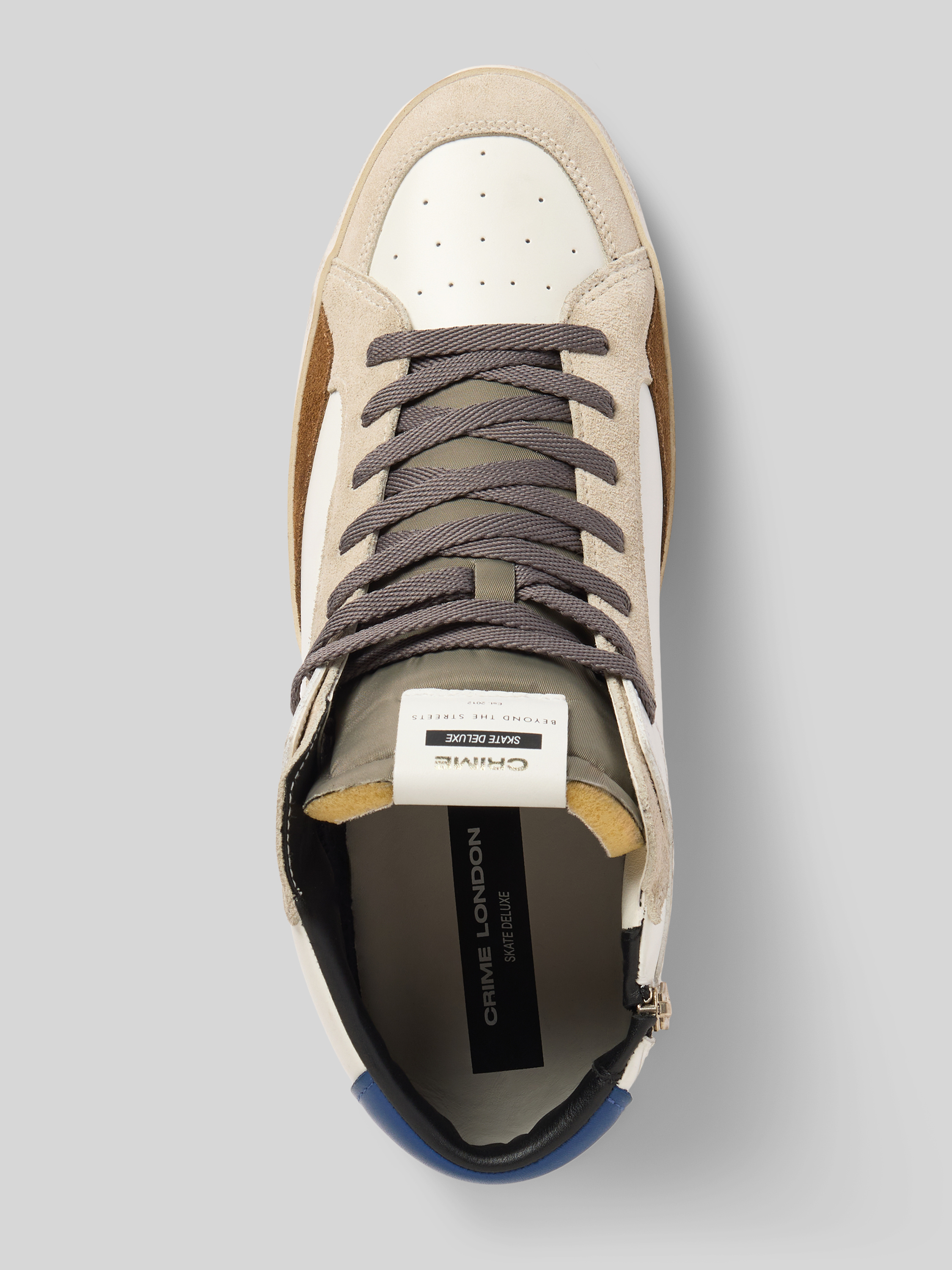 Der Herren Sneaker von Crime London zeigt sich in einer sportlichen High-Top-Optik und wird aus echtem Leder gefertigt. Durch die abgerundete Spitze und die klassische Schnürung entsteht ein angenehmes Tragegefühl, das sich vielseitig kombinieren lässt. Ein dezentes Label-Detail setzt einen unaufdringlichen Akzent.