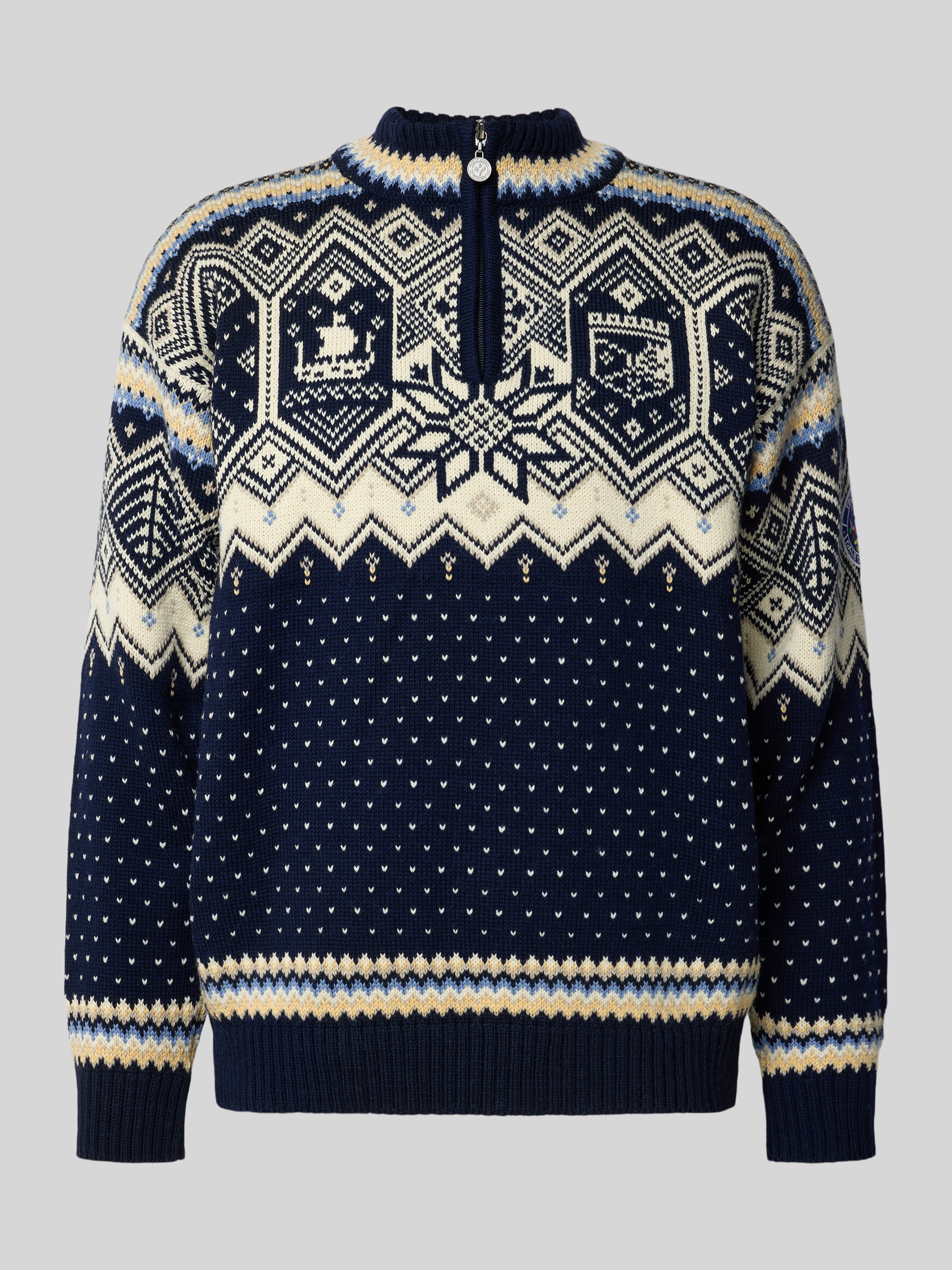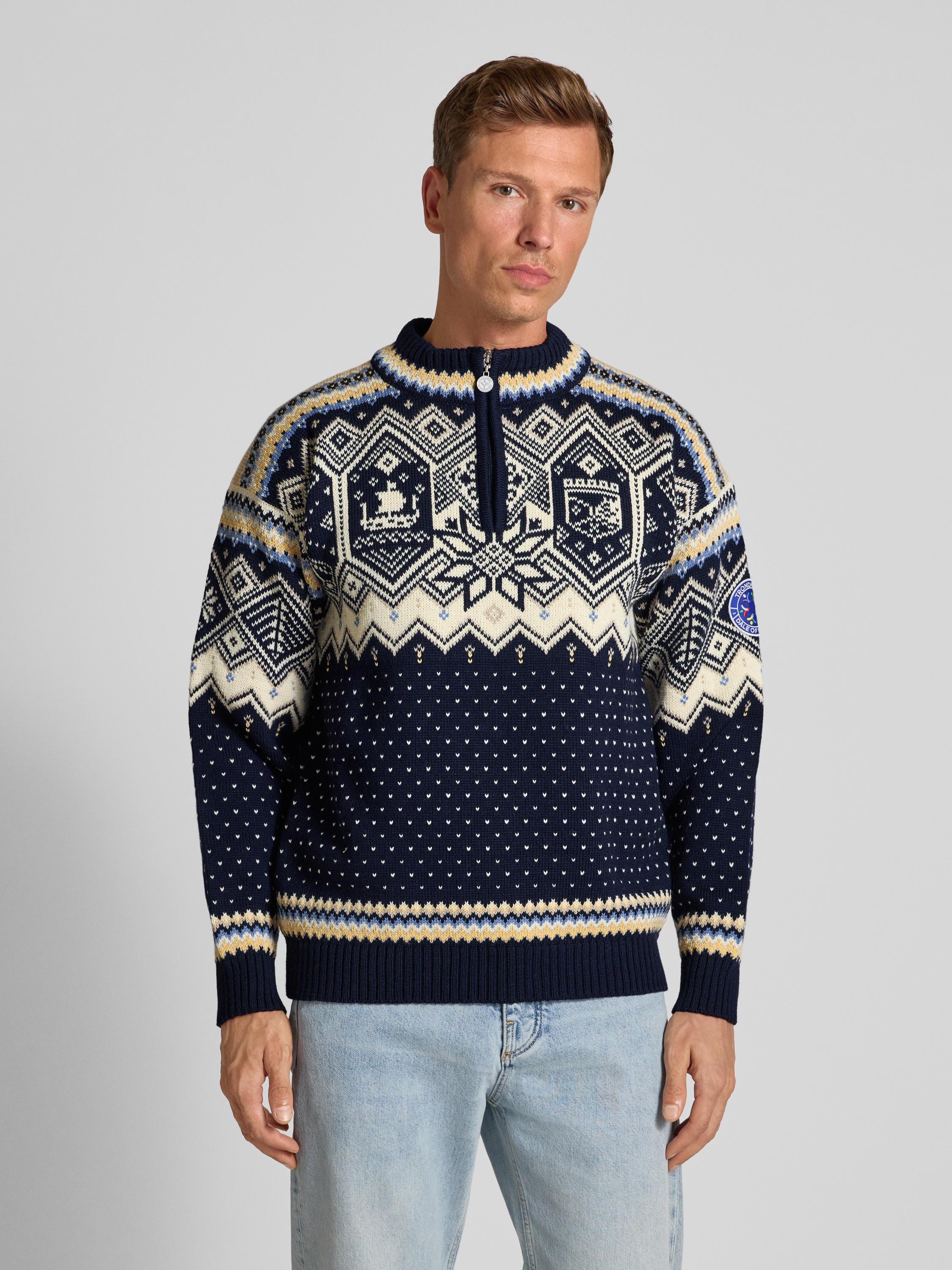 Norwegerpullover aus Wolle mit Troyer-Kragen in marine