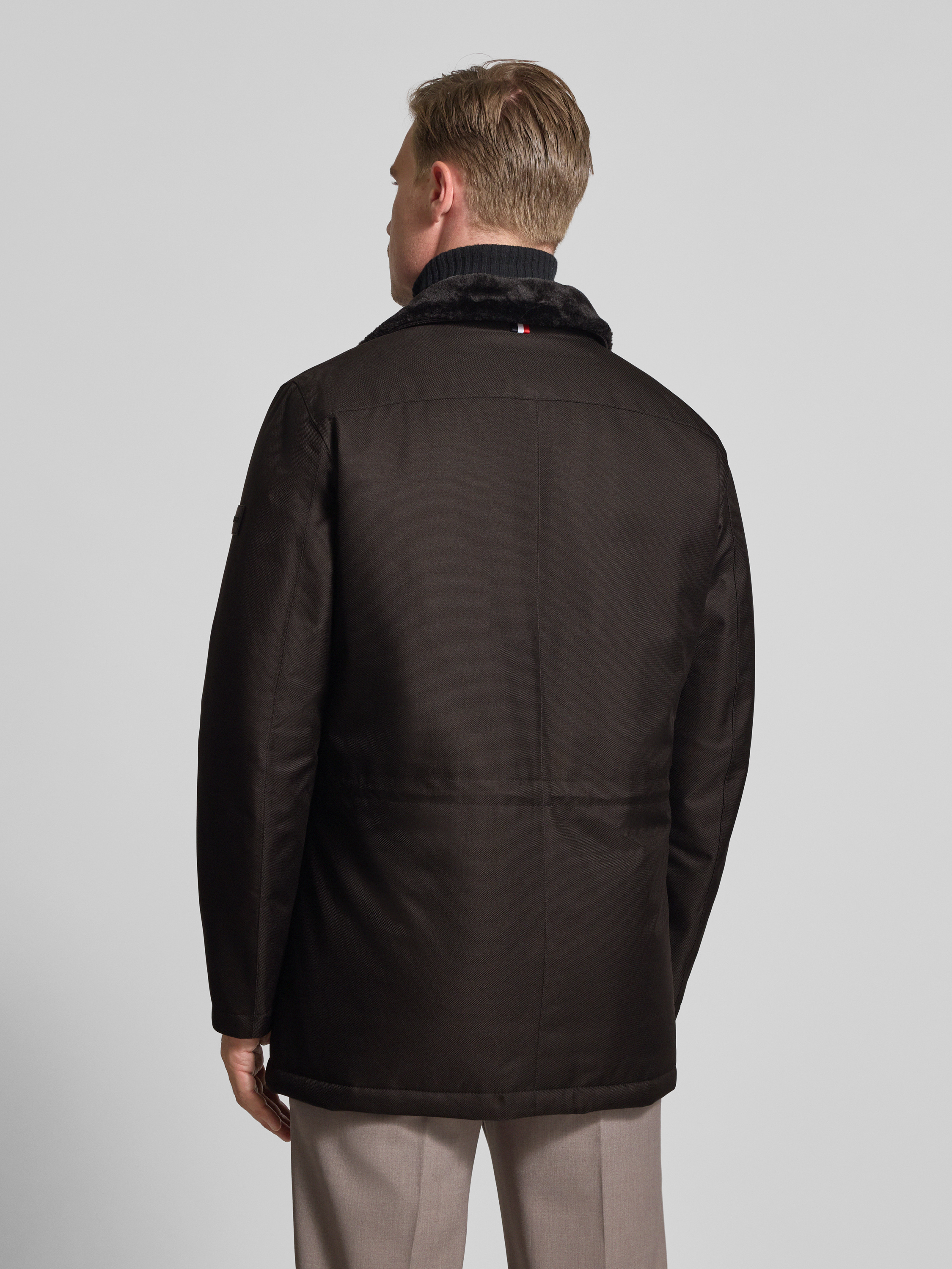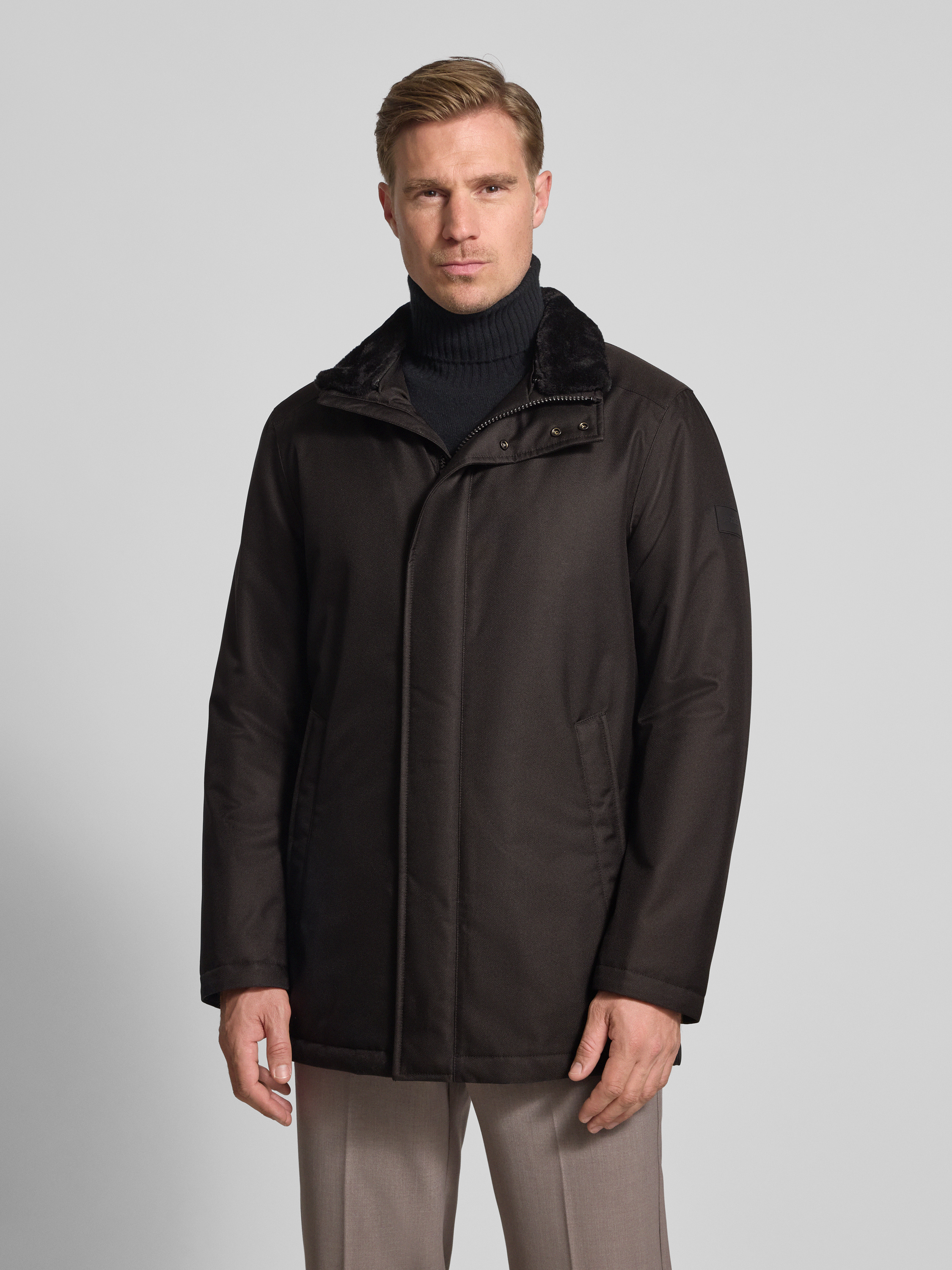 Der Herrenmantel von HECHTER PARIS zeigt sich in geradem Schnitt und mit Stehkragen, wodurch er schlicht und vielseitig wirkt. Dezente seitliche Eingrifftaschen fügen sich harmonisch ins Design ein. Durch die klassische Form lässt sich das Modell mühelos zu unterschiedlichen Outfits kombinieren.