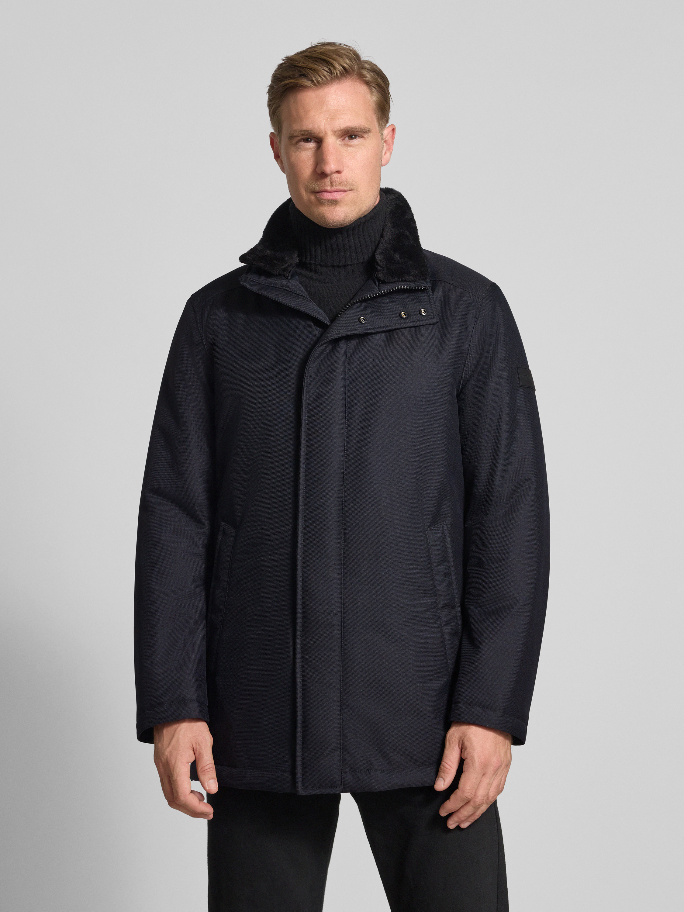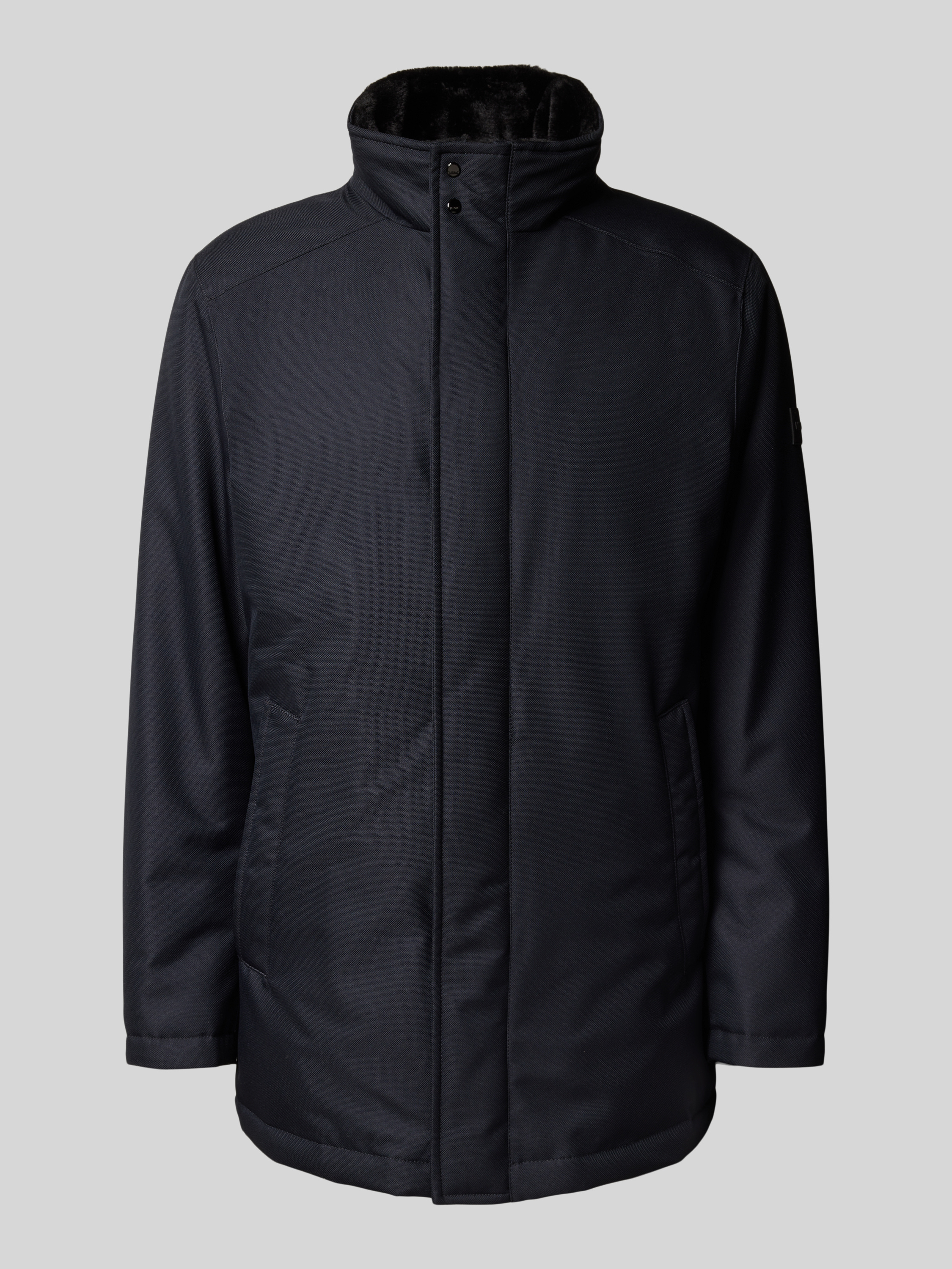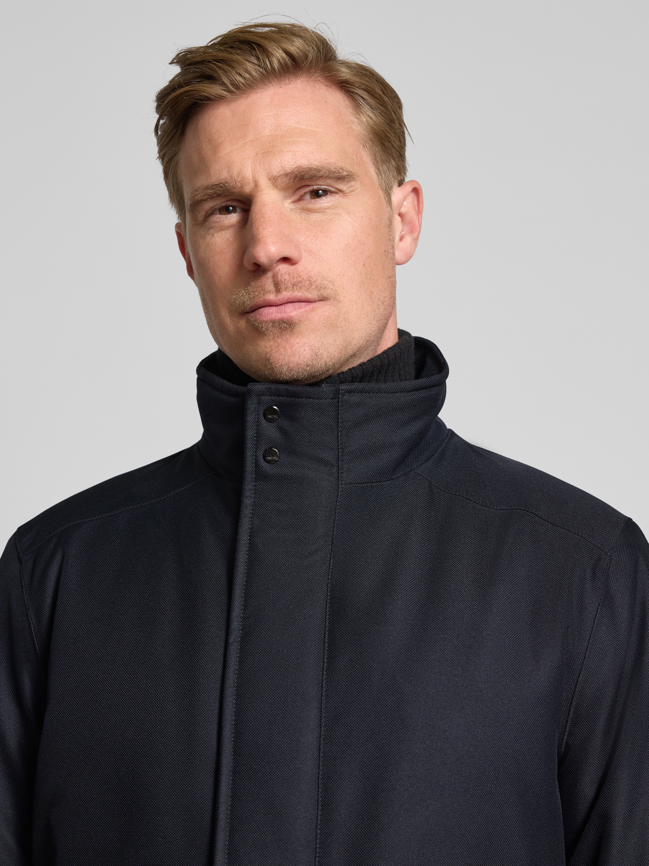 Der Herrenmantel von HECHTER PARIS zeigt sich in geradem Schnitt und mit Stehkragen, wodurch er schlicht und vielseitig wirkt. Dezente seitliche Eingrifftaschen fügen sich harmonisch ins Design ein. Durch die klassische Form lässt sich das Modell mühelos zu unterschiedlichen Outfits kombinieren.