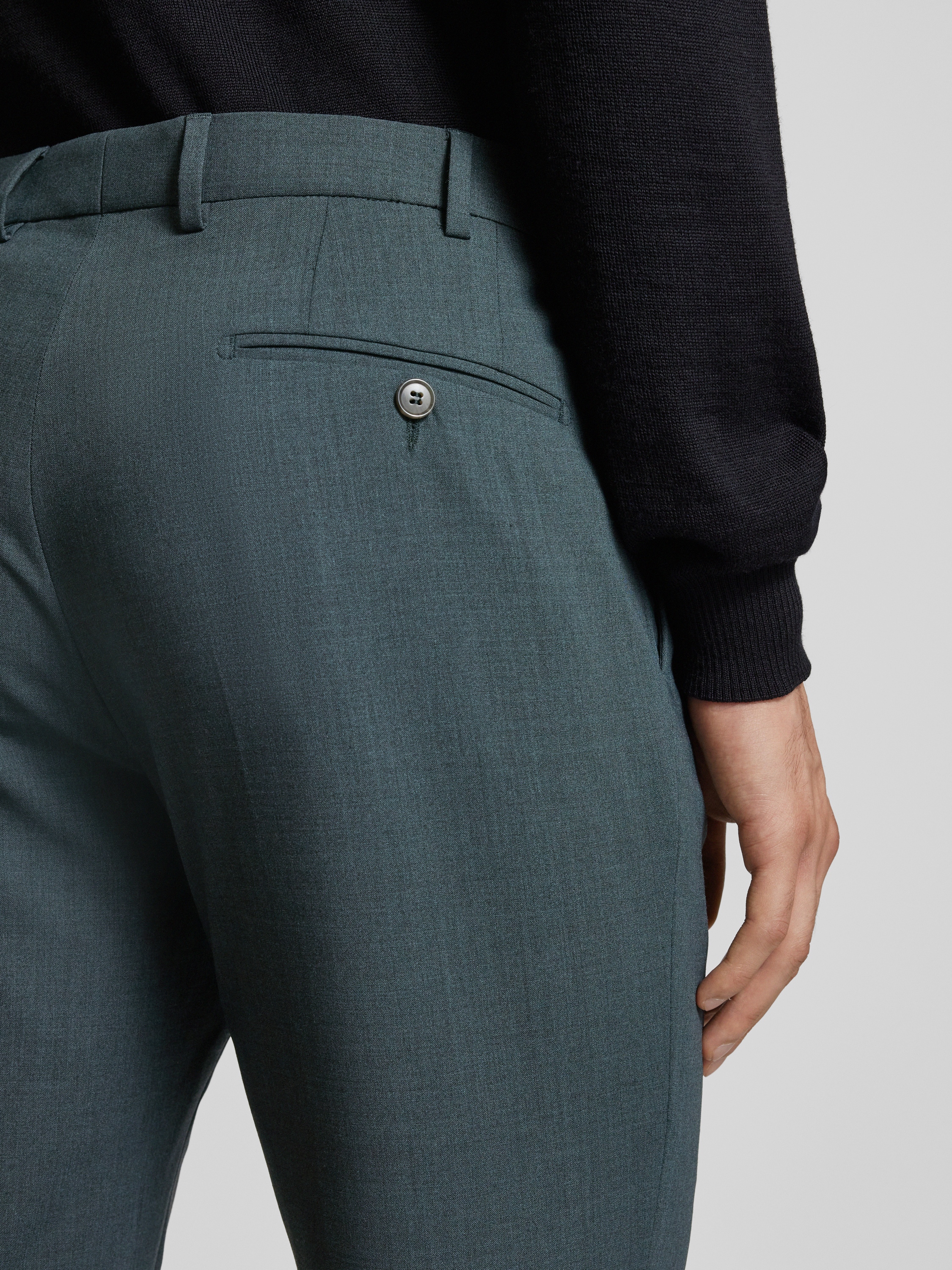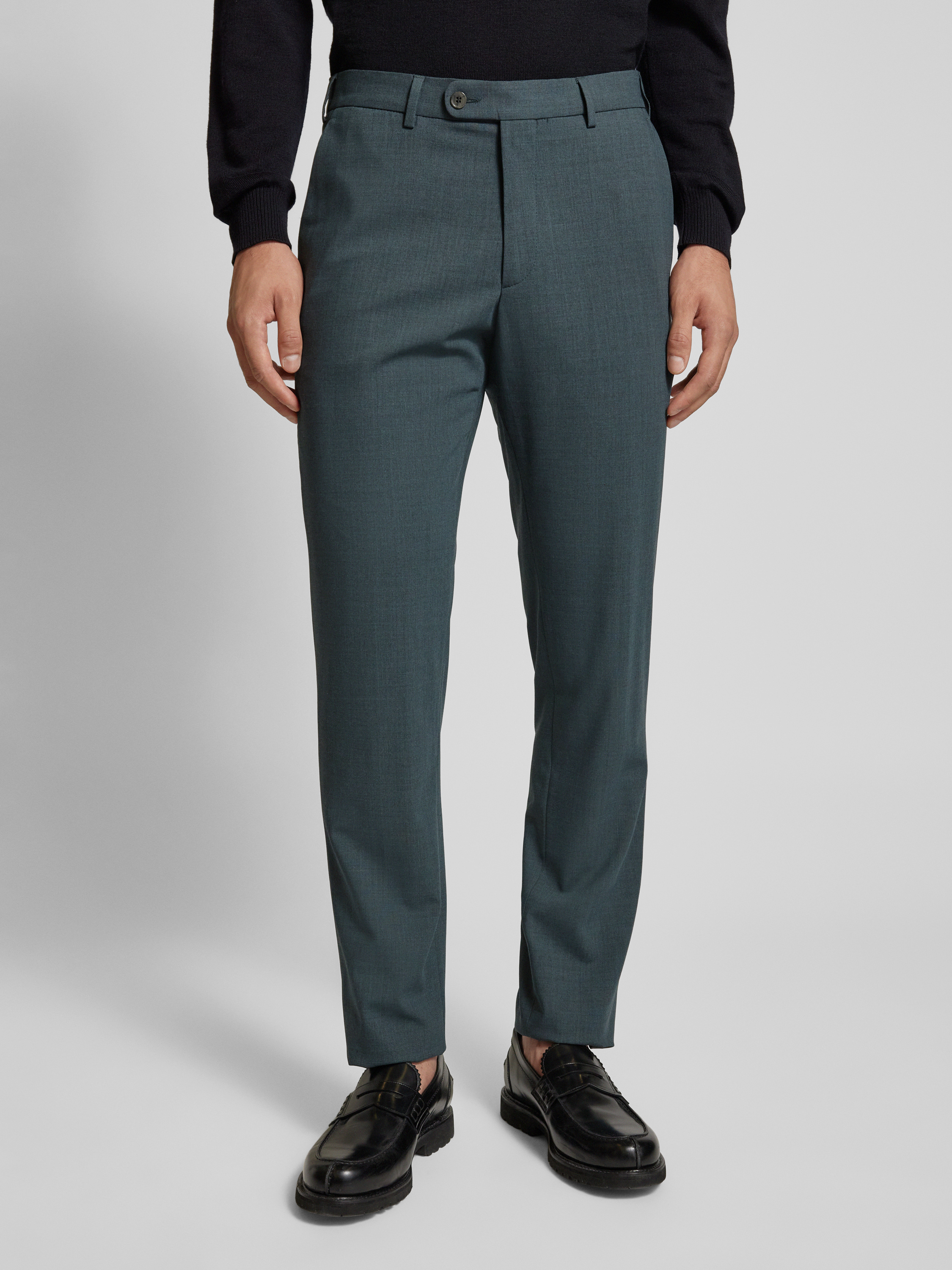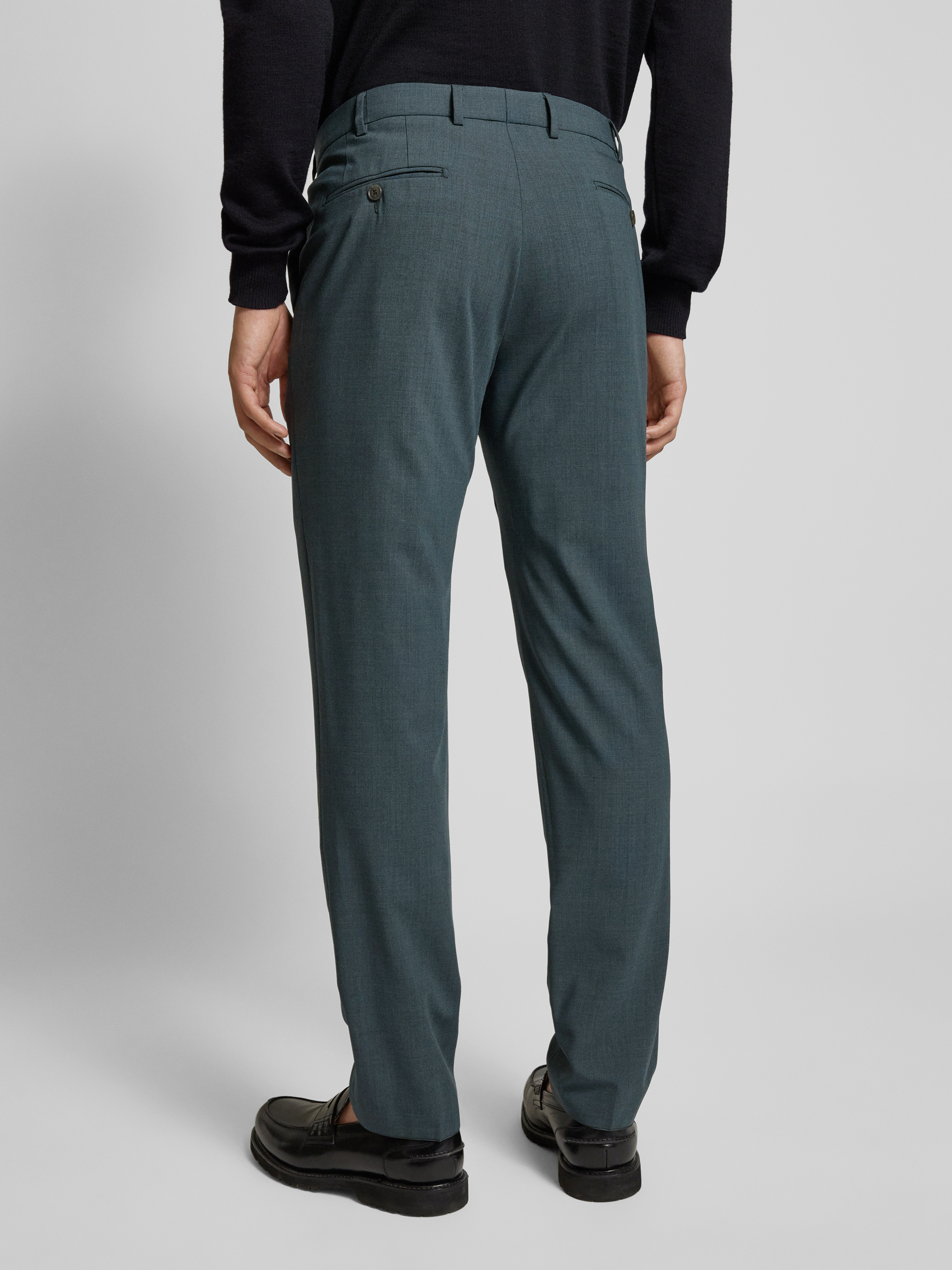 Die Tapered Fit Anzughose von DIGEL, Modell 'Per-V', verbindet elegantes Design mit einem komfortablen Material-Mix, der Schurwolle enthält. Durch die moderne Passform und die praktischen Gesäßtaschen eignet sich die Hose ideal für stilvolle, aber bequeme Bürooutfits. Gürtelschlaufen runden die Funktionalität harmonisch ab.