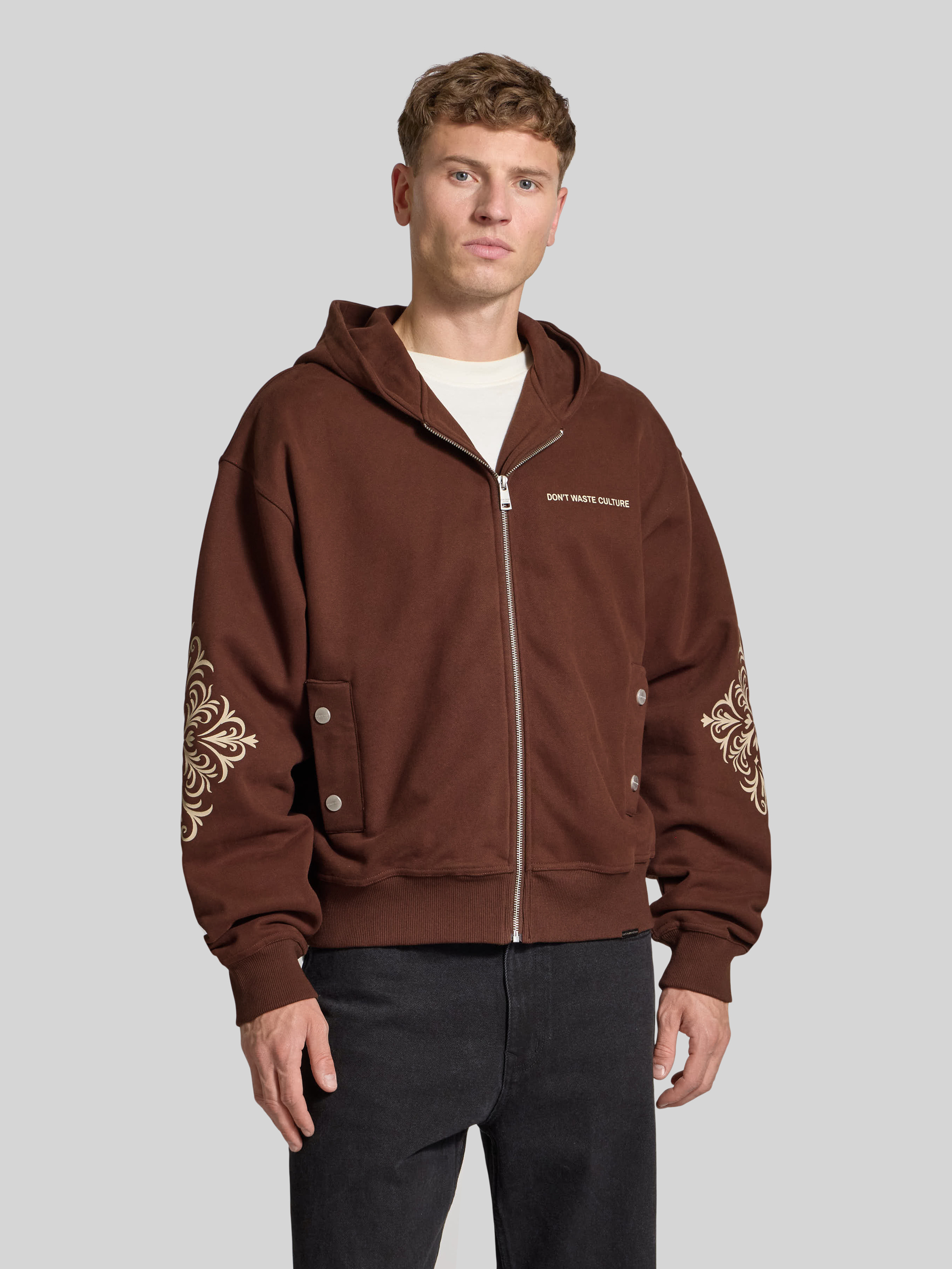 Don´t Waste CultureSweatjacke mit Label-Detail Modell 'Rhegan' in mittelbraun