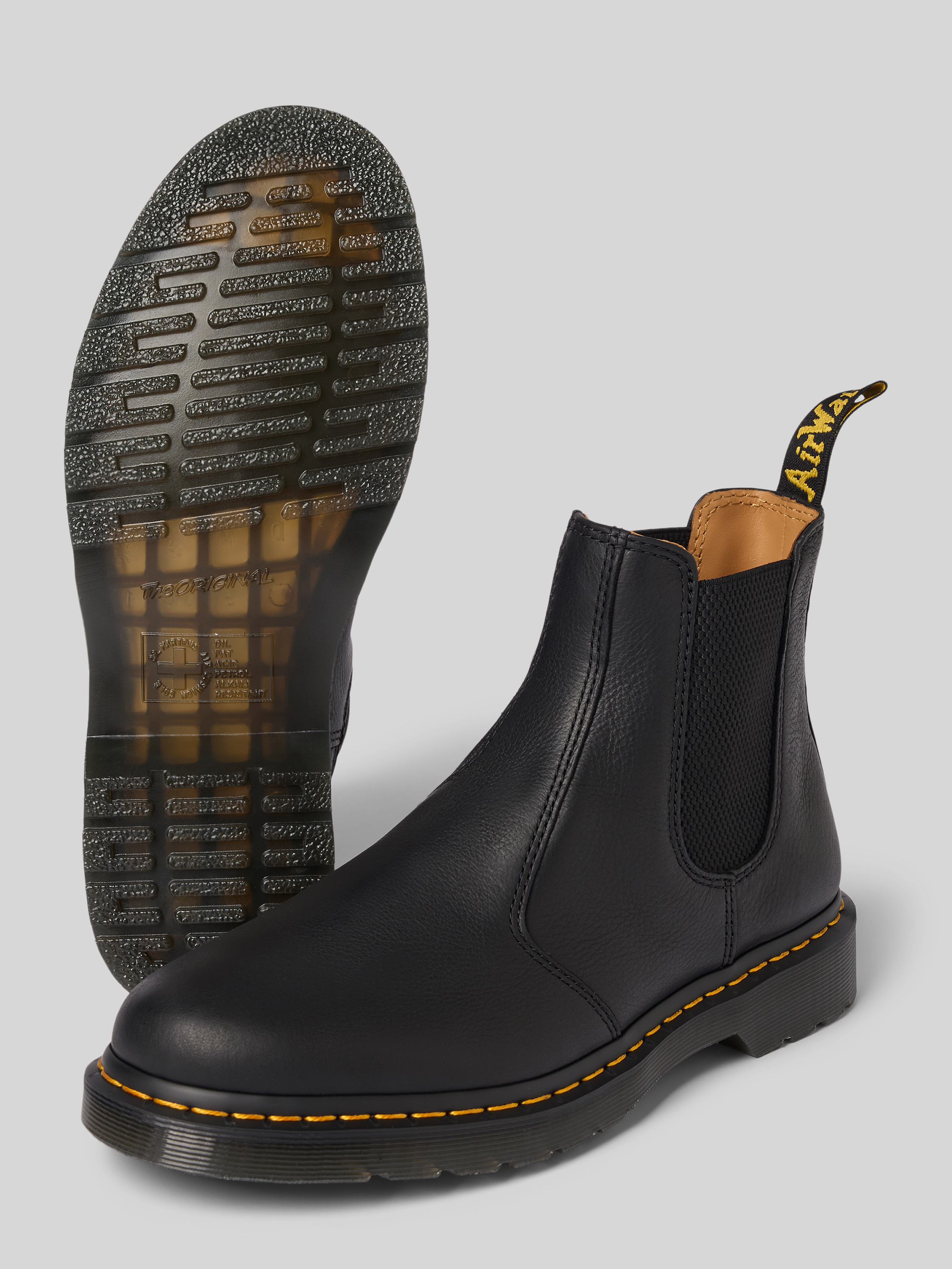 Die Herren Chelsea Boots von Dr. Martens aus Leder zeigen sich in abgerundeter Form mit markanter Ziernaht. Durch die elastischen Einsätze und die praktische Zugschlaufe gelingt das An- und Ausziehen unkompliziert. Die profilierte Sohle sorgt für einen angenehmen Stand im Alltag.
