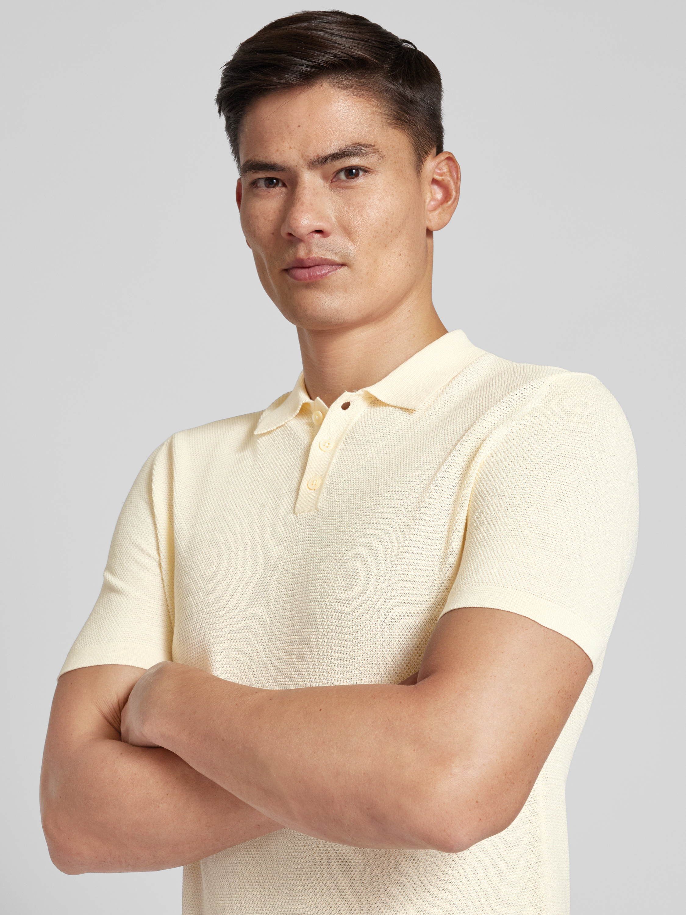 DrykornSlim Fit Poloshirt mit Strukturmuster Modell 'Triton' in offwhite