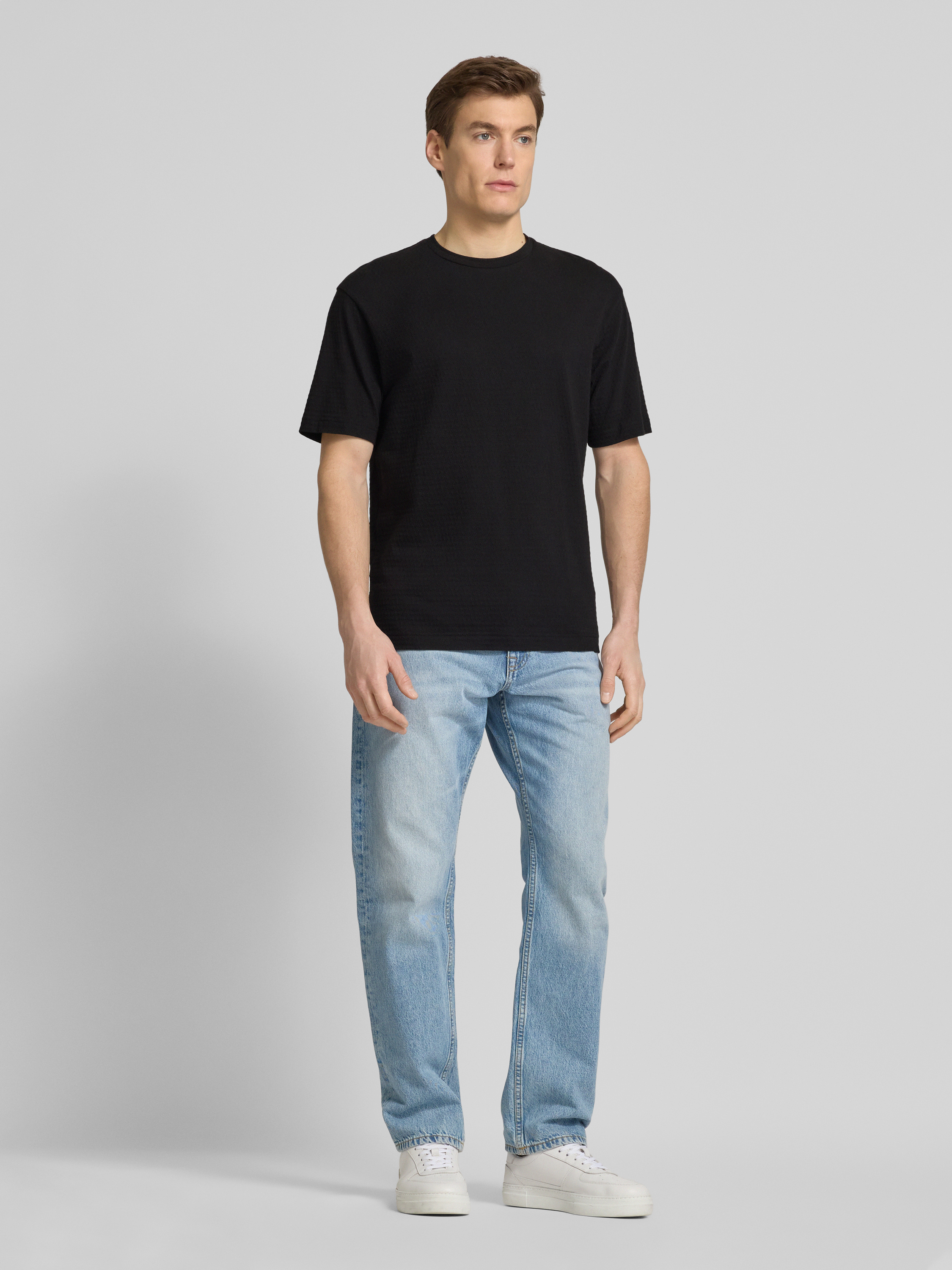 Das T-Shirt mit Strukturmuster von DRYKORN, Modell 'GILBERD', aus reiner Baumwolle, bietet mit seinem geraden Schnitt und dem Rundhalsausschnitt eine bequeme Passform. Die raffinierte Struktur verleiht dem klassischen Design eine interessante Note. Ein vielseitiges Kleidungsstück für zahlreiche Gelegenheiten.