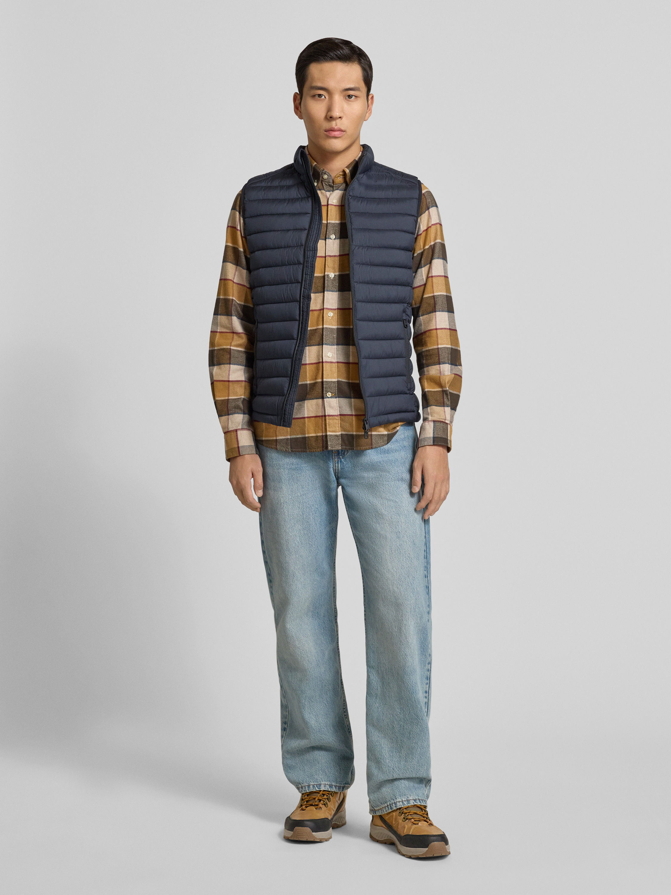 Die Herren Steppweste von ECOALF im Regular Fit passt sich durch ihren bequemen Schnitt angenehm an und bringt mit dem Stehkragen eine dezente sportliche Note ins Outfit. Das Modell 'CARDIFF' punktet mit praktischen Reißverschlusstaschen, die Kleinigkeiten sicher verstauen lassen. Durch das unkomplizierte Design eignet sich dieses Kleidungsstück vielseitig für Übergangszeiten.