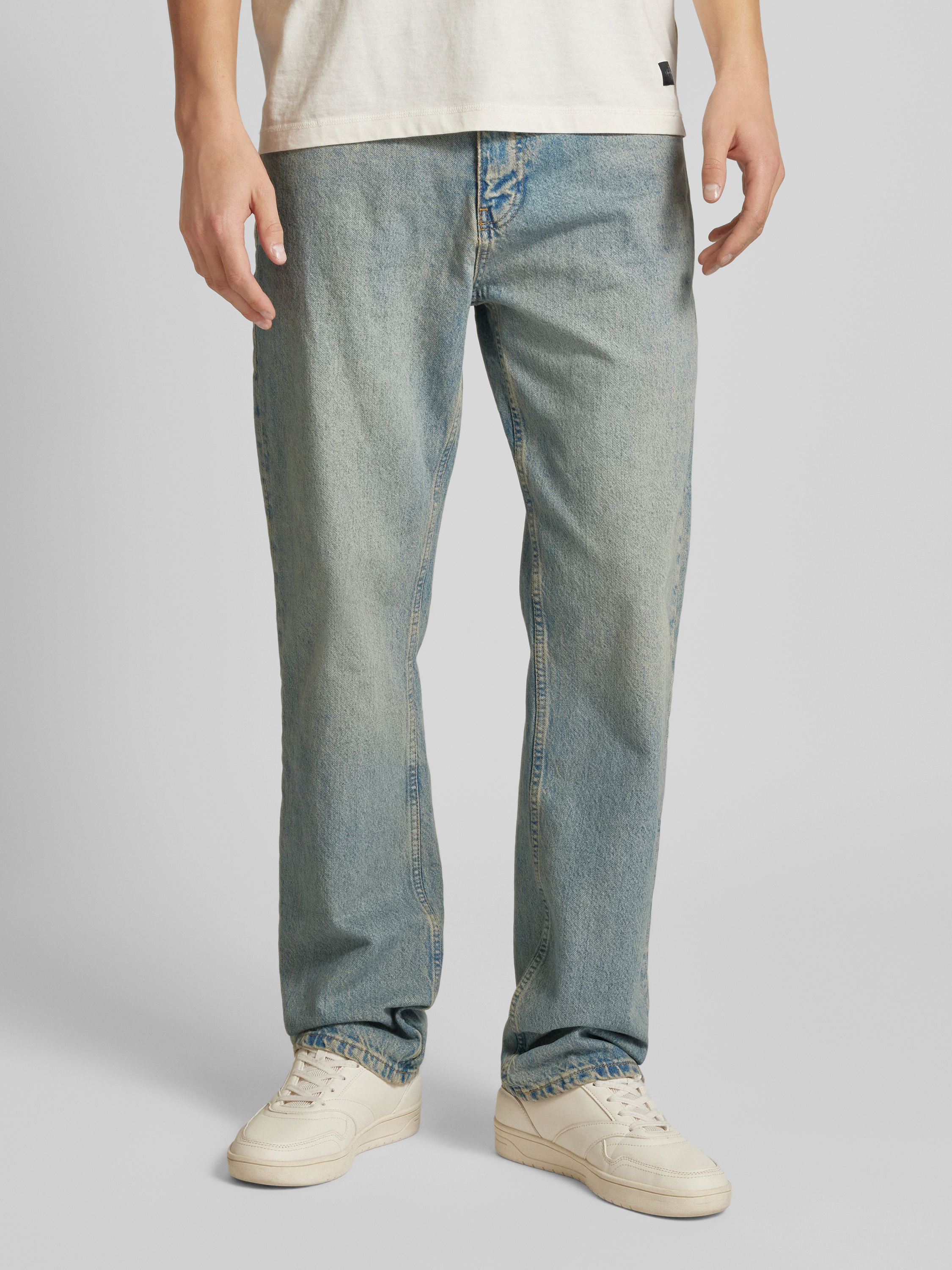 Die Straight Fit Jeans von EIGHTYFIVE vereint lässigen Stil und bequemen Tragekomfort. Hergestellt aus reiner Baumwolle, sorgt sie für ein angenehmes Hautgefühl, während der Used-Look einen modischen Akzent setzt. Ein Label-Detail rundet das Design dezent ab.