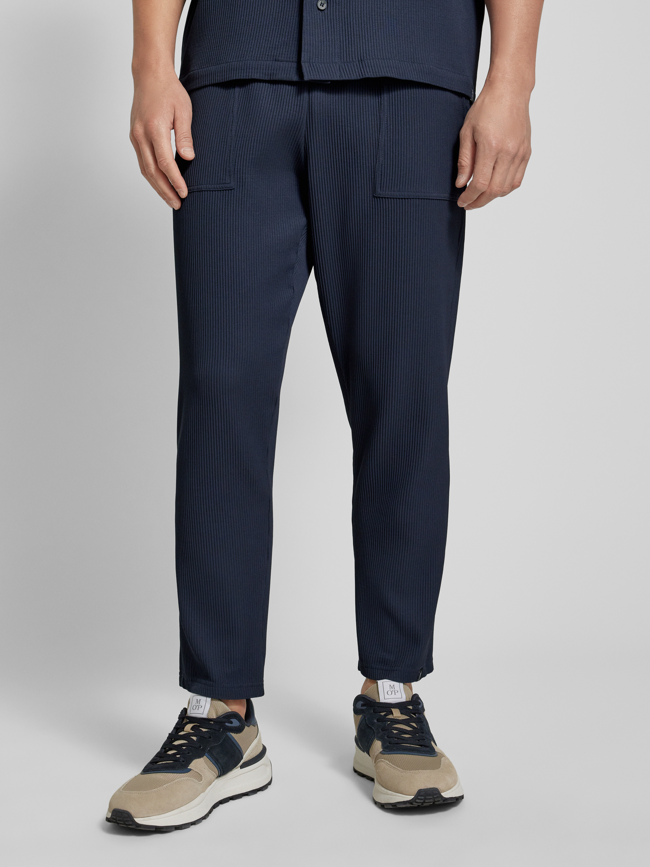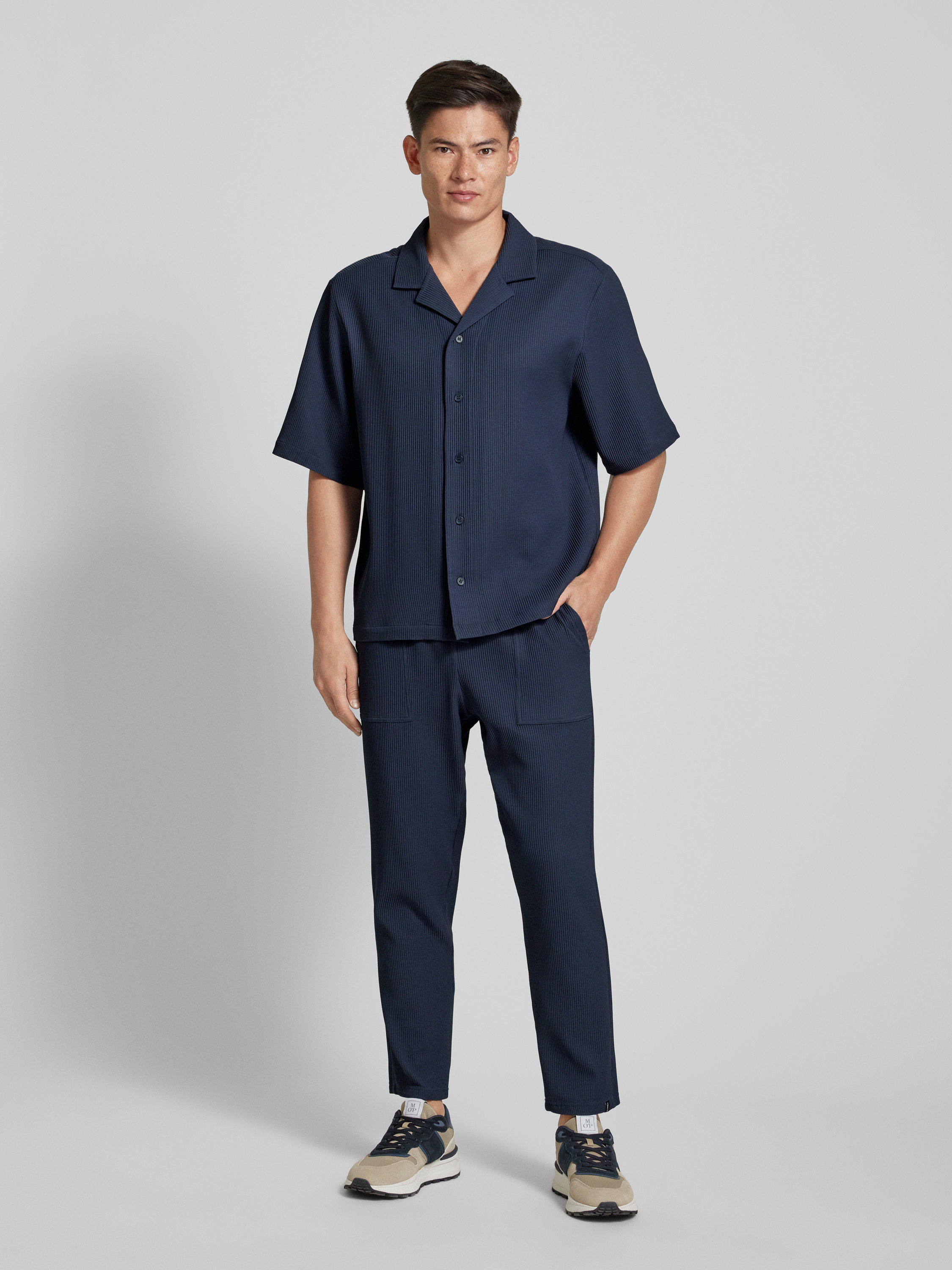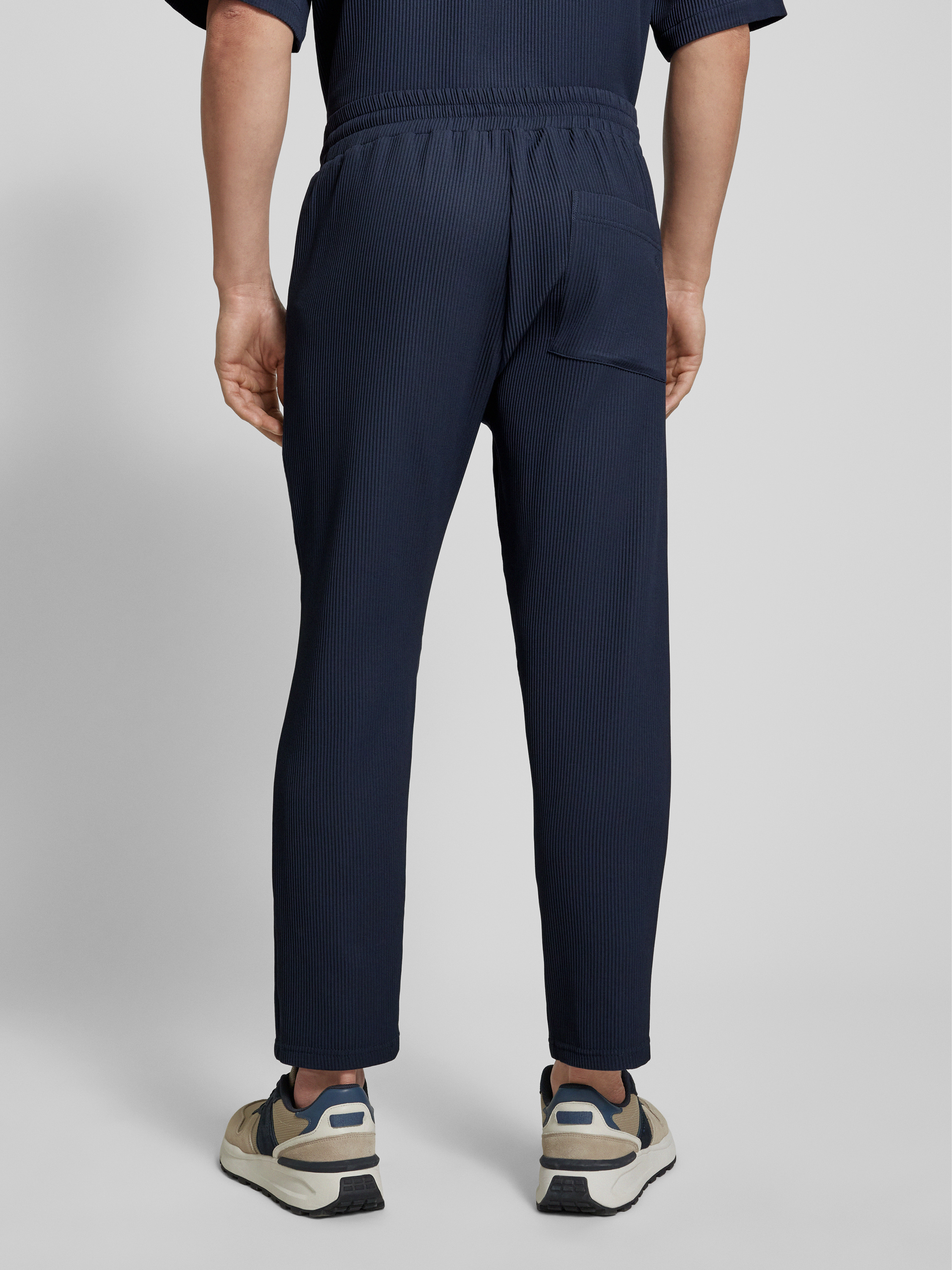 Die Herren Hose von Elias Rumelis zeichnet sich durch ihren Material-Mix mit Viskose-Anteil aus, der ein angenehmes Tragegefühl vermittelt. Der Regular Fit und die Plisseefalten sorgen für eine moderne Silhouette, während seitliche Eingrifftaschen praktischen Komfort bieten. Ein Tunnelzug ermöglicht eine flexible Passform.