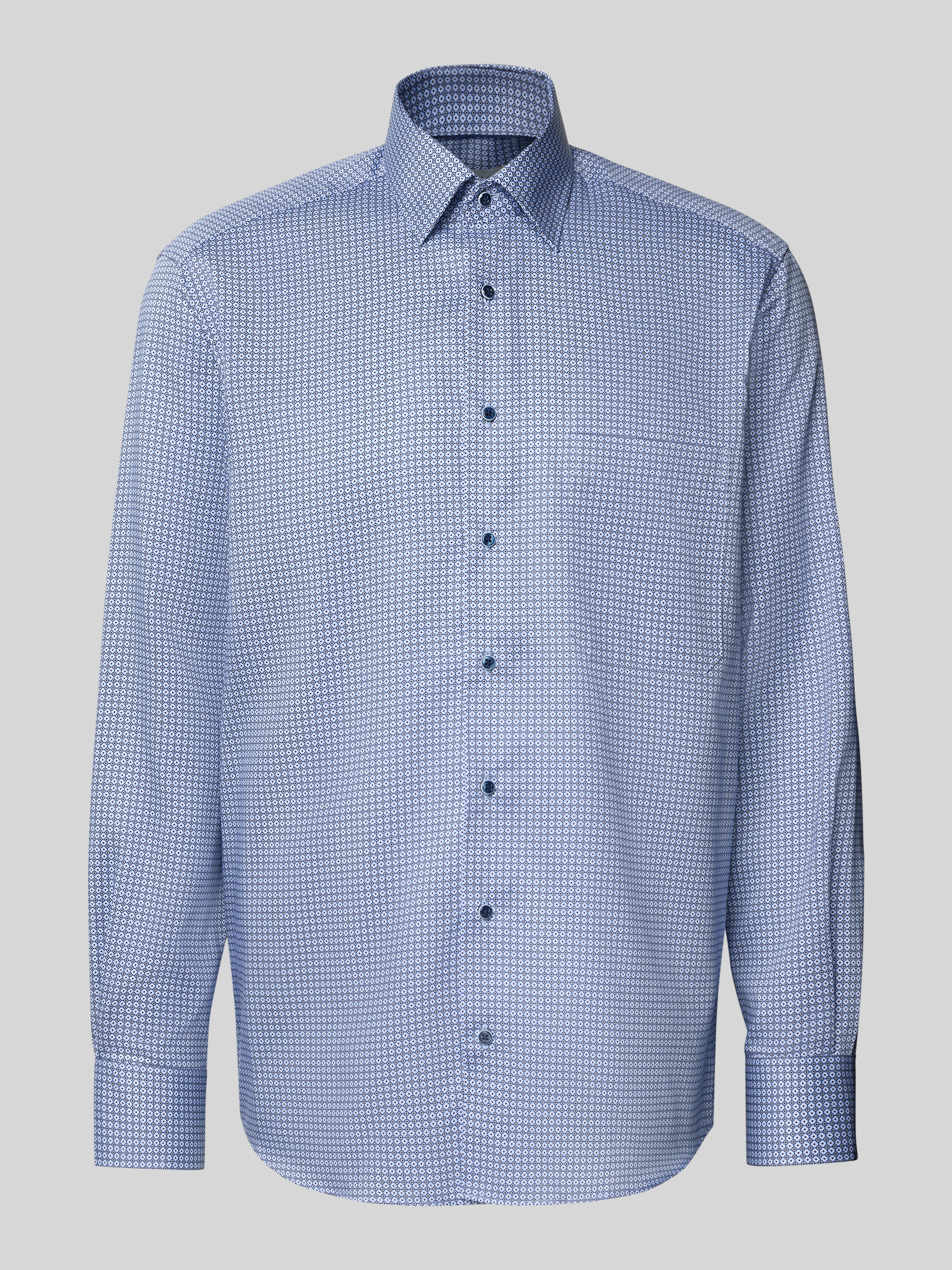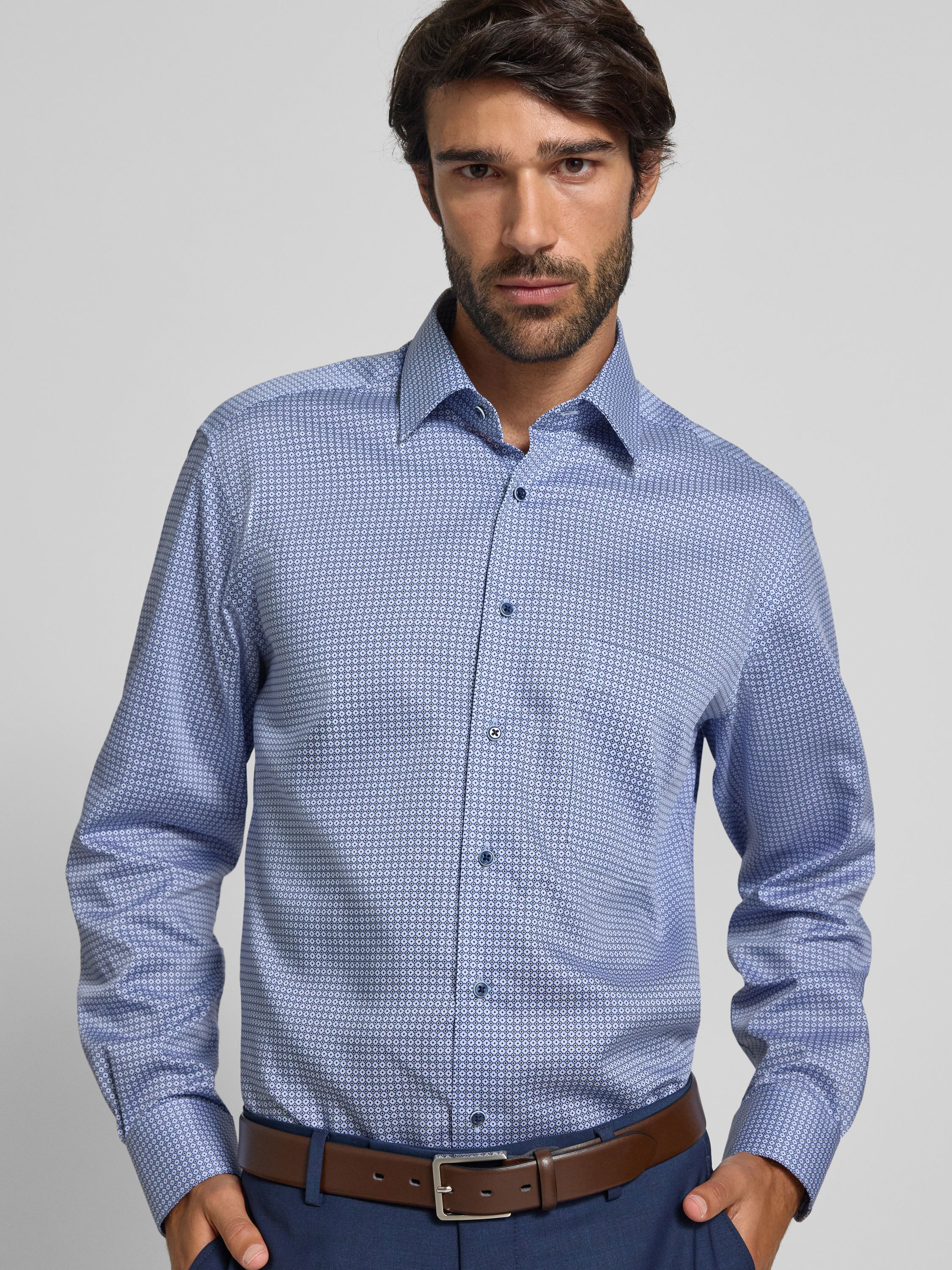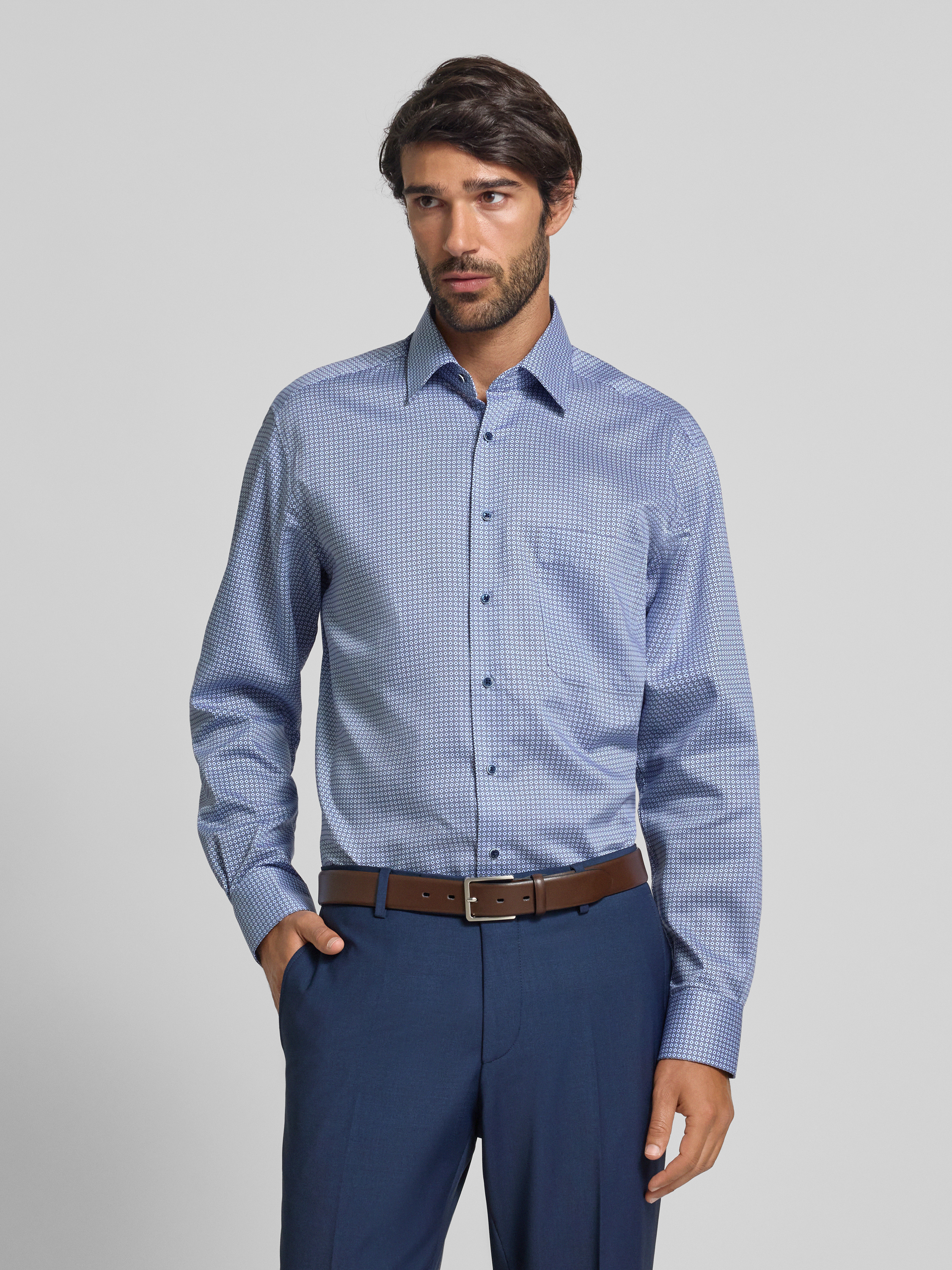 Das Herrenhemd Comfort Fit von ETERNA besteht aus reiner Baumwolle und liegt angenehm auf der Haut. Durch den lockeren Schnitt bleibt Bewegungsfreiheit erhalten, während der Kentkragen einen gepflegten Eindruck vermittelt. Mit Brusttasche und Sportmanschetten eignet es sich gut für den Büroalltag.