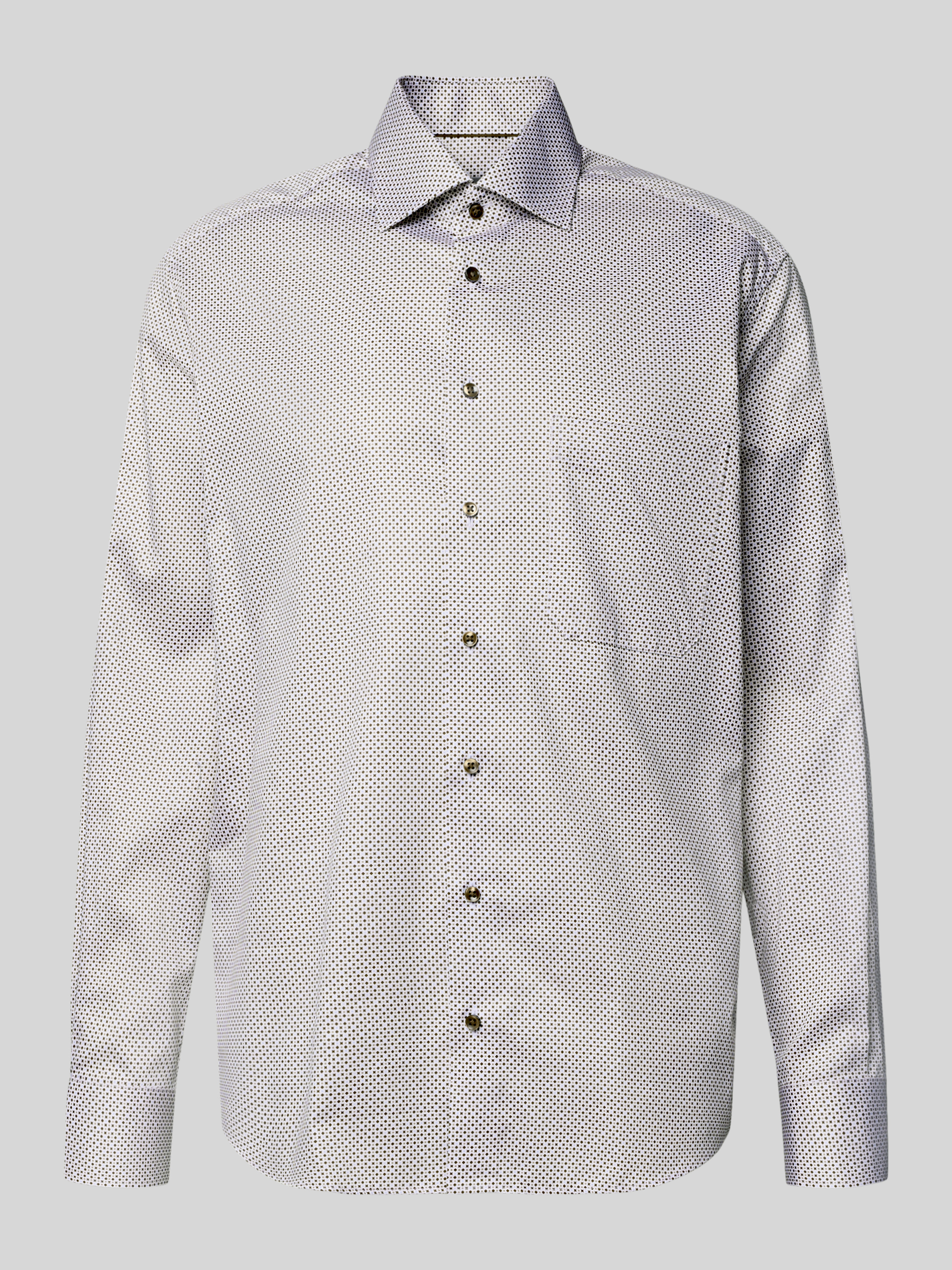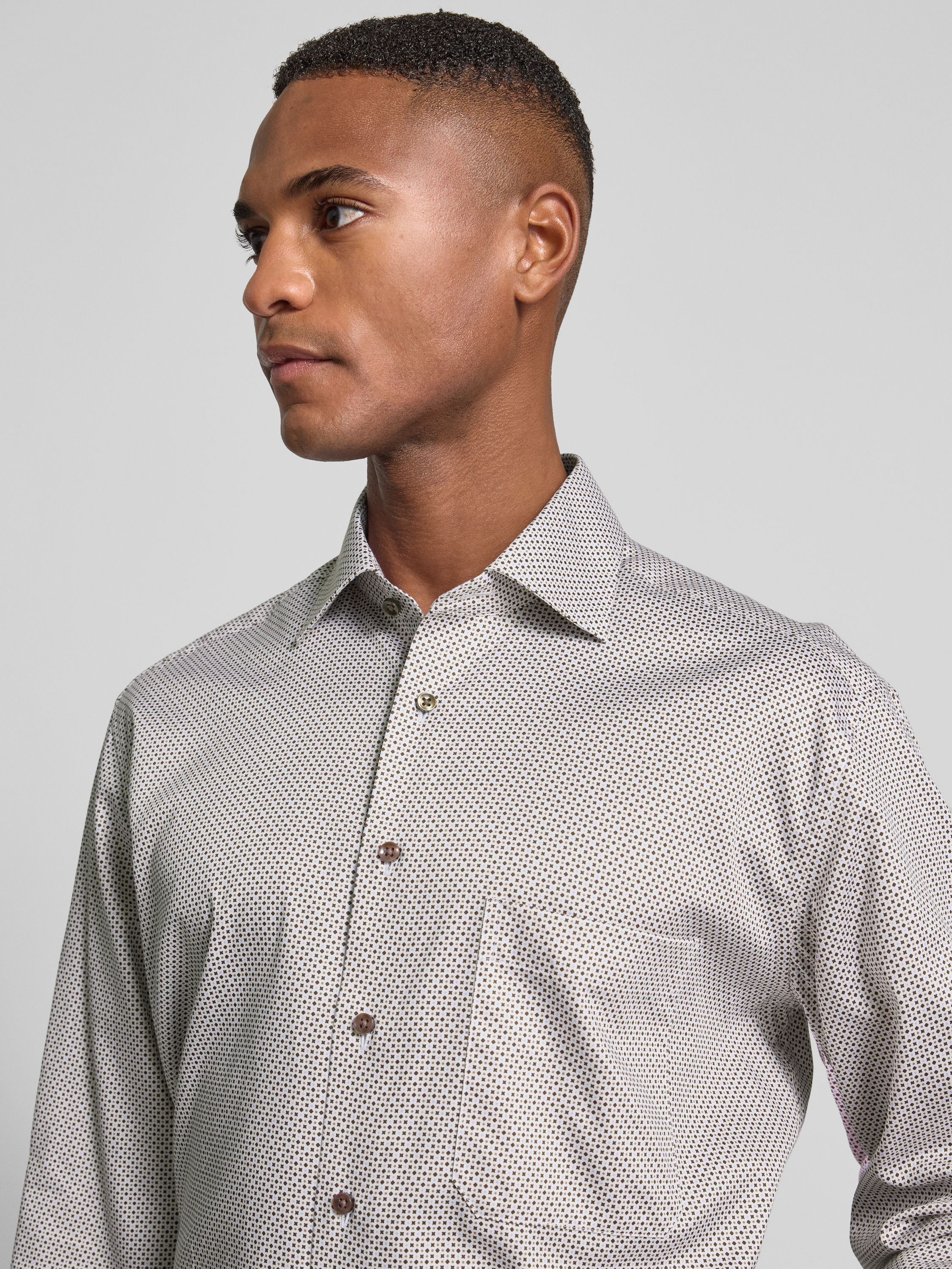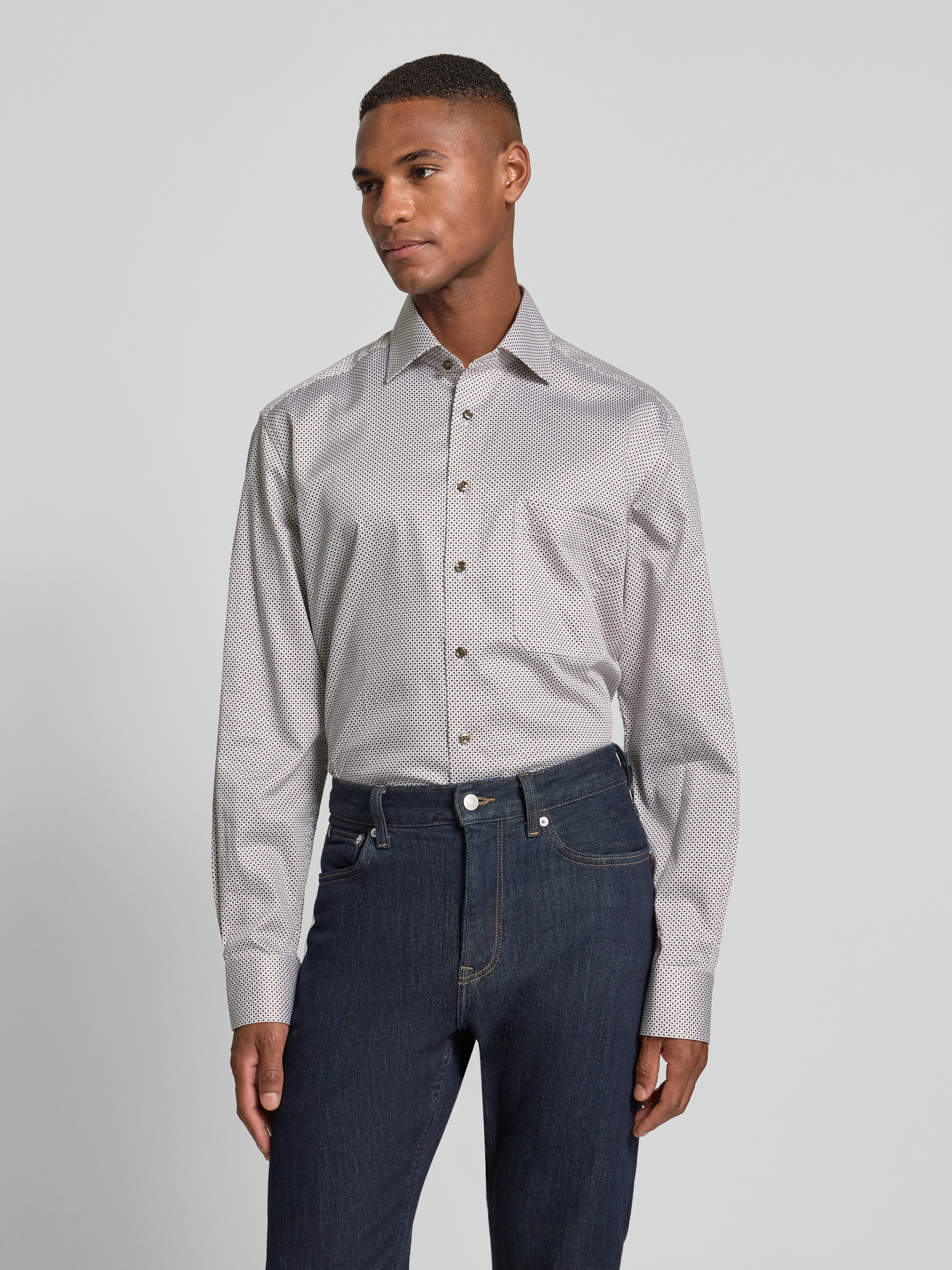 Das Herren Business-Hemd von ETERNA aus reiner Baumwolle legt Wert auf ein angenehmes Tragegefühl und lässt Bewegungsfreiheit zu. Der Comfort Fit und der klassische Kentkragen sorgen für einen gepflegten Hemd-Look im Büroalltag. Durch die praktische Brusttasche und die Sportmanschetten eignet sich das Modell auch für längere Arbeitstage.