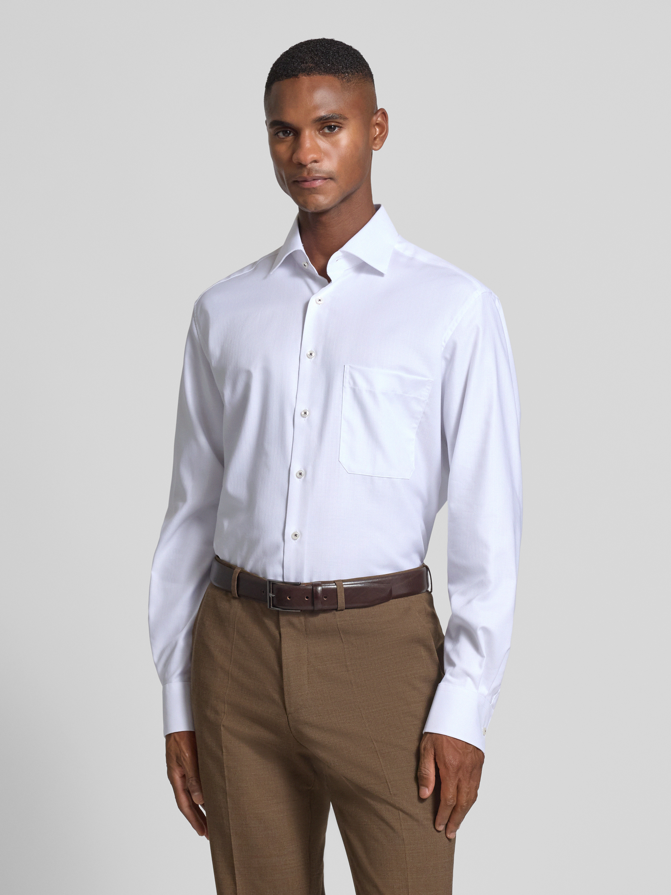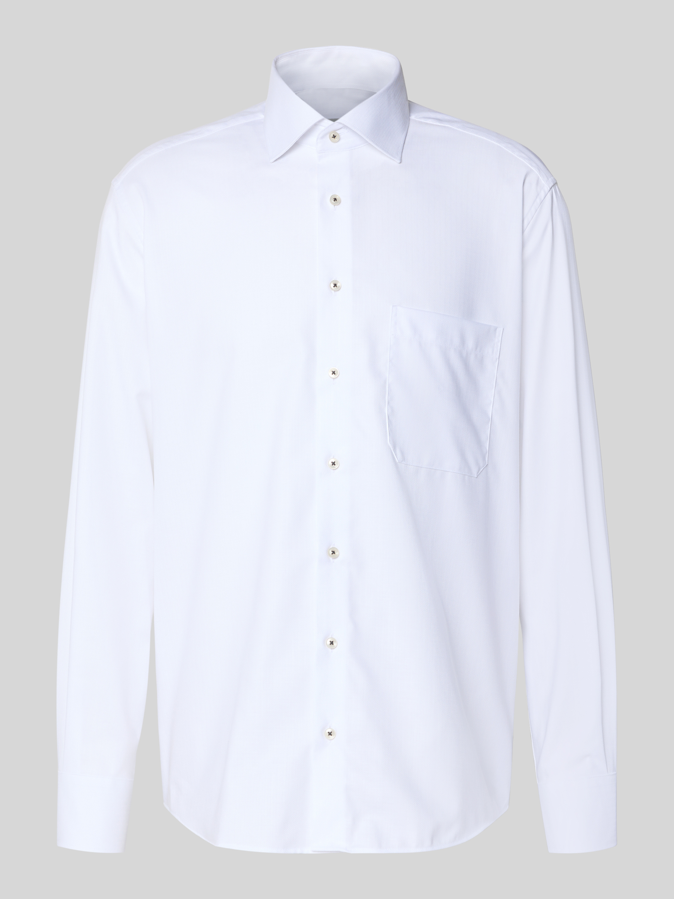 Das Herrenhemd Comfort Fit von ETERNA aus reiner Baumwolle liegt angenehm auf der Haut und sorgt für ein luftiges Tragegefühl, das sich im Alltag bewährt. Durch den lockeren Schnitt bleibt Bewegungsfreiheit erhalten, während der klassische Kentkragen gepflegte Akzente setzt. Die Brusttasche ergänzt das Hemd um ein praktisches Detail.