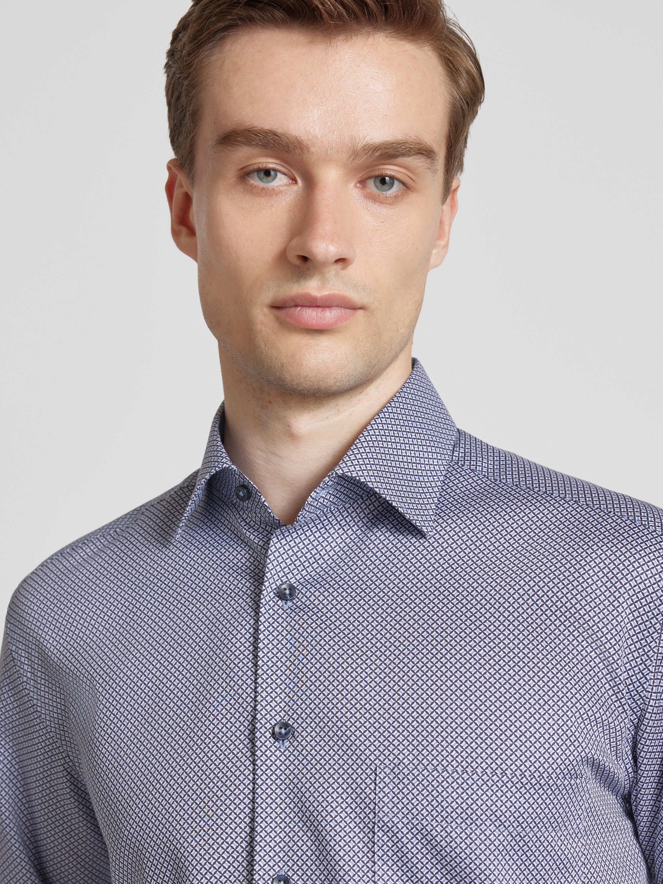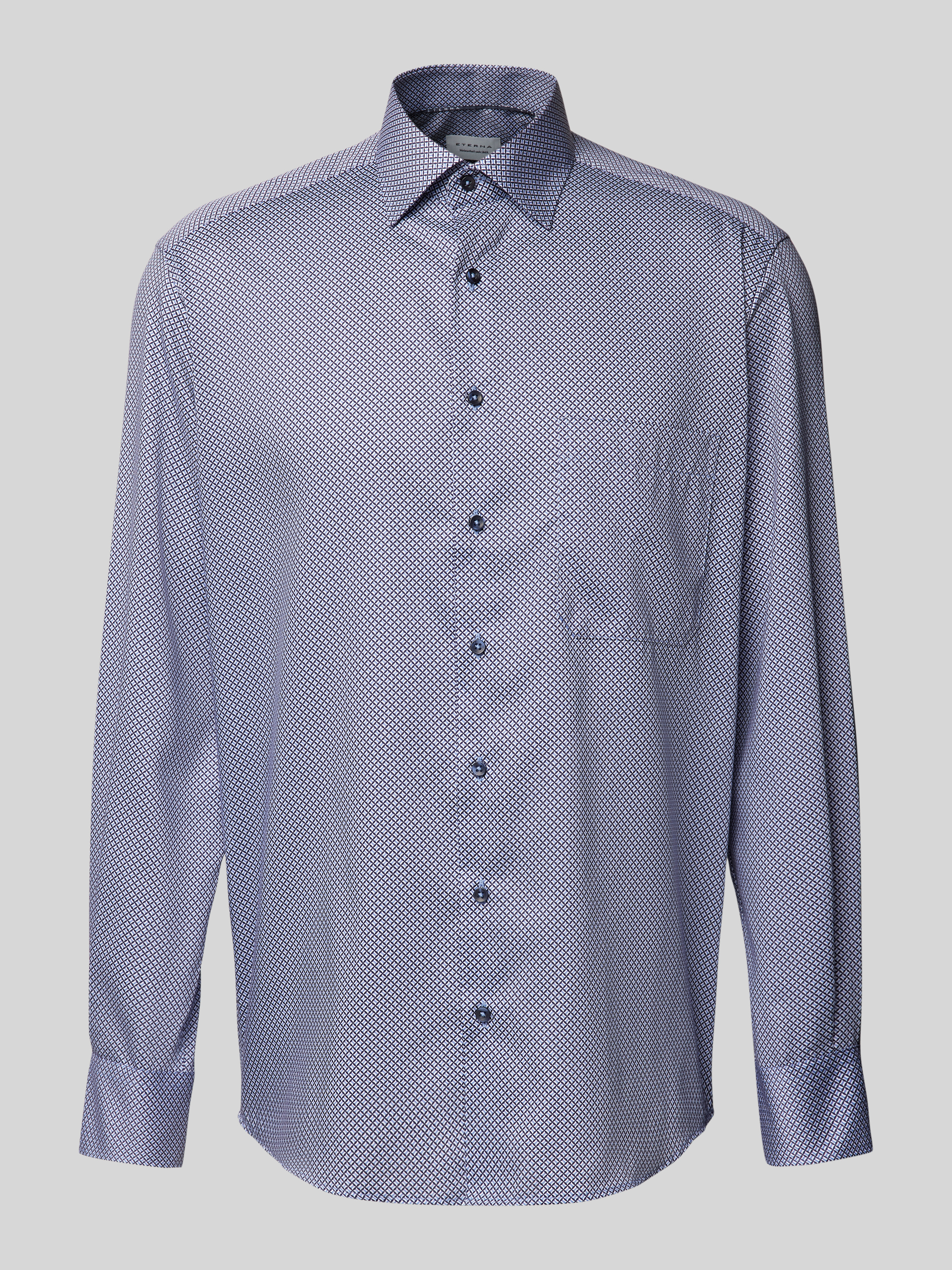 Das ETERNA Business-Hemd vereint durch seine reine Baumwolle und den Comfort Fit angenehmen Tragekomfort mit klassischem Stil. Der Kentkragen sorgt für ein gepflegtes Erscheinungsbild, während die praktische Brusttasche zusätzlichen Stauraum bietet. Ein ideales Kleidungsstück für formelle Anlässe und Büroalltag.