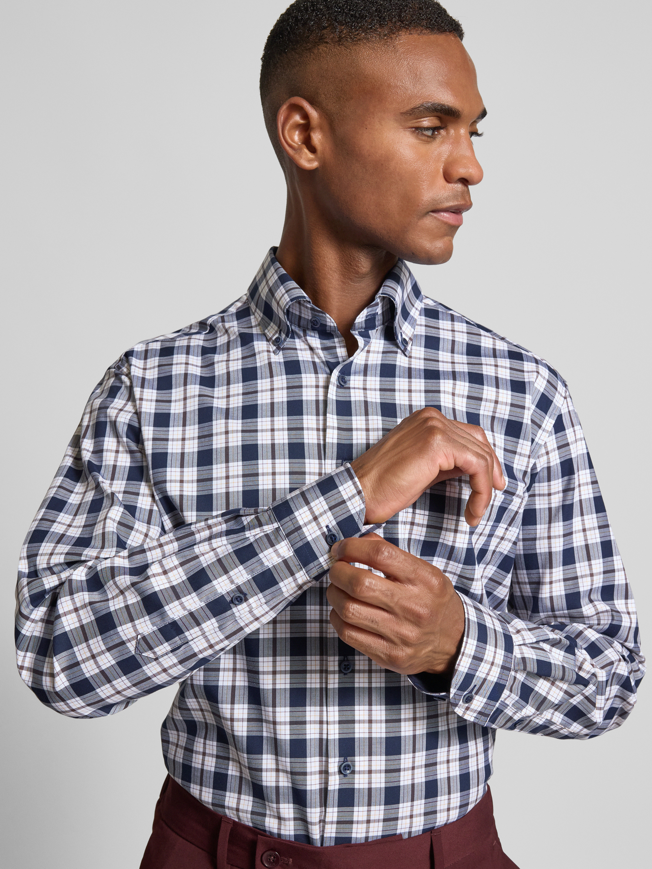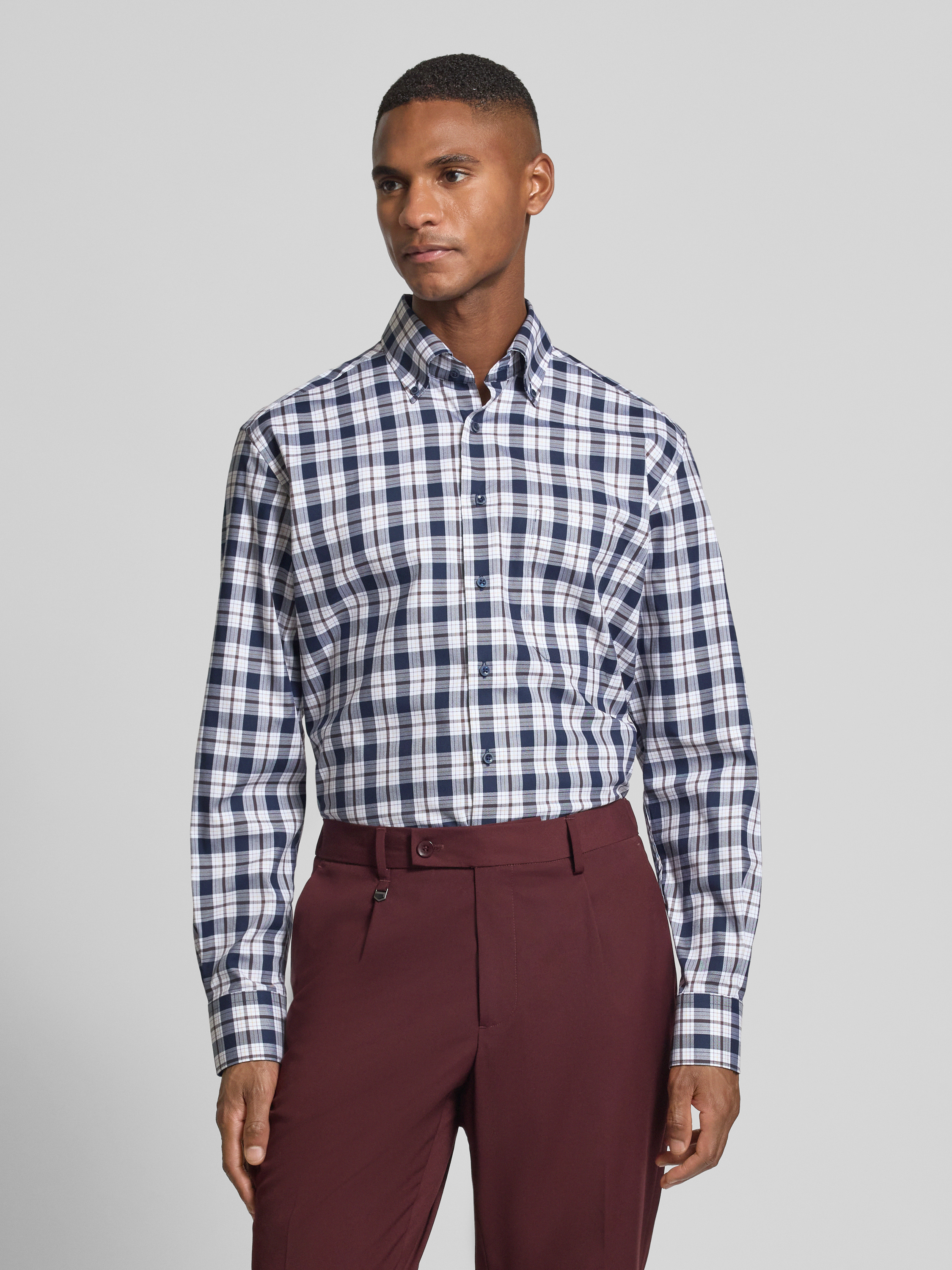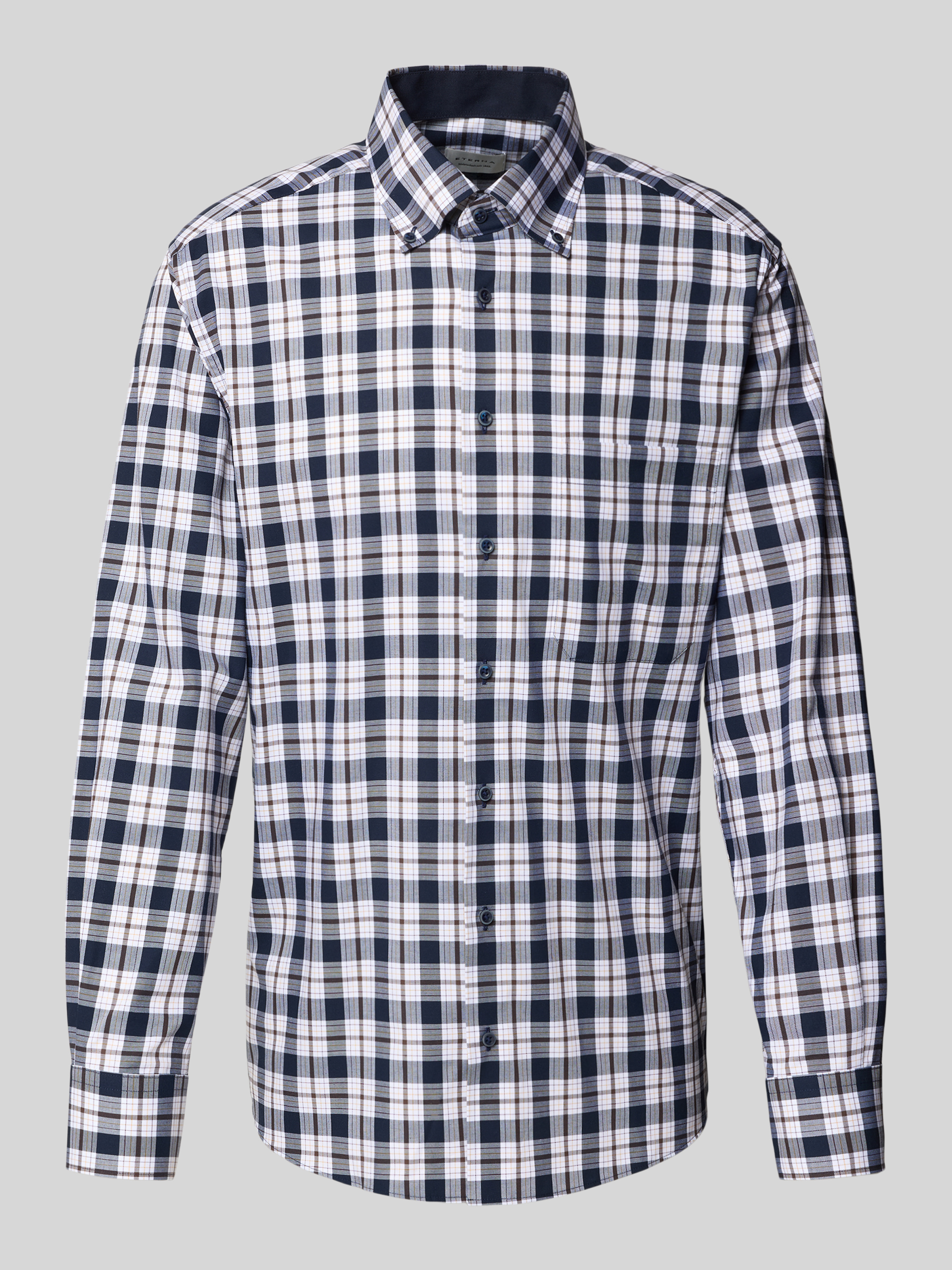 Das Herrenhemd Comfort Fit von ETERNA aus reiner Baumwolle liegt angenehm auf der Haut und sorgt dank weiter Schnittführung für Bewegungsfreiheit. Ein klassischer Button-Down-Kragen und die dezente Brusttasche unterstreichen den zeitlosen Charakter. Für den Büroalltag eignet sich das Modell ebenso wie für formelle Anlässe.