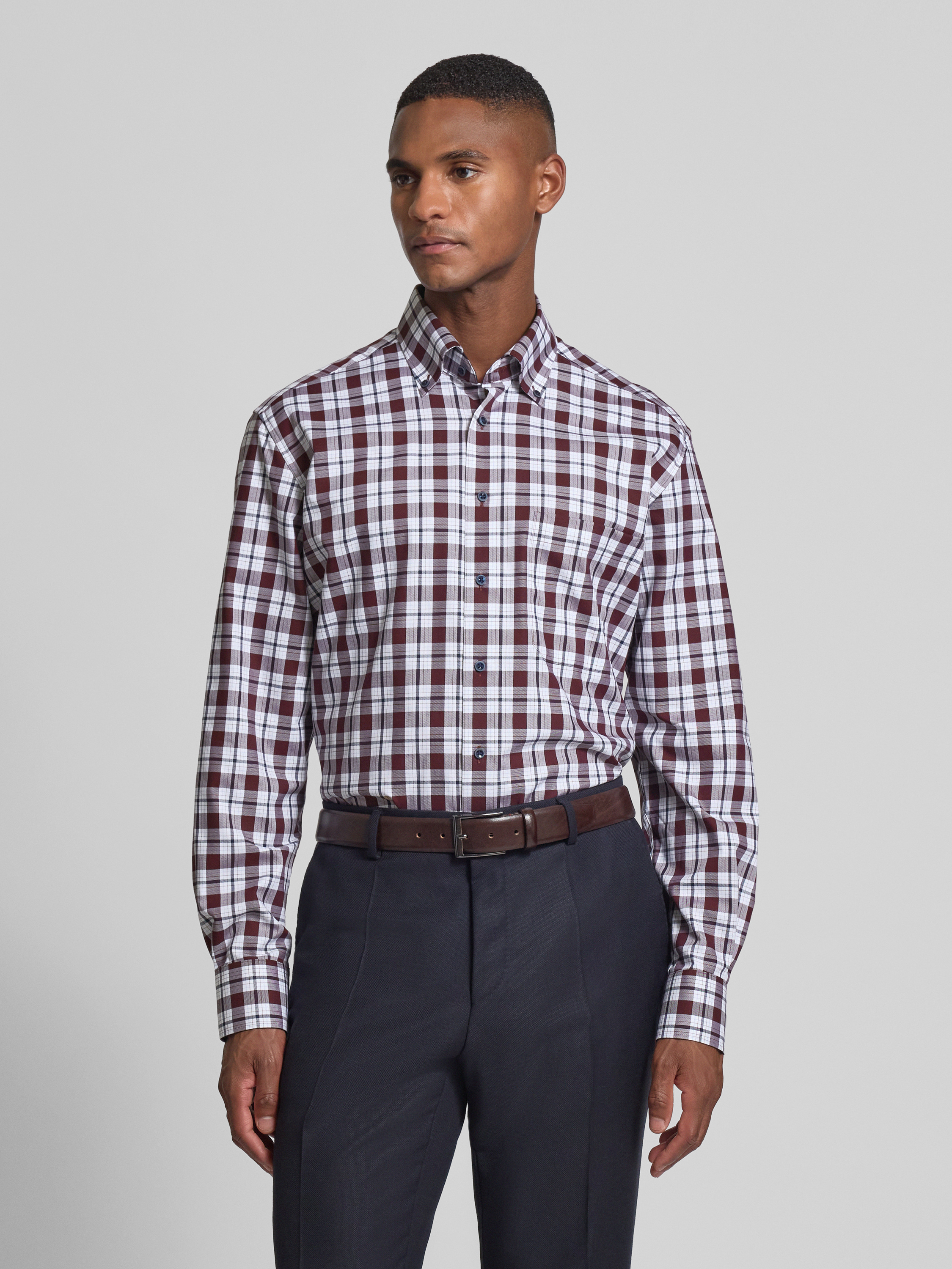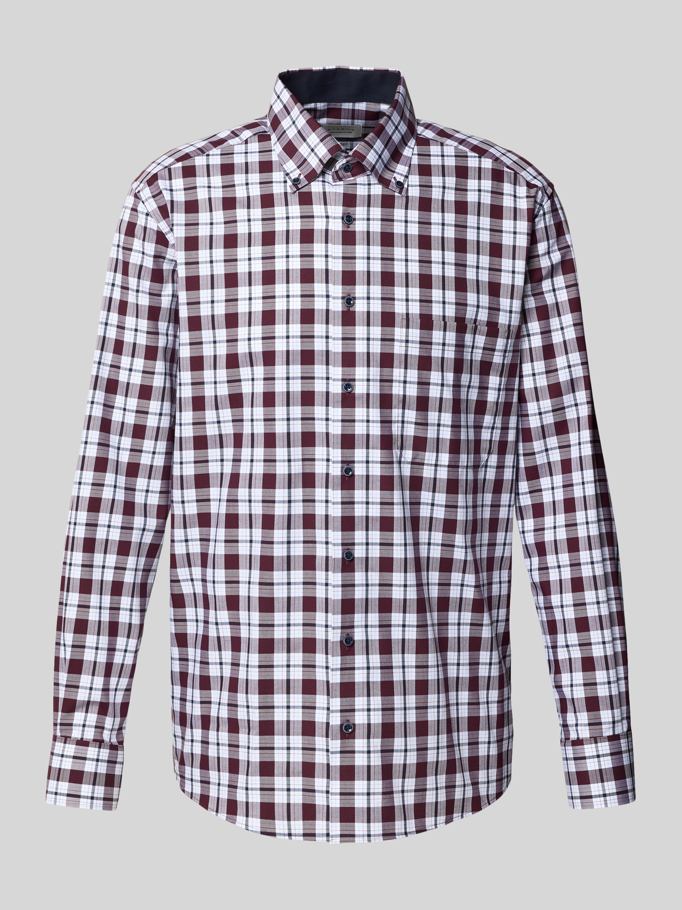 Das Herrenhemd Comfort Fit von ETERNA aus reiner Baumwolle liegt angenehm auf der Haut und sorgt dank weiter Schnittführung für Bewegungsfreiheit. Ein klassischer Button-Down-Kragen und die dezente Brusttasche unterstreichen den zeitlosen Charakter. Für den Büroalltag eignet sich das Modell ebenso wie für formelle Anlässe.