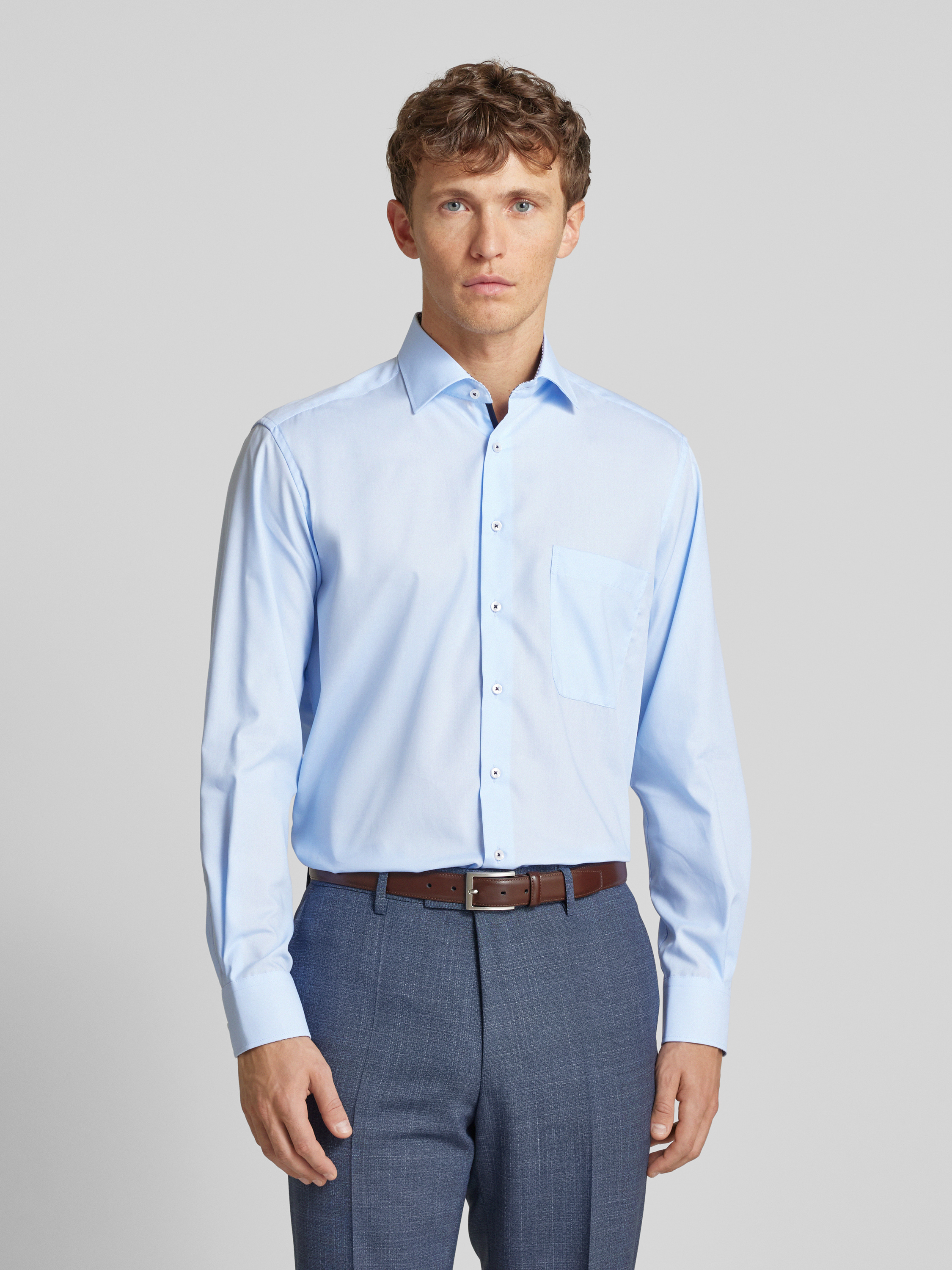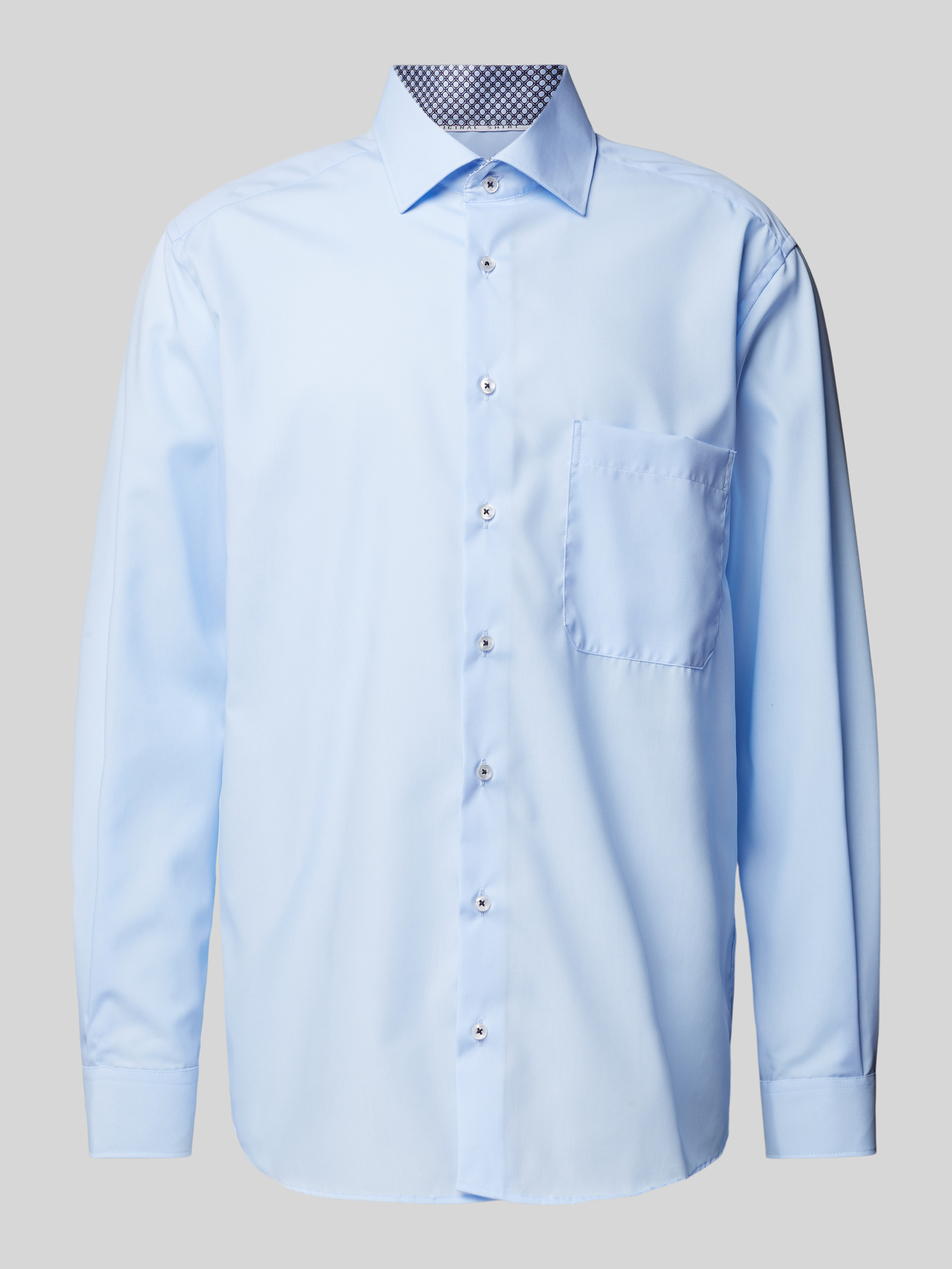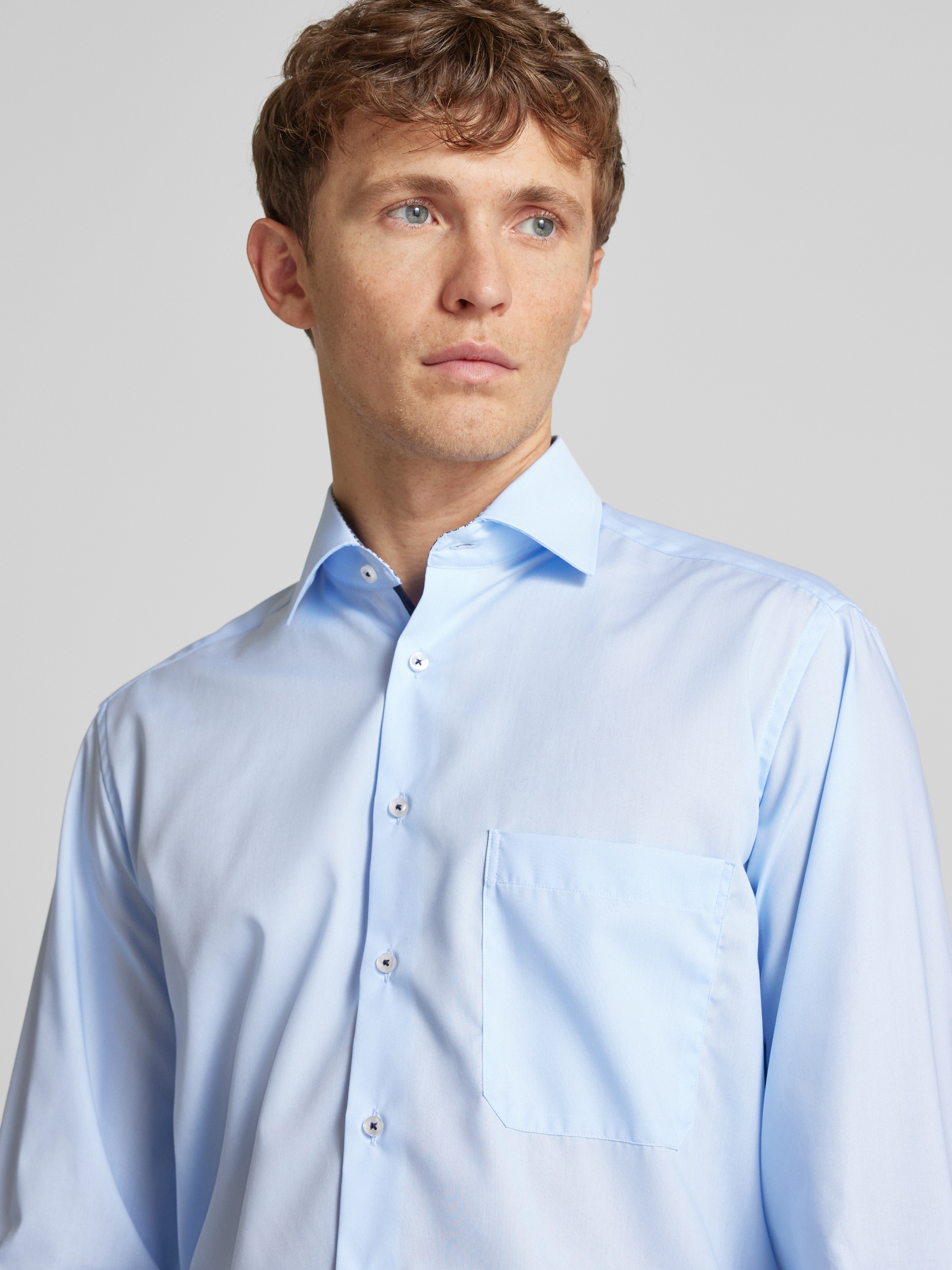 Das Herrenhemd Comfort Fit Businesshemd aus Popeline von ETERNA zeichnet sich durch seine komfortable Passform und den klassischen Kentkragen aus. Reine Baumwolle sorgt für ein angenehmes Tragegefühl im Alltag, während die bügelfreie Verarbeitung den Pflegeaufwand spürbar reduziert. Dezente Details wie der Ausputz und die Brusttasche runden das Erscheinungsbild ab.