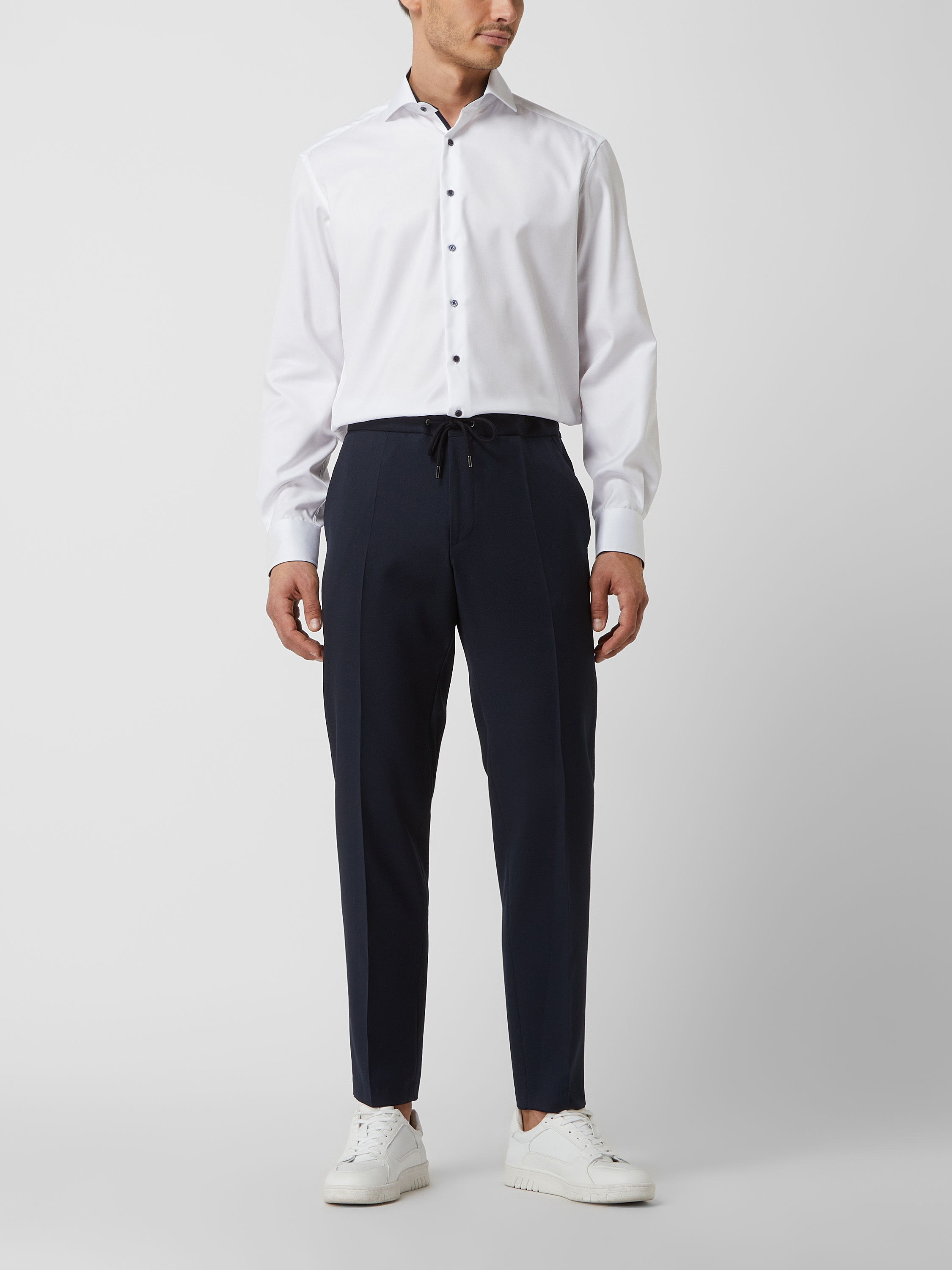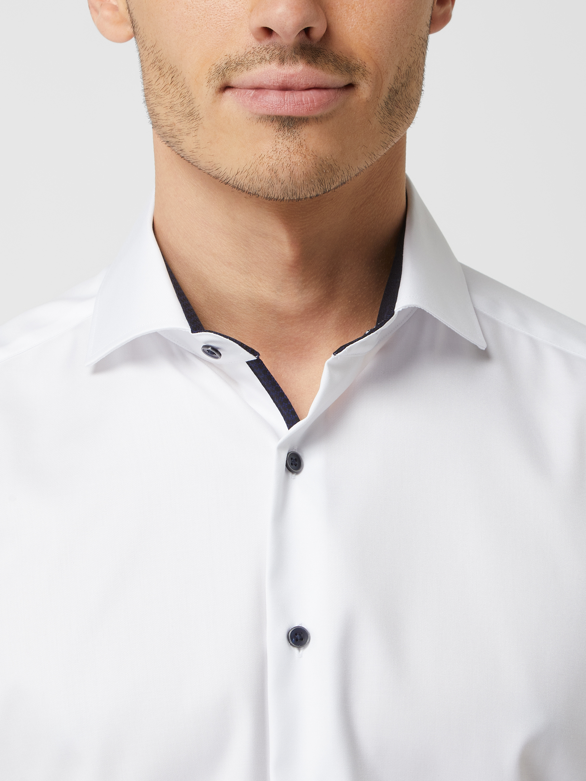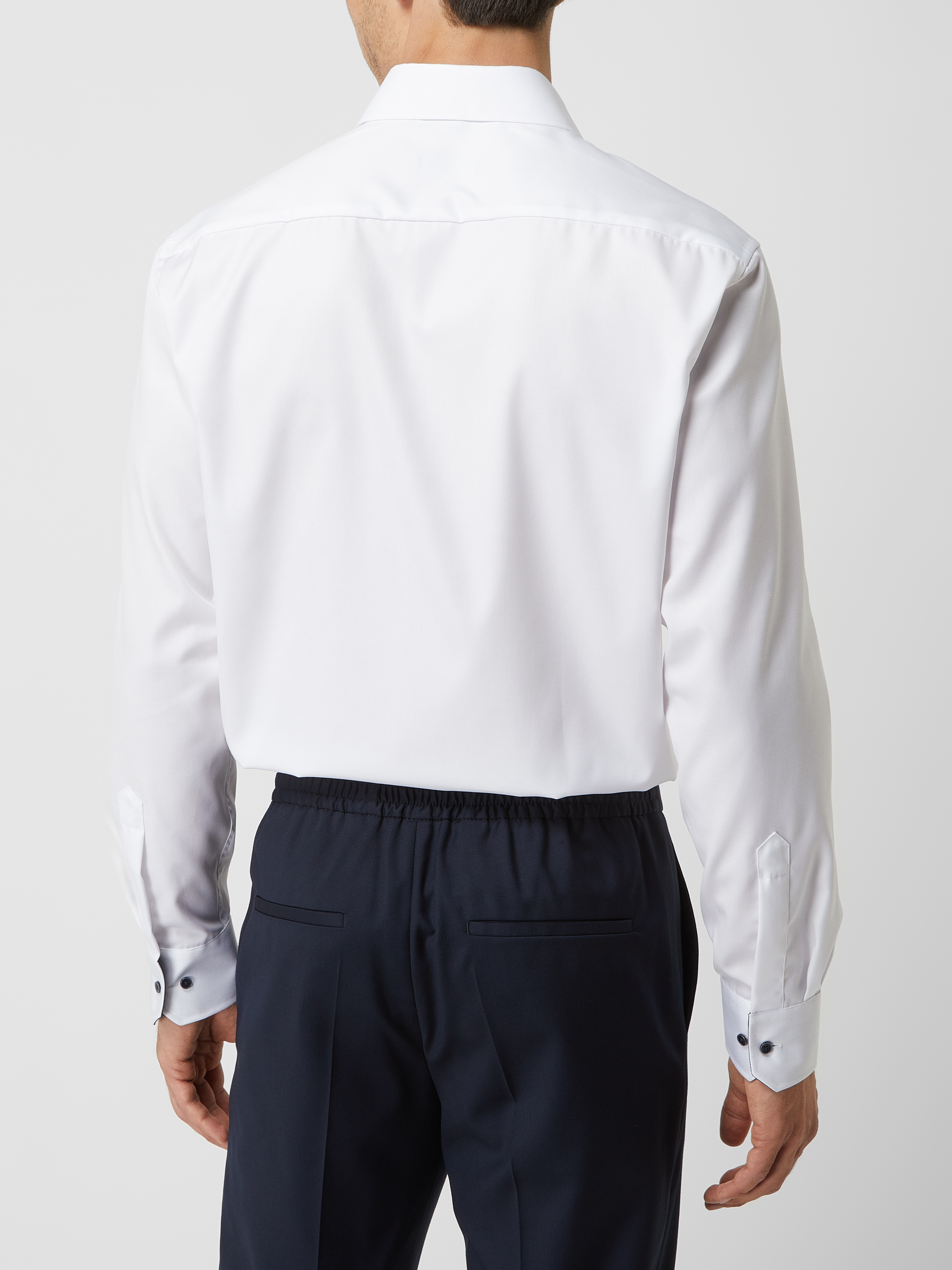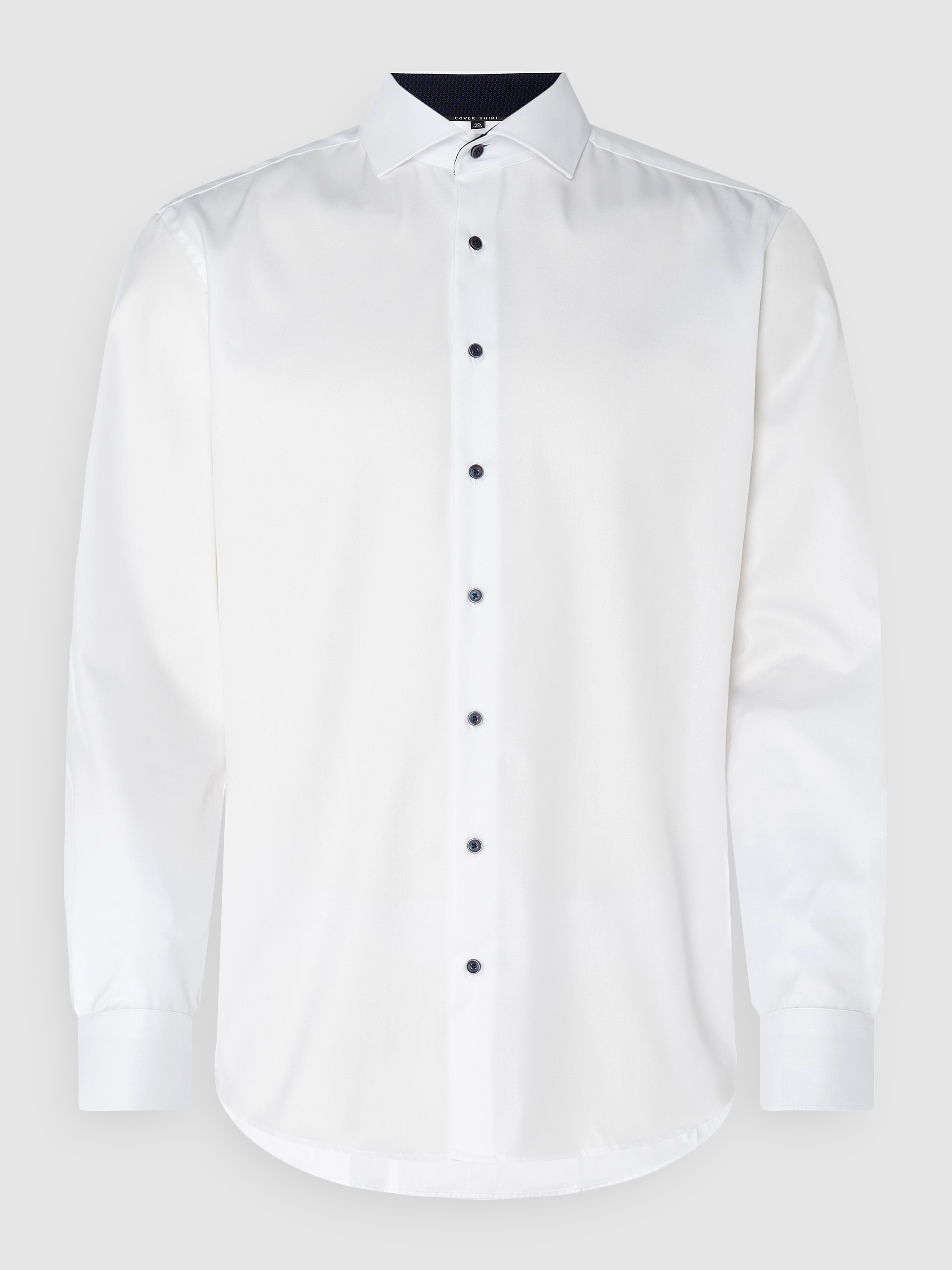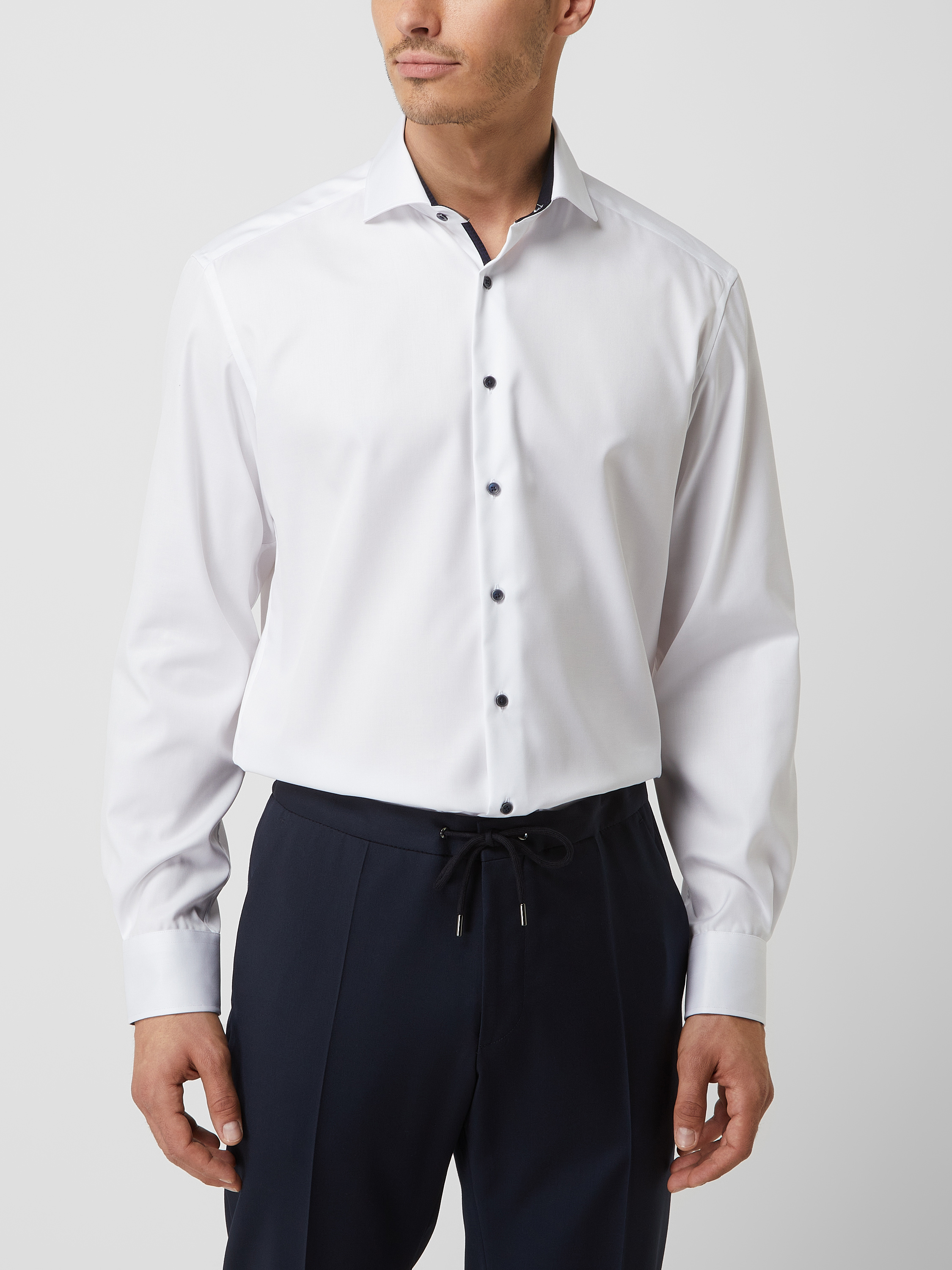 Das Herrenhemd Comfort Fit Businesshemd aus Twill von ETERNA präsentiert sich in reiner Baumwolle mit angenehmem Schnitt und feiner Webstruktur. Durch den Haifischkragen sowie lange Ärmel entsteht ein klassischer Look, während die bügelfreie Eigenschaft den Alltag spürbar erleichtert. Der Kontrastausputz rundet das Gesamtbild dezent ab.