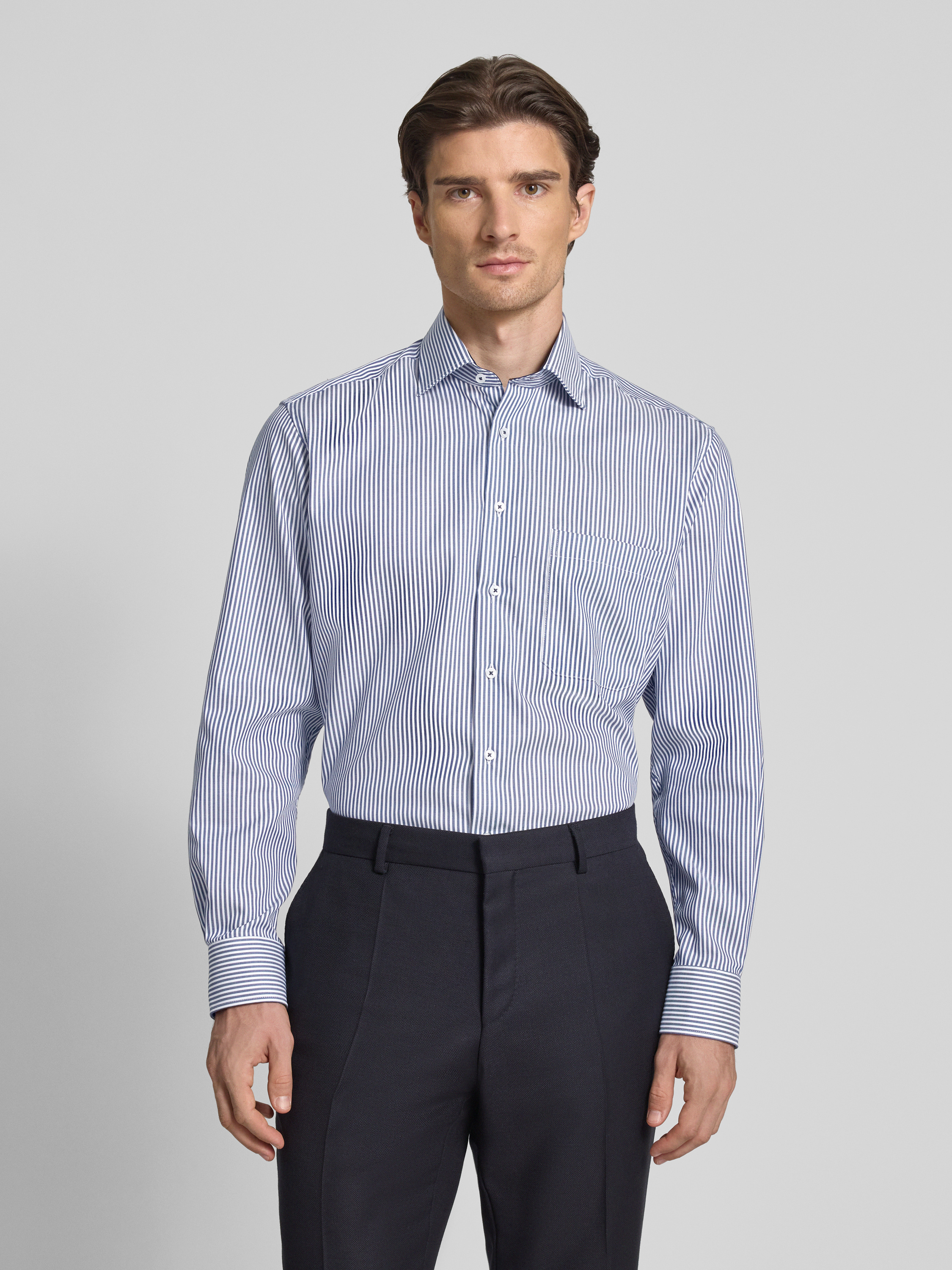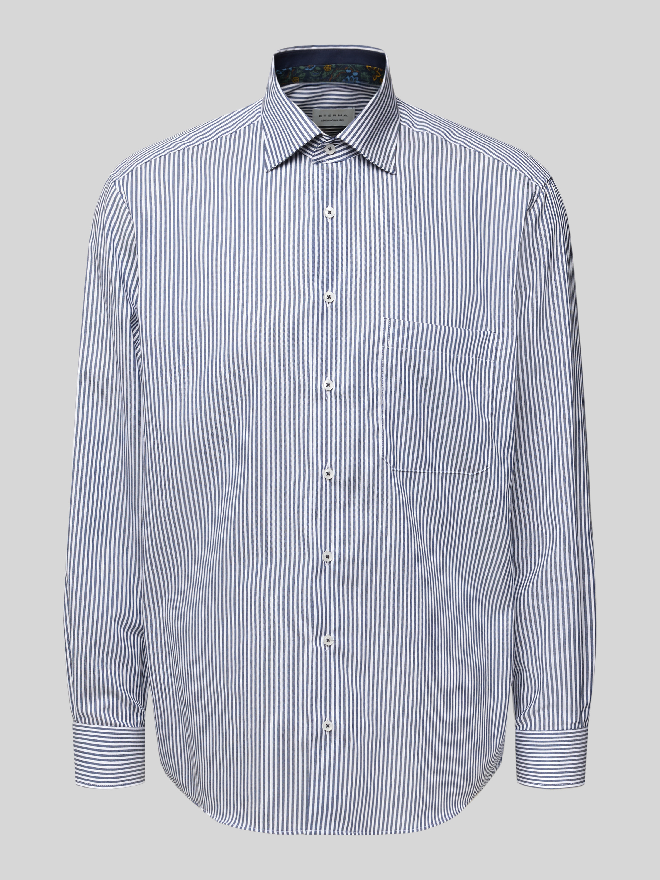 Das Herren Businesshemd von ETERNA aus reiner Baumwolle zeichnet sich durch einen angenehm weiten Comfort Fit aus, der Bewegungsfreiheit im Alltag ermöglicht. Der klassische Kentkragen und die praktische Knopfleiste sorgen für einen gepflegten Look, während die Brusttasche kleine Dinge griffbereit hält. Durch den lockeren Schnitt eignet sich das Hemd für vielfältige Situationen und bietet angenehmen Tragekomfort.