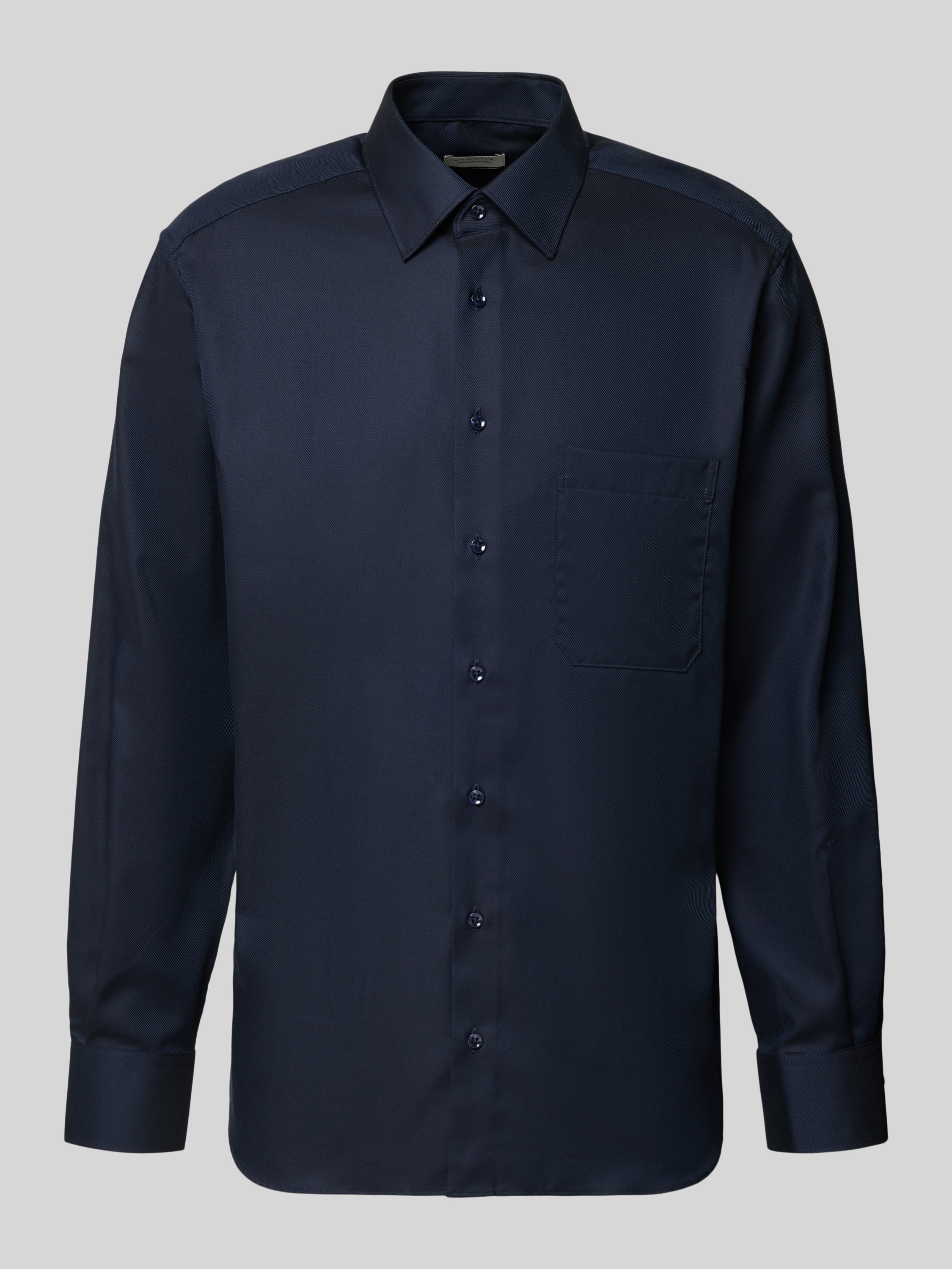 Das Herren Businesshemd Comfort Fit von ETERNA aus reiner Baumwolle trägt sich angenehm und unterstützt durch seinen bequemen Schnitt einen entspannten Büroalltag. Der klassische Kentkragen und die dezente Knopfleiste sorgen für einen gepflegten Eindruck. Praktisch zeigt sich die Brusttasche für kleine Utensilien.